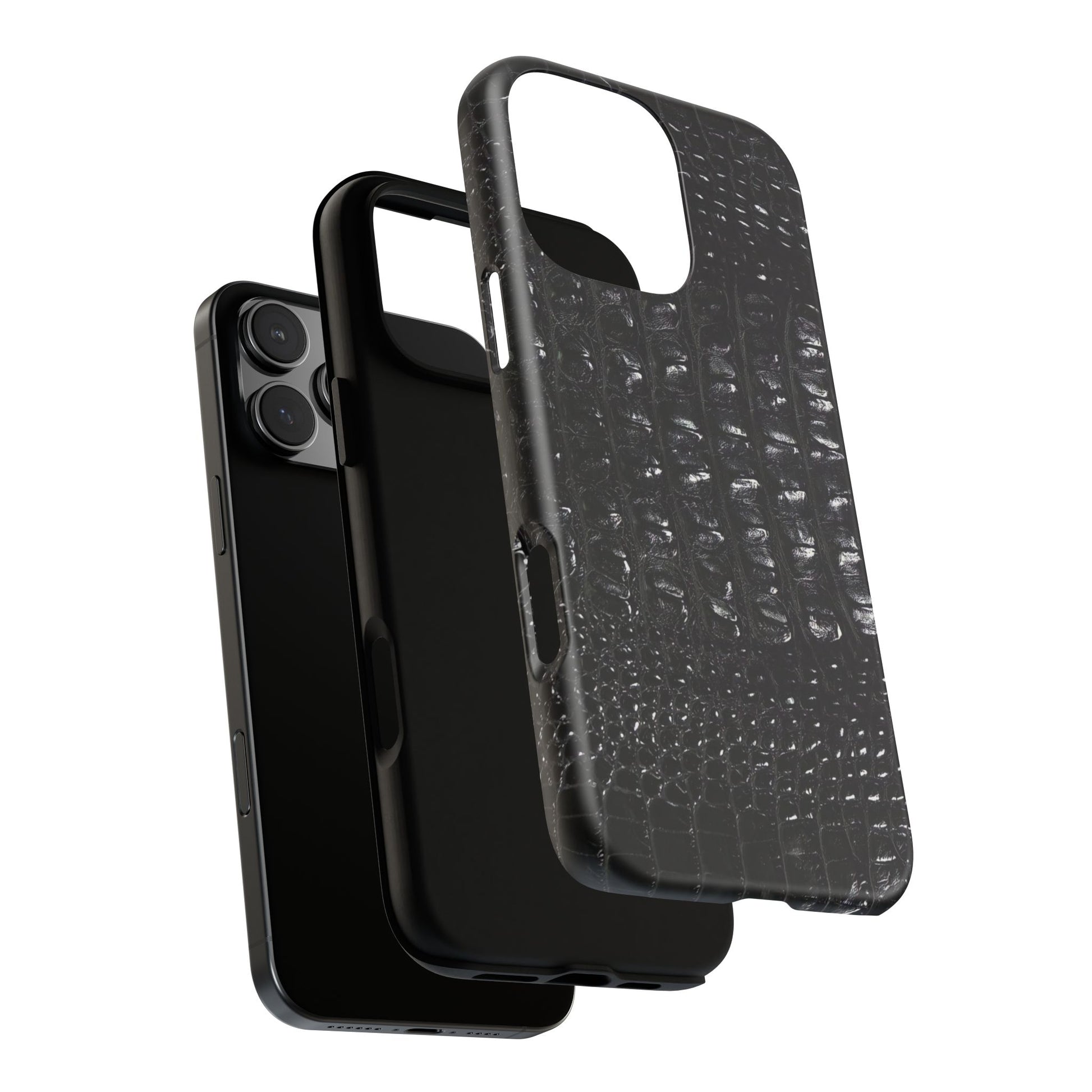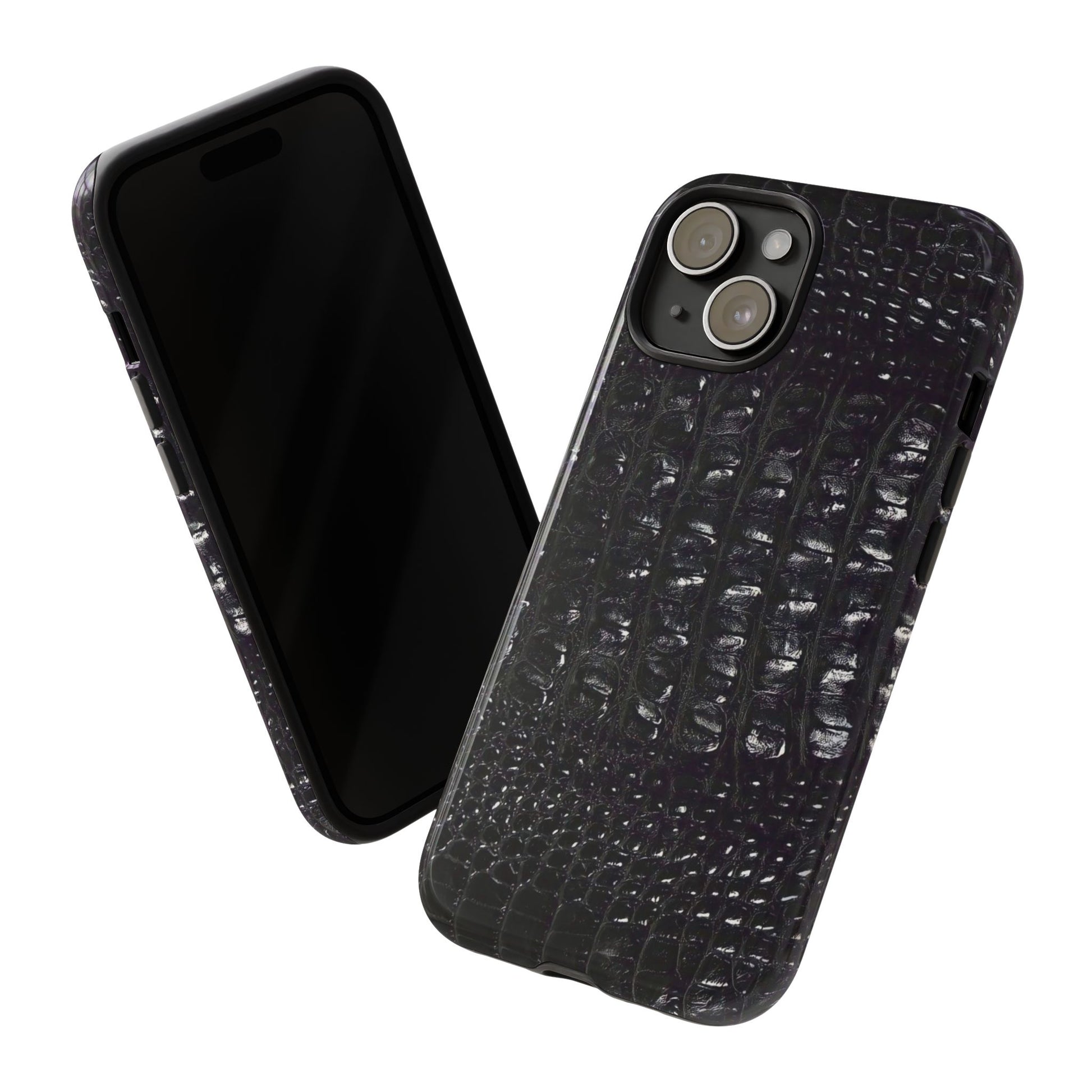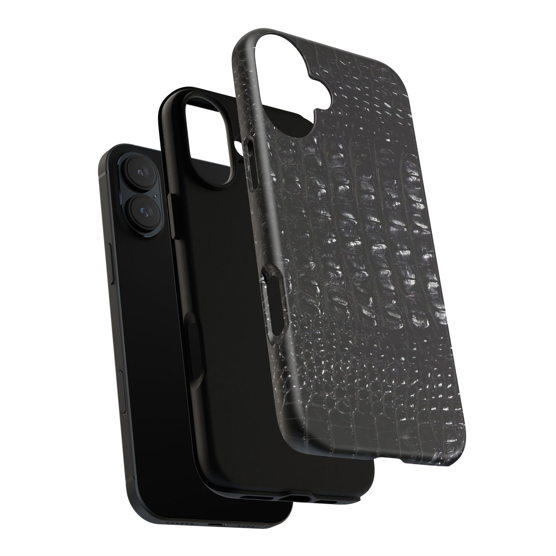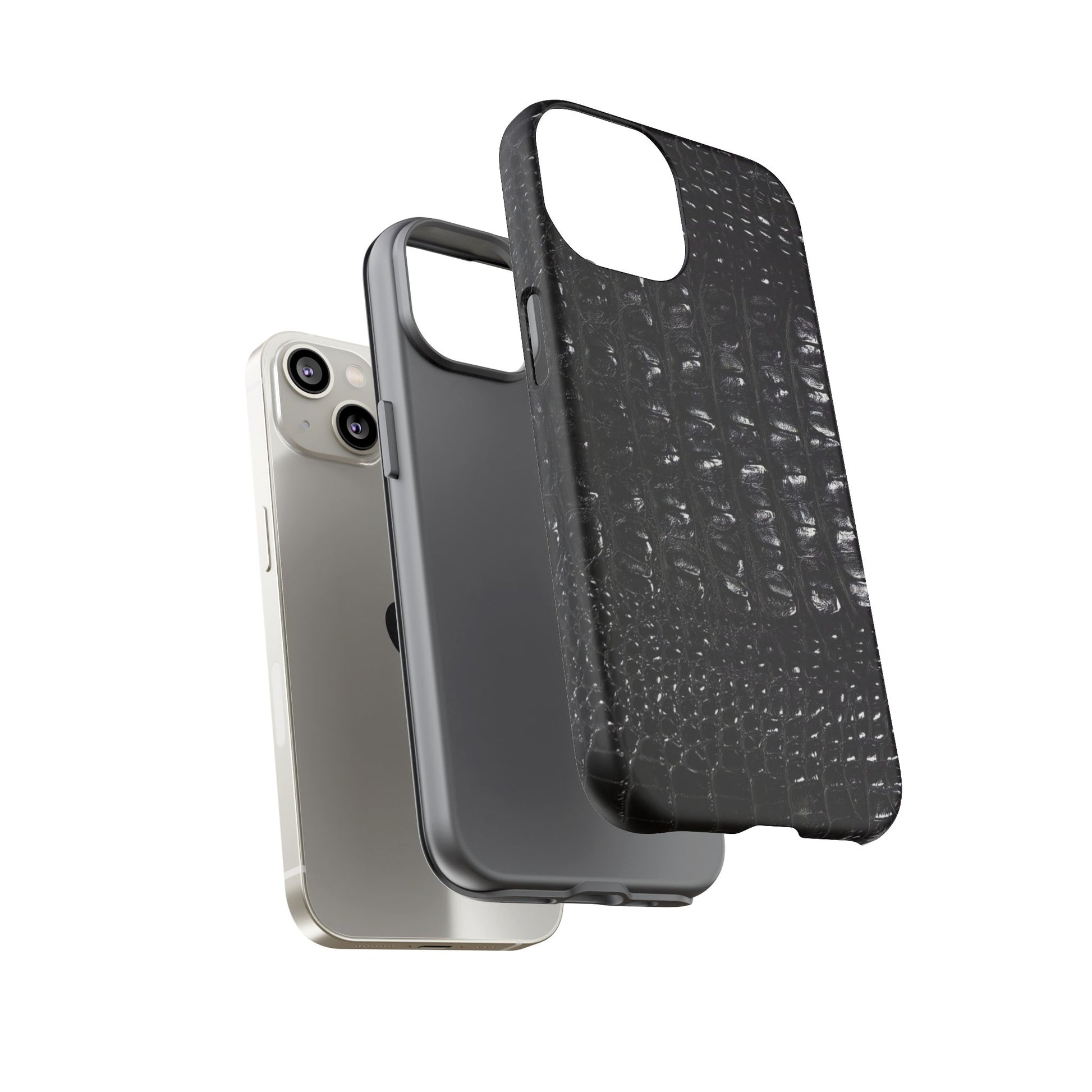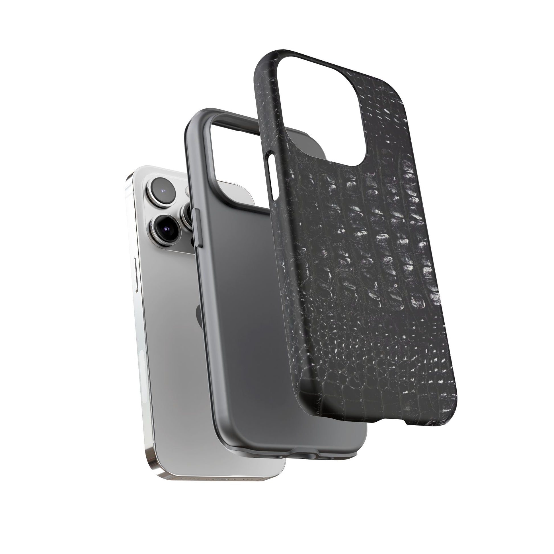 Black Croc Texture Tough Phone Case — Rugged Protective iPhone Cover