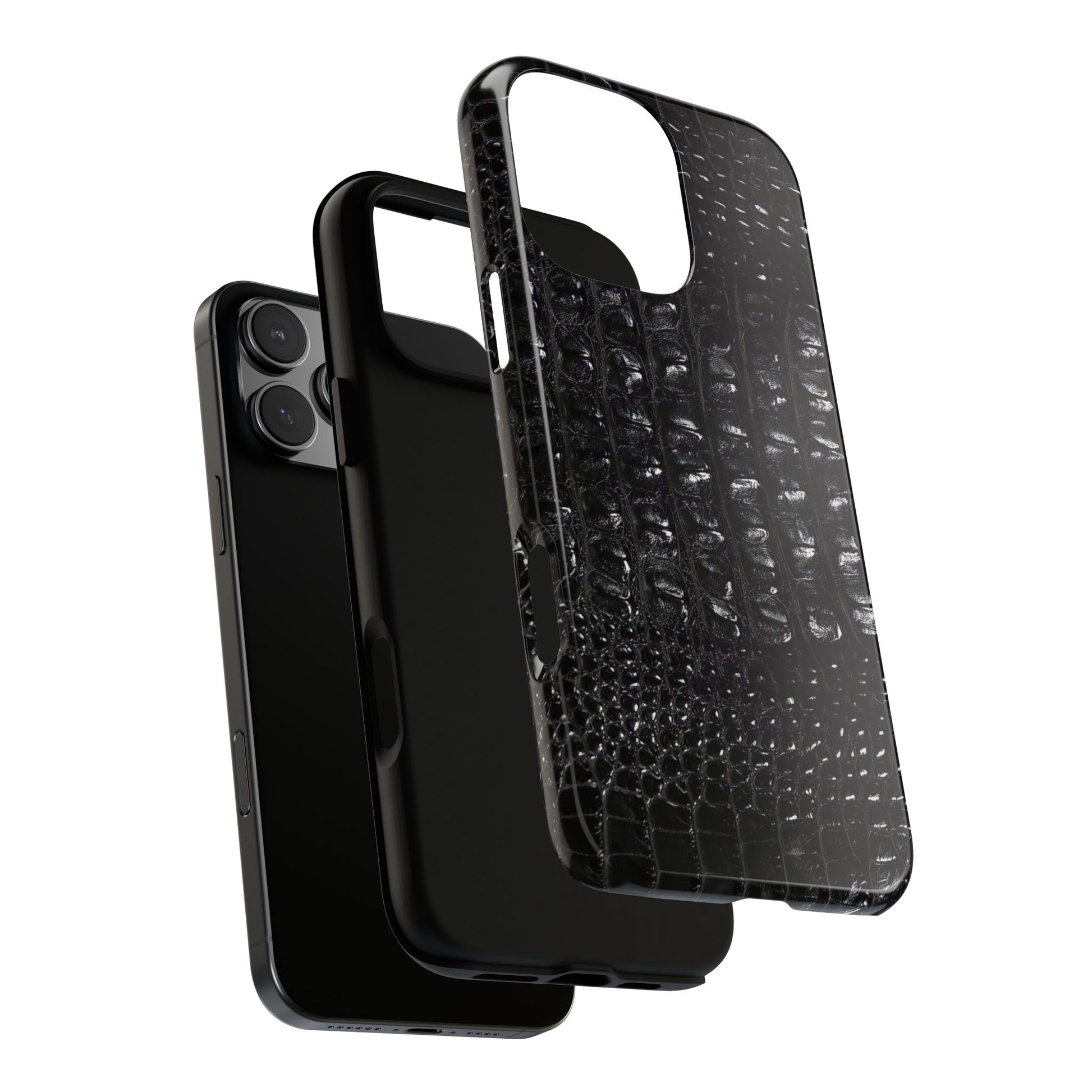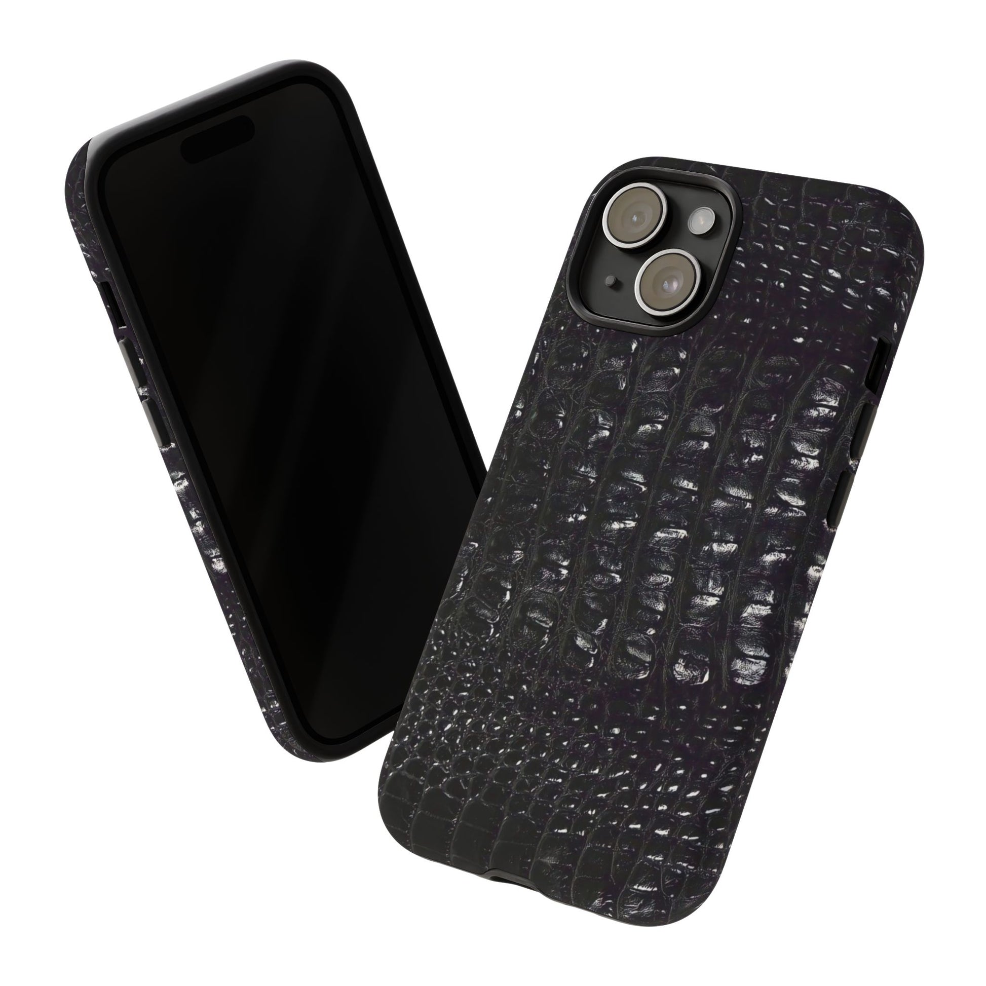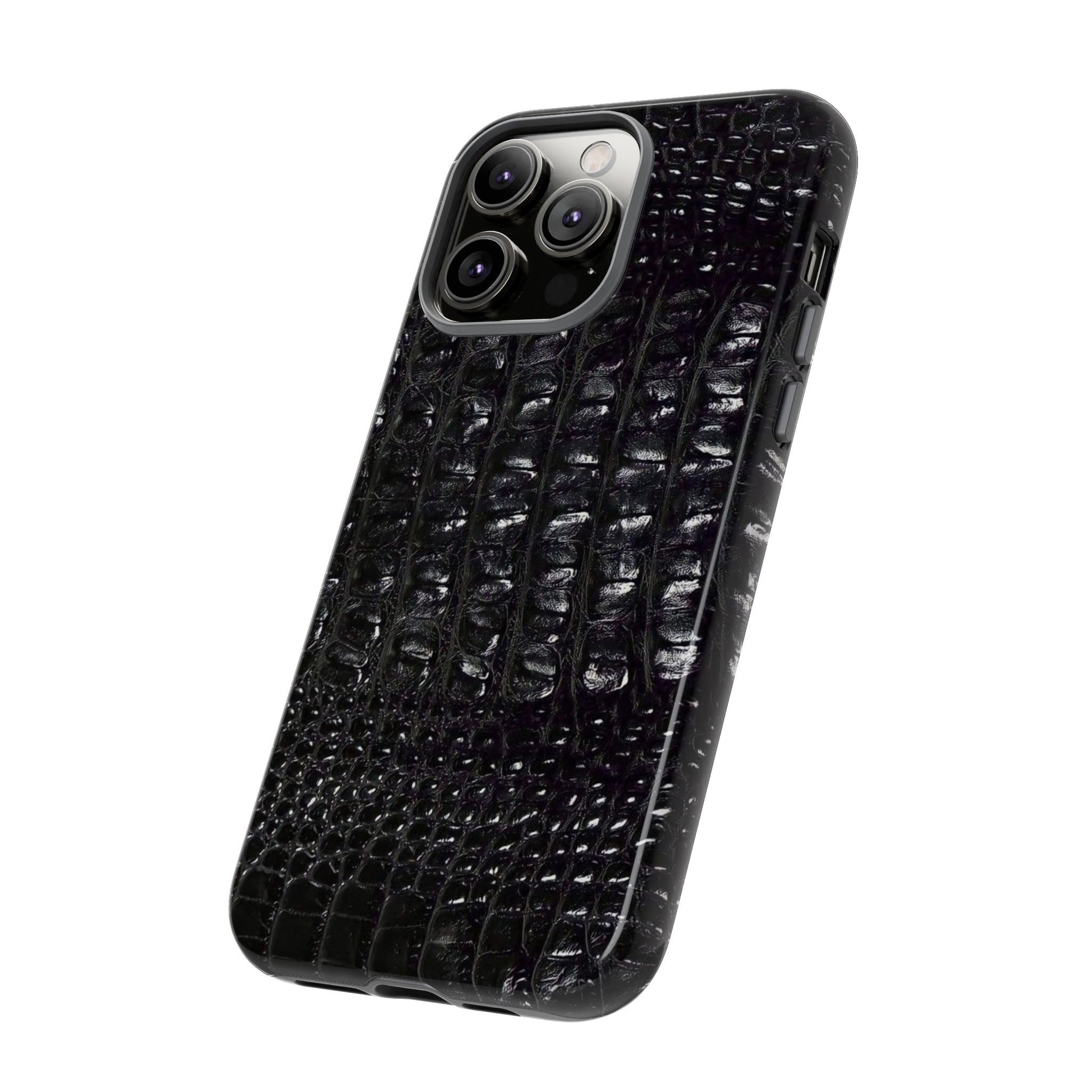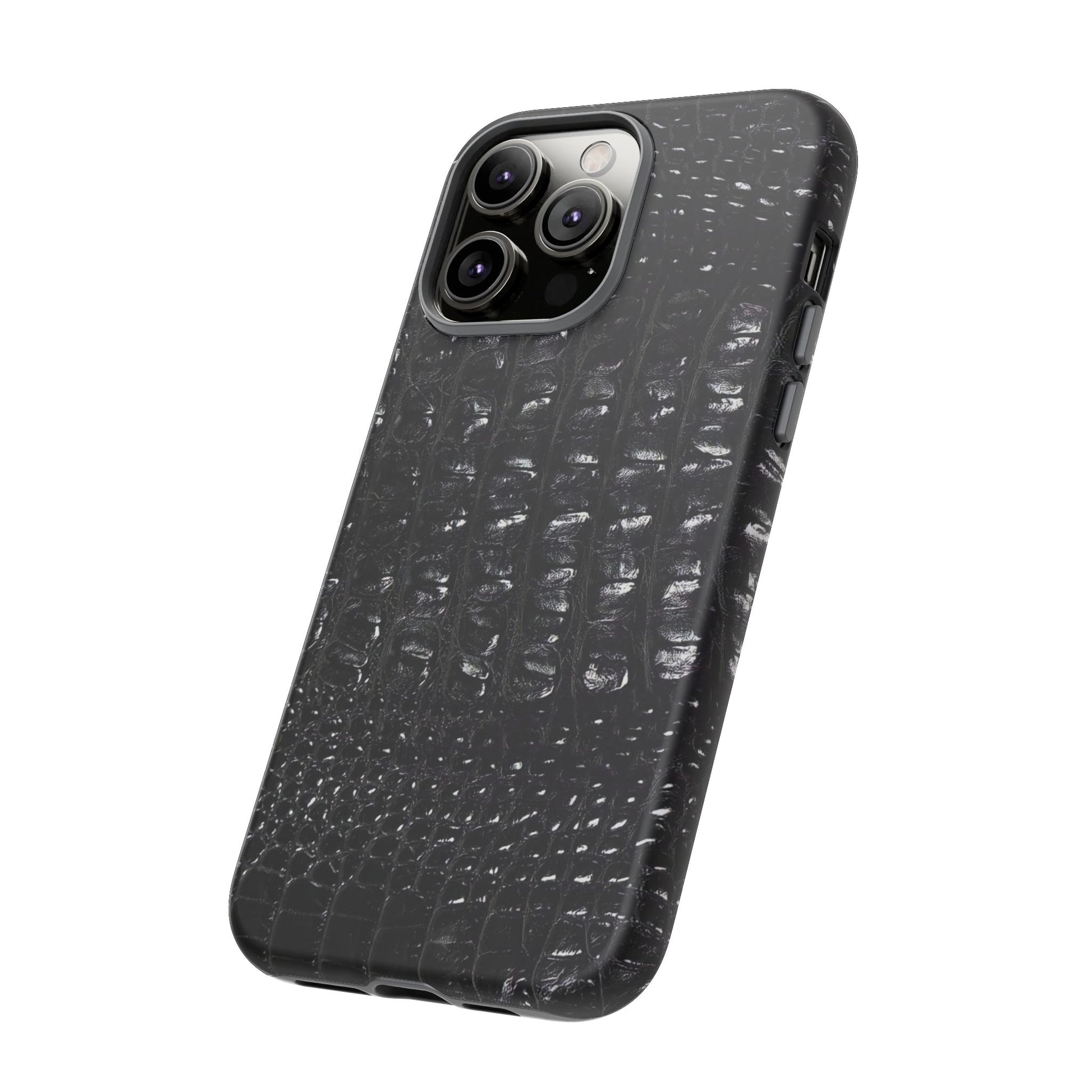 Black Croc Texture Tough Phone Case — Rugged Protective iPhone Cover