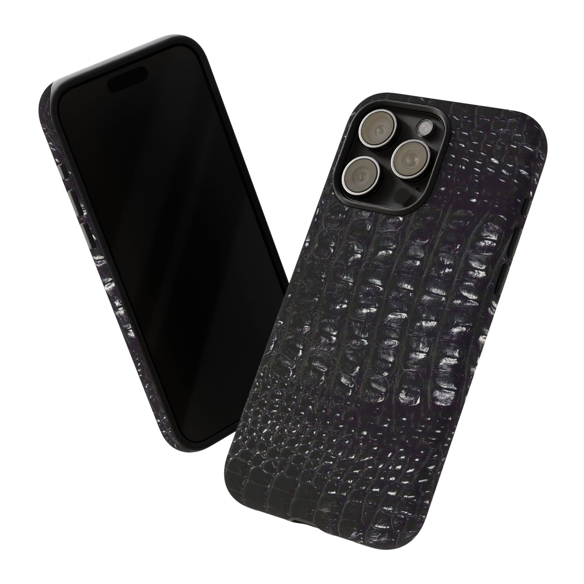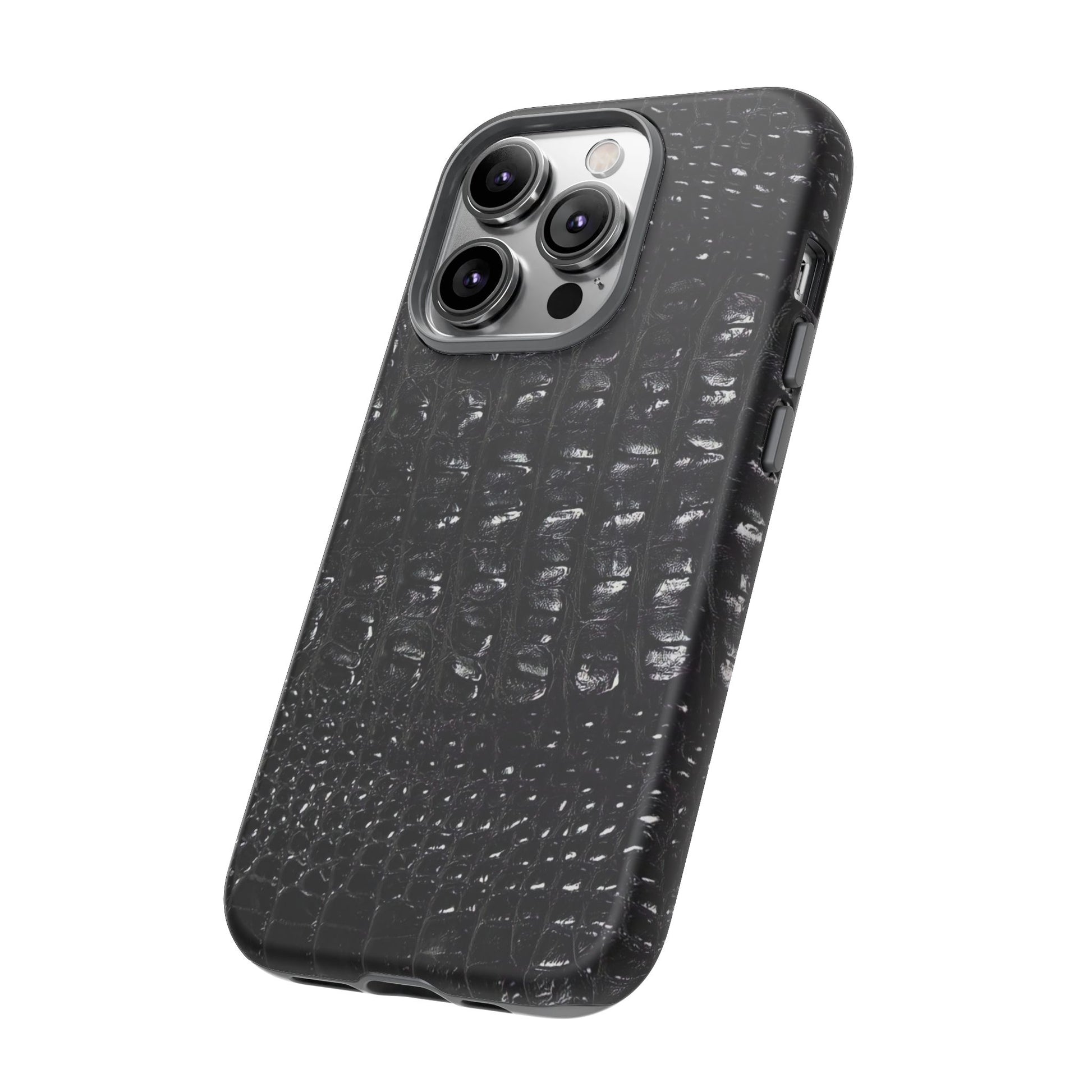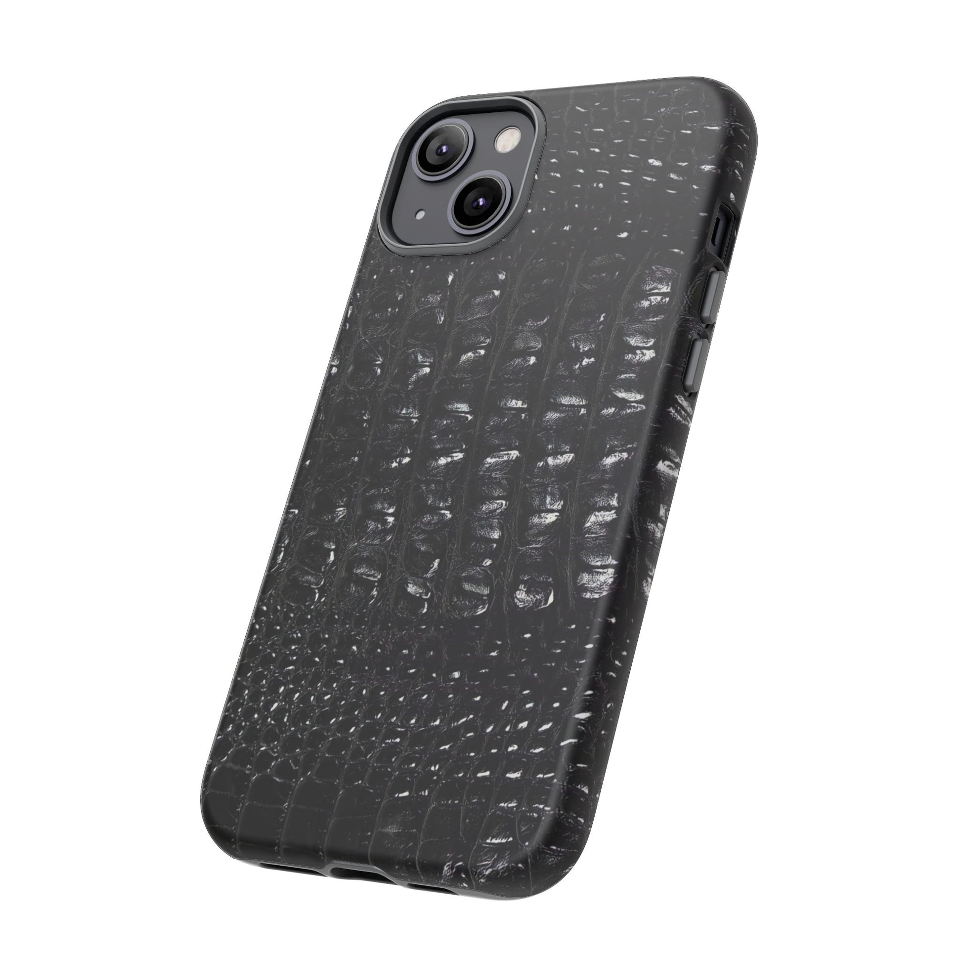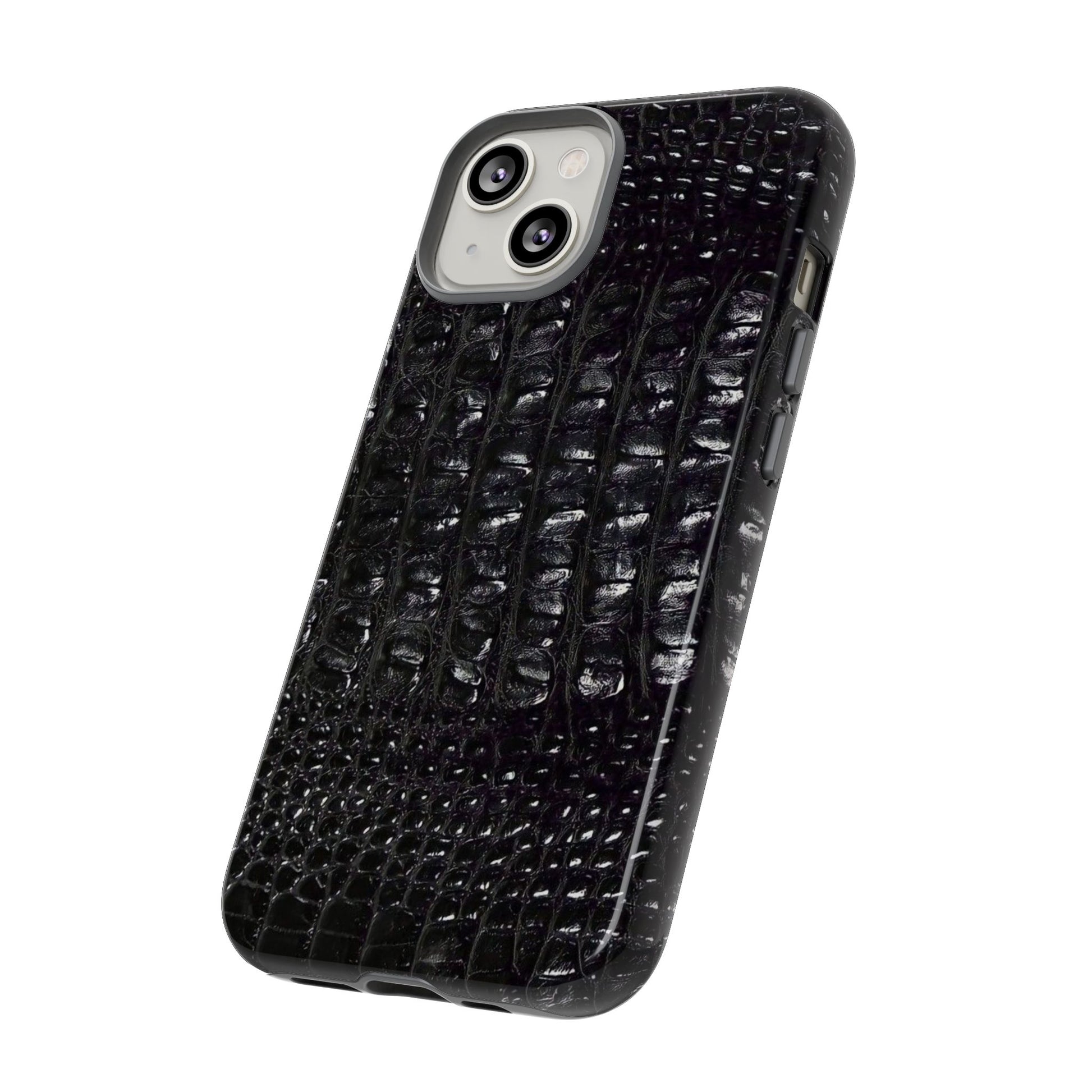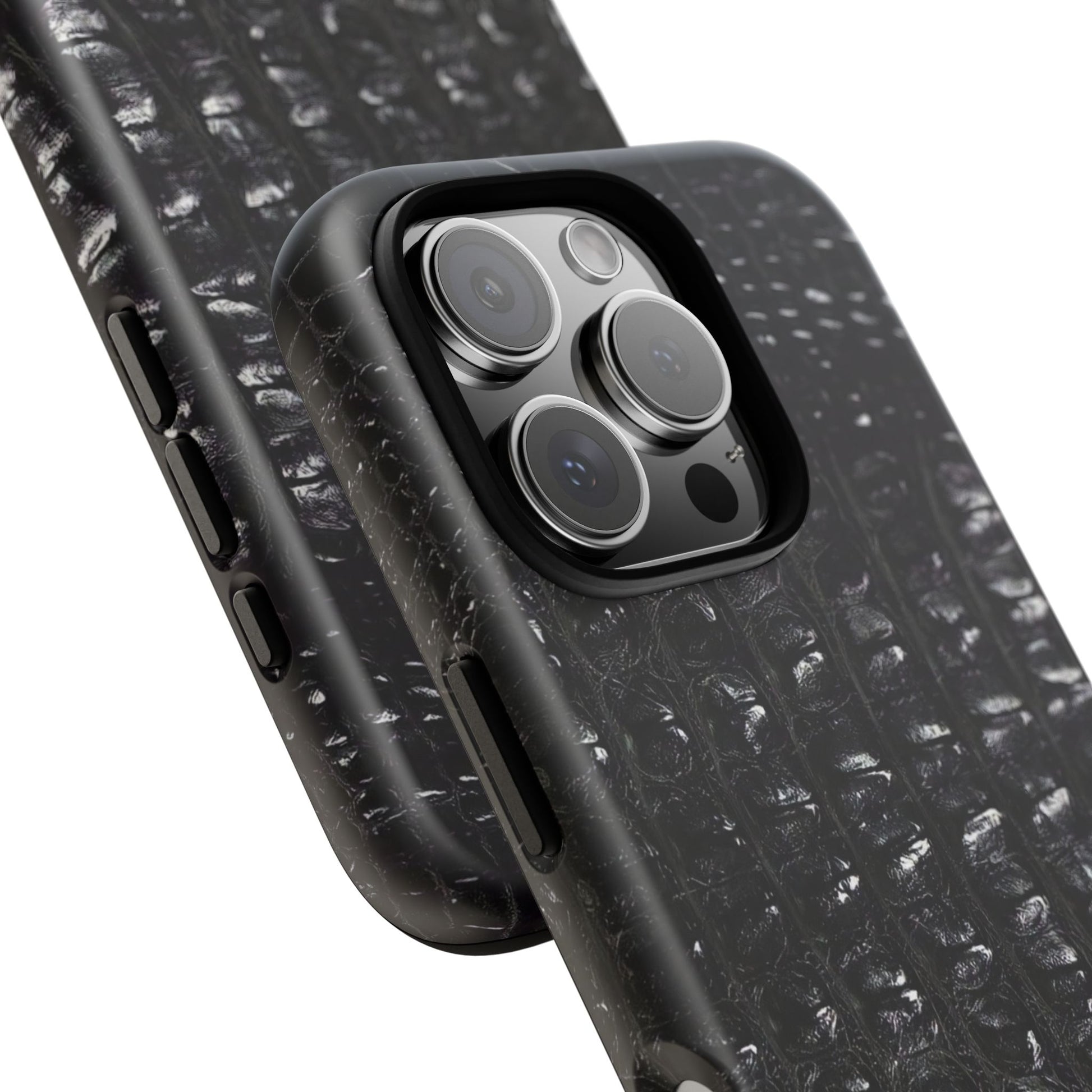 Black Croc Texture Tough Phone Case — Rugged Protective iPhone Cover