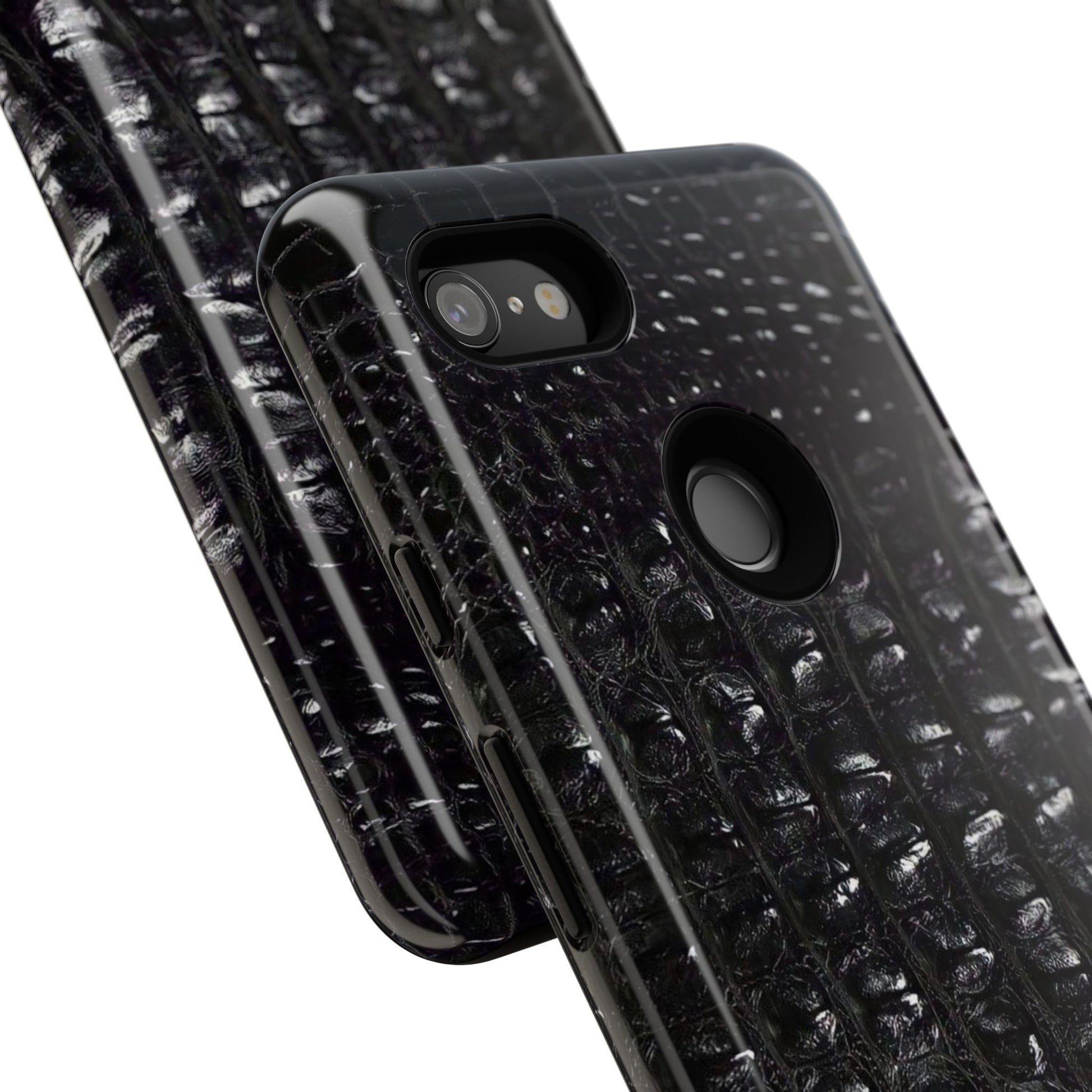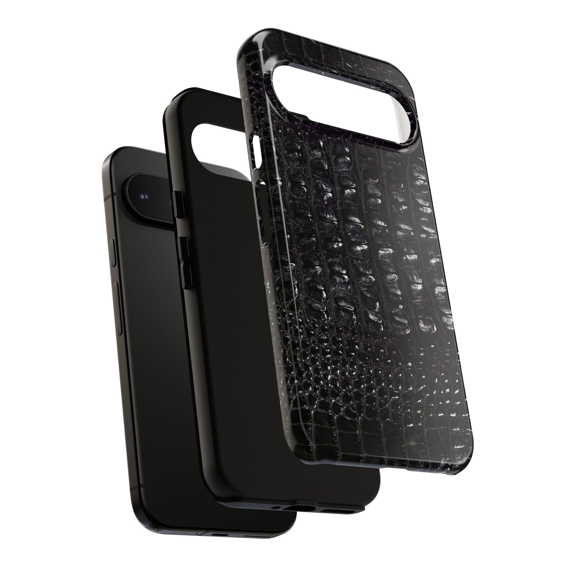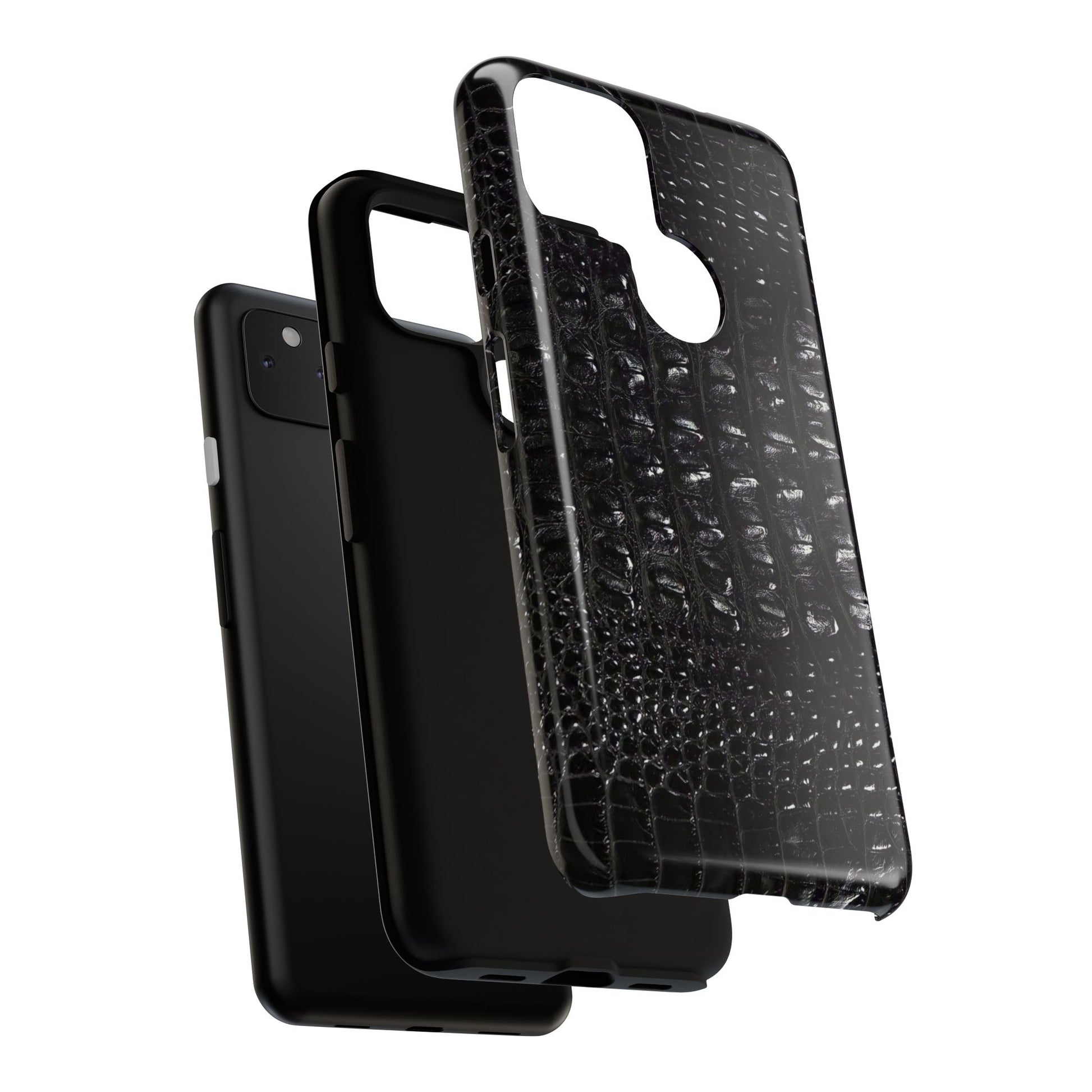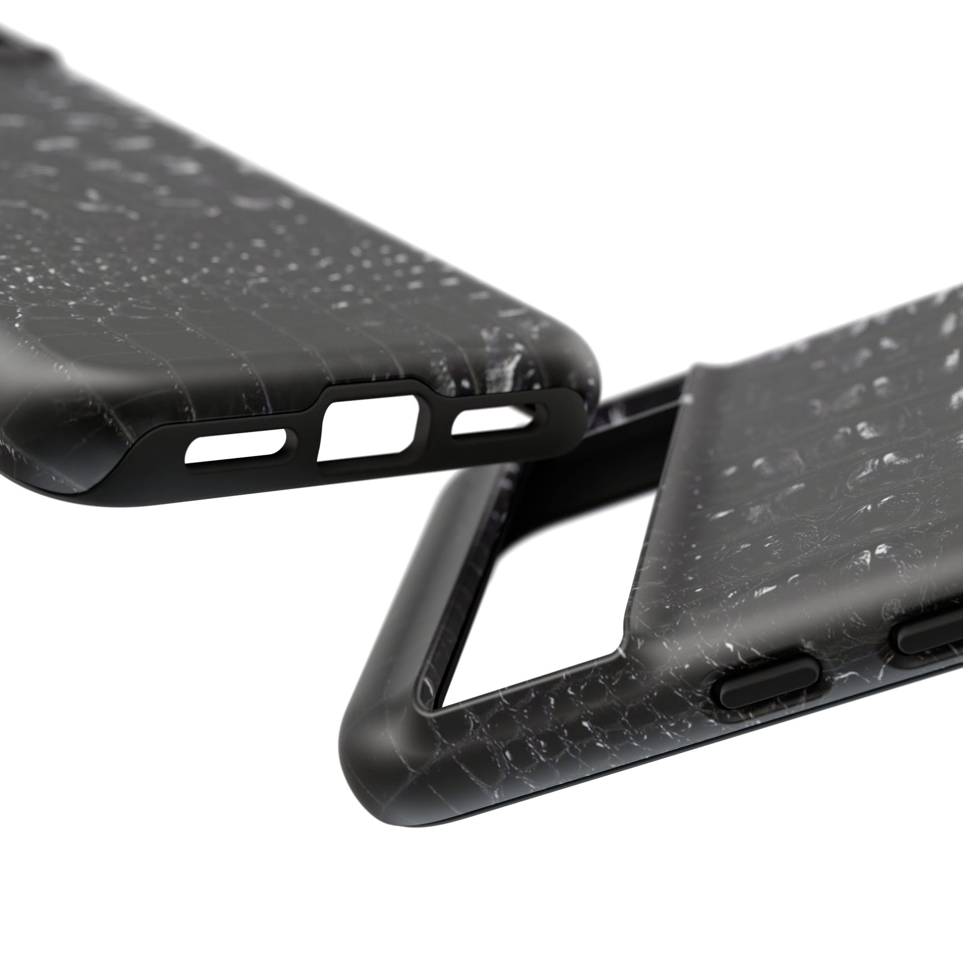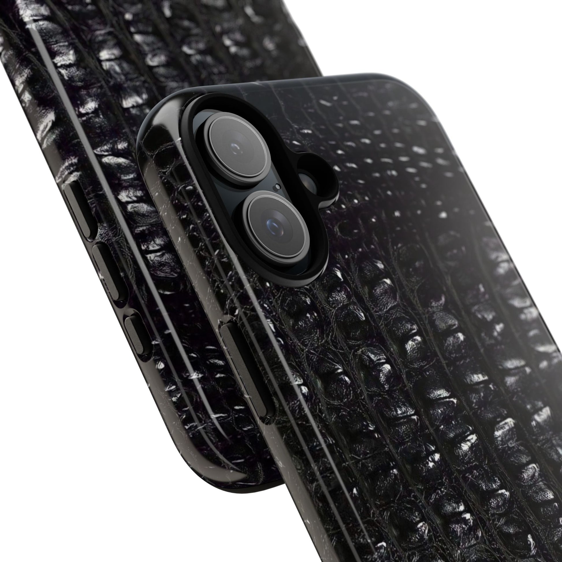 Black Croc Texture Tough Phone Case — Rugged Protective iPhone Cover