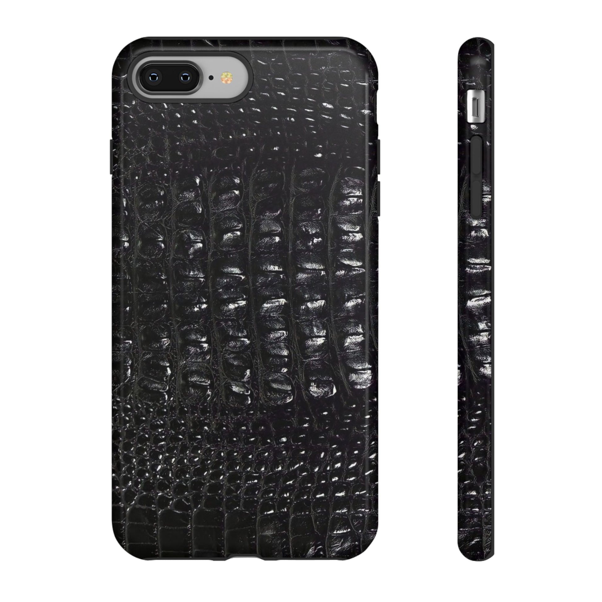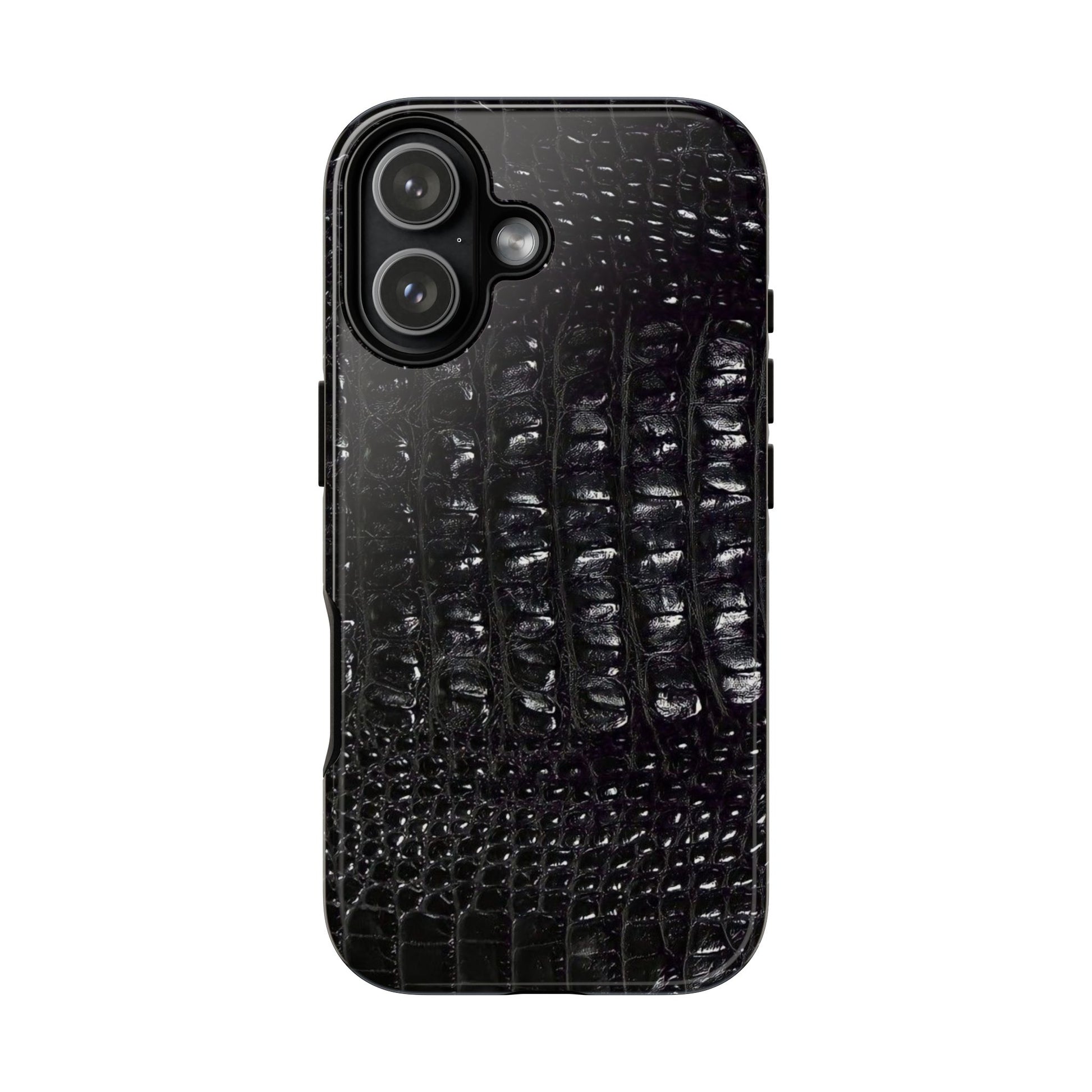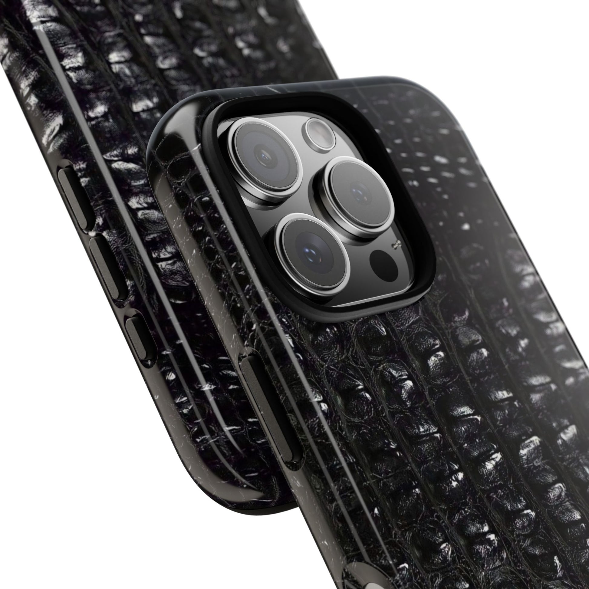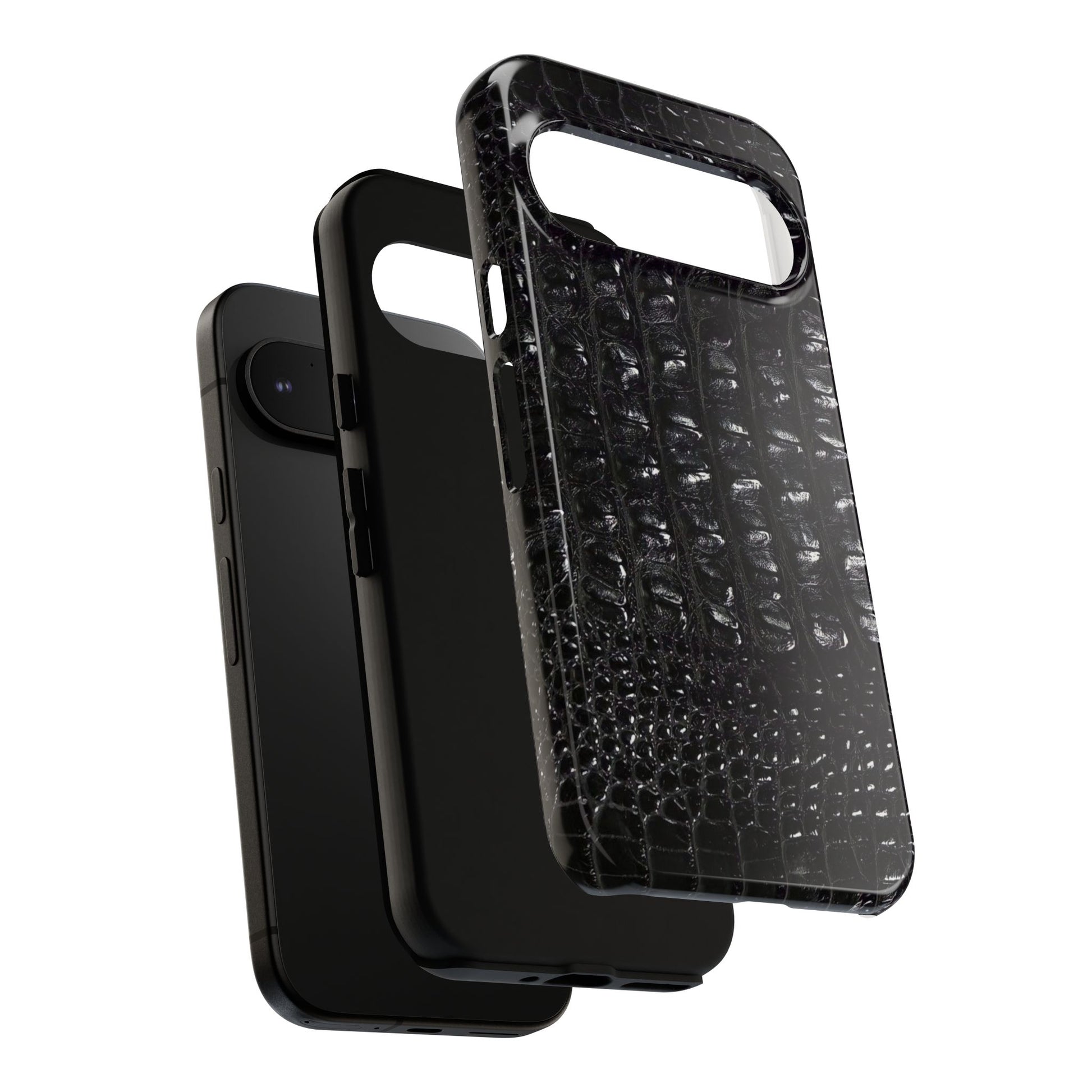 Black Croc Texture Tough Phone Case — Rugged Protective iPhone Cover