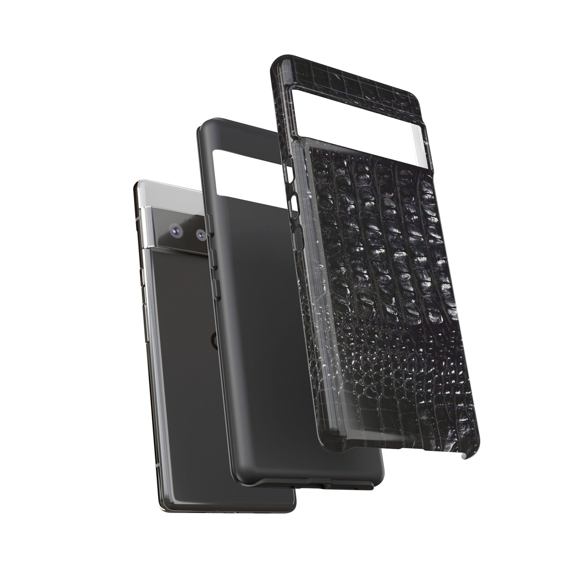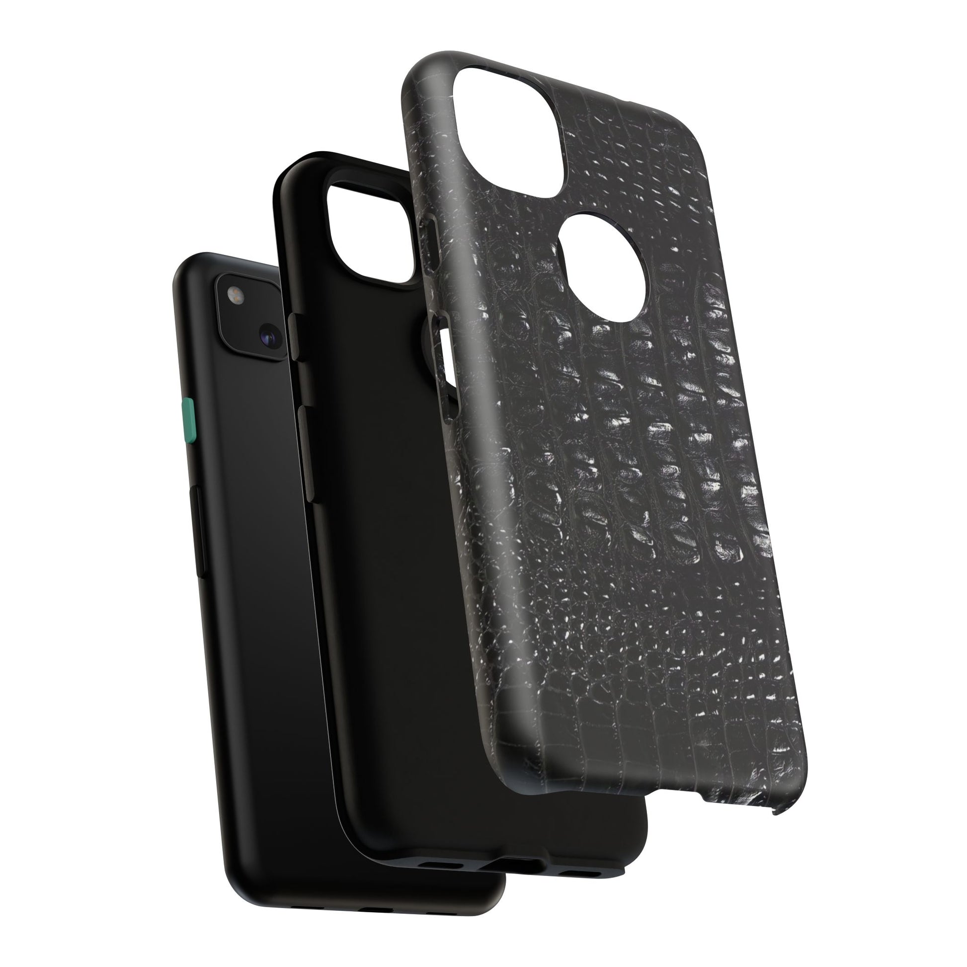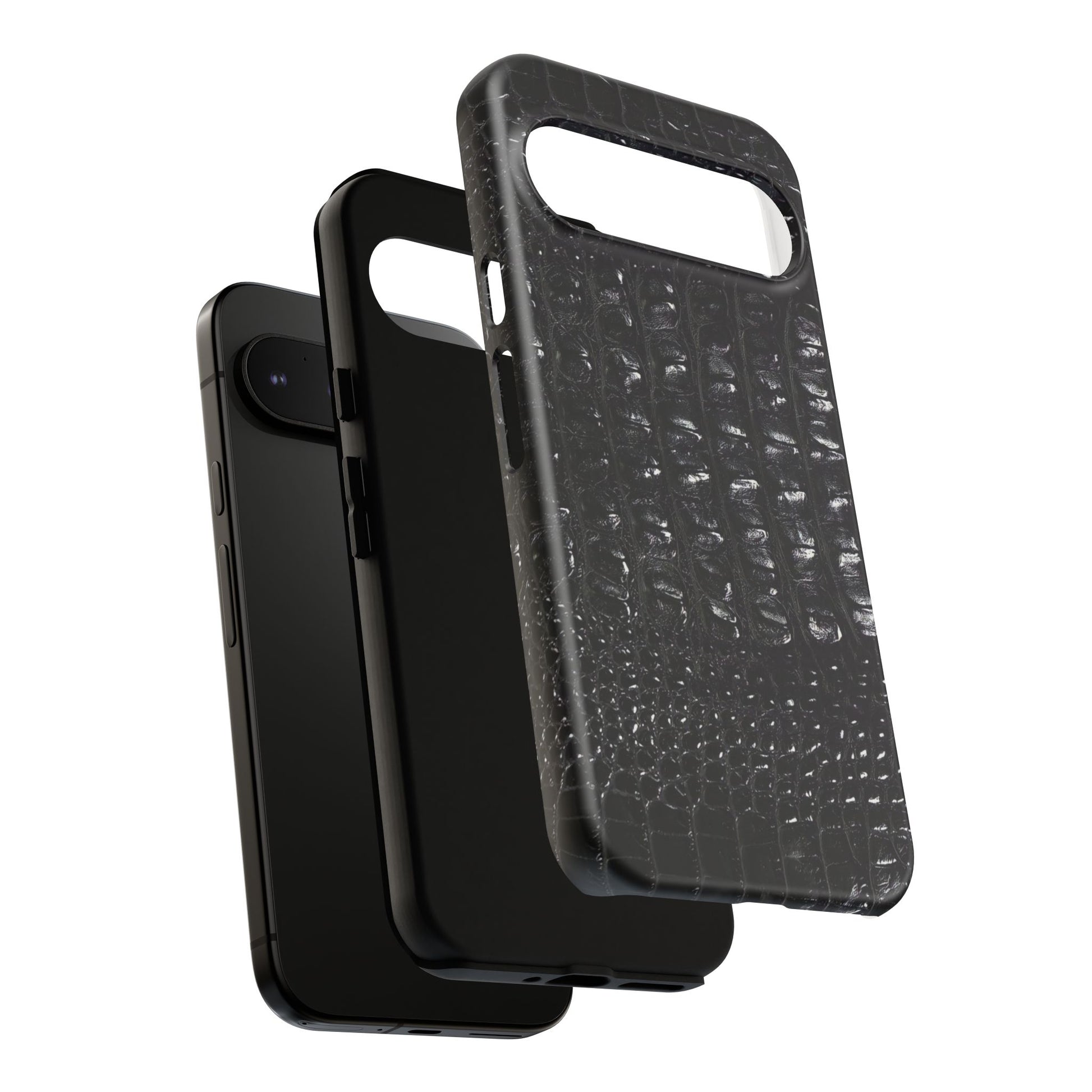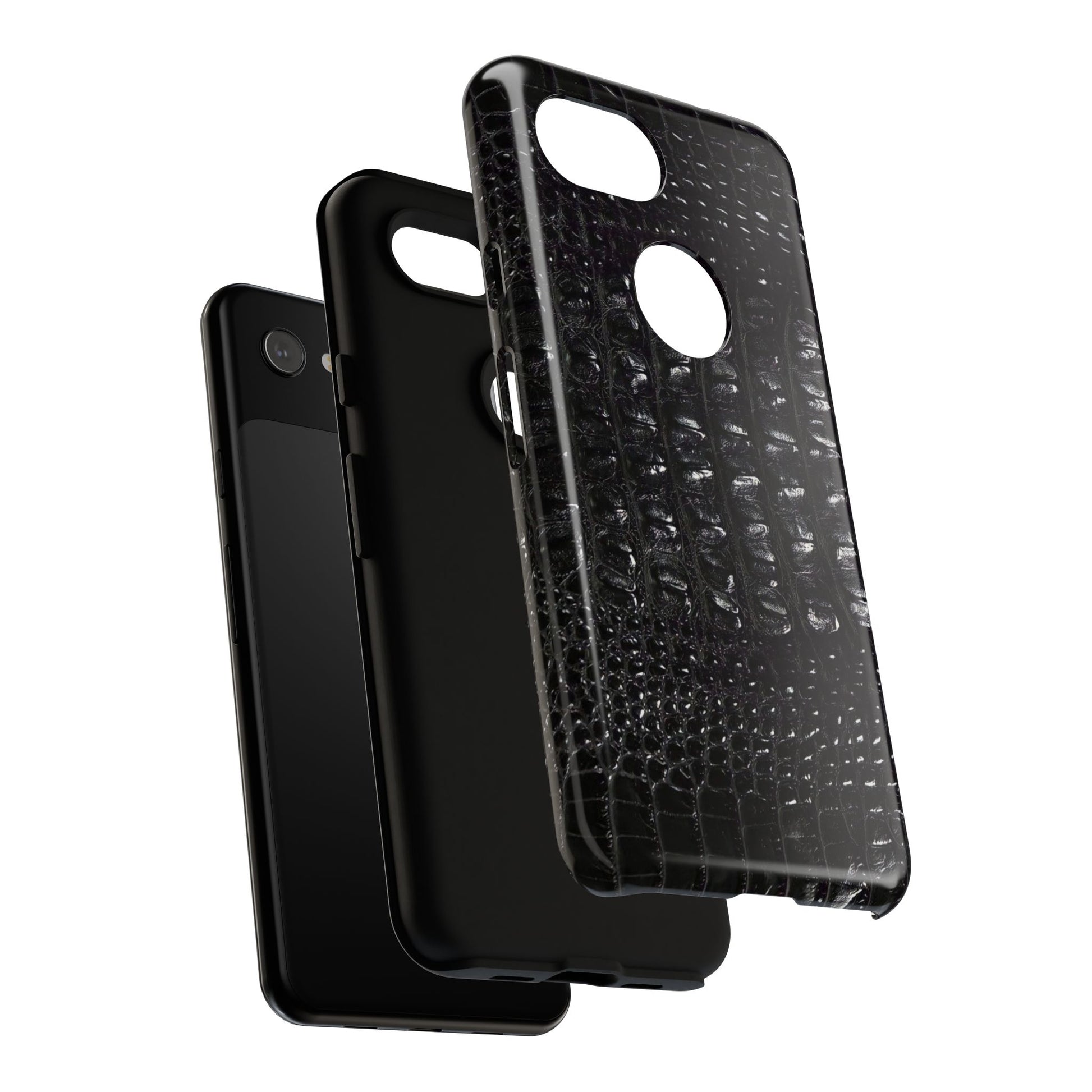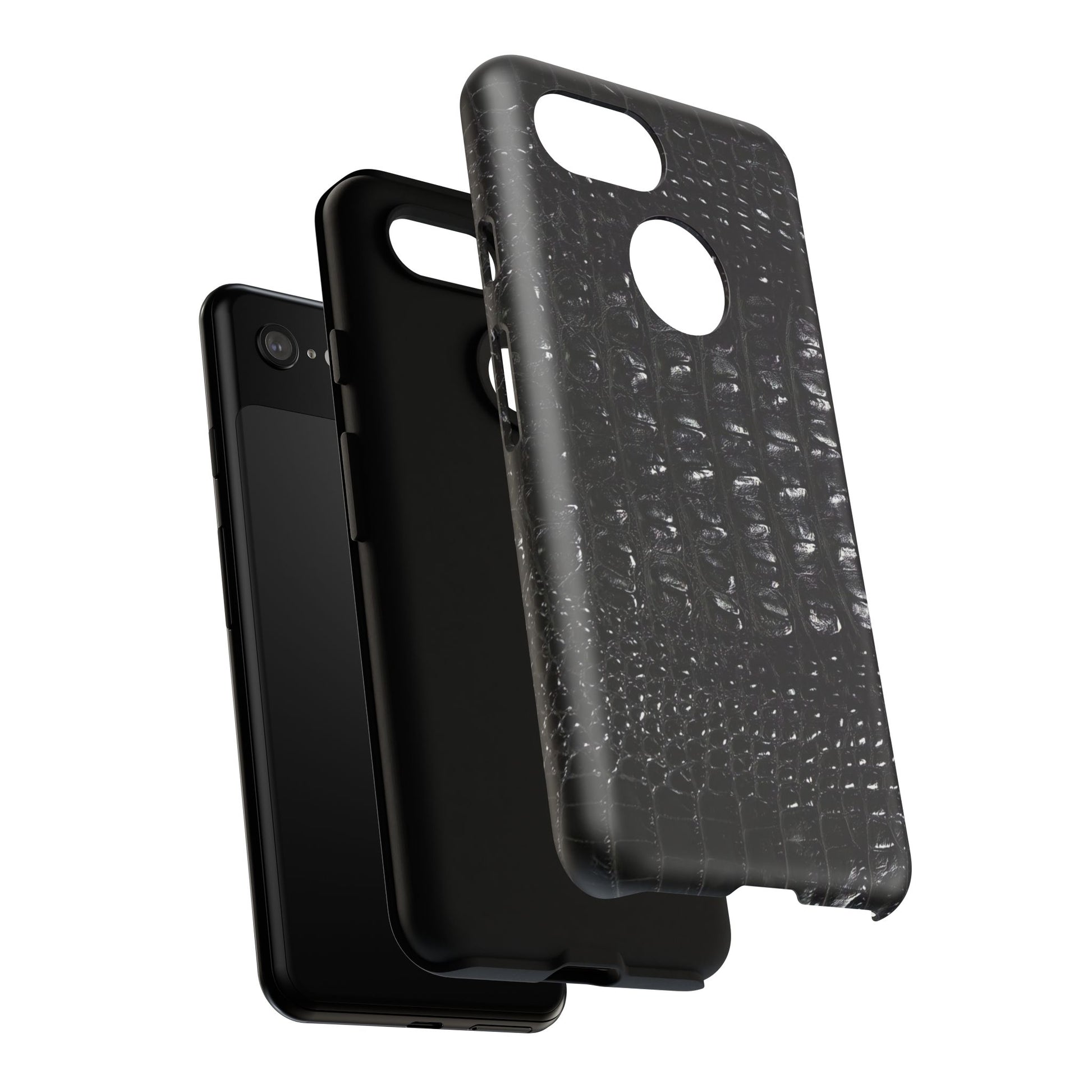Black Croc Texture Tough Phone Case — Rugged Protective iPhone Cover
