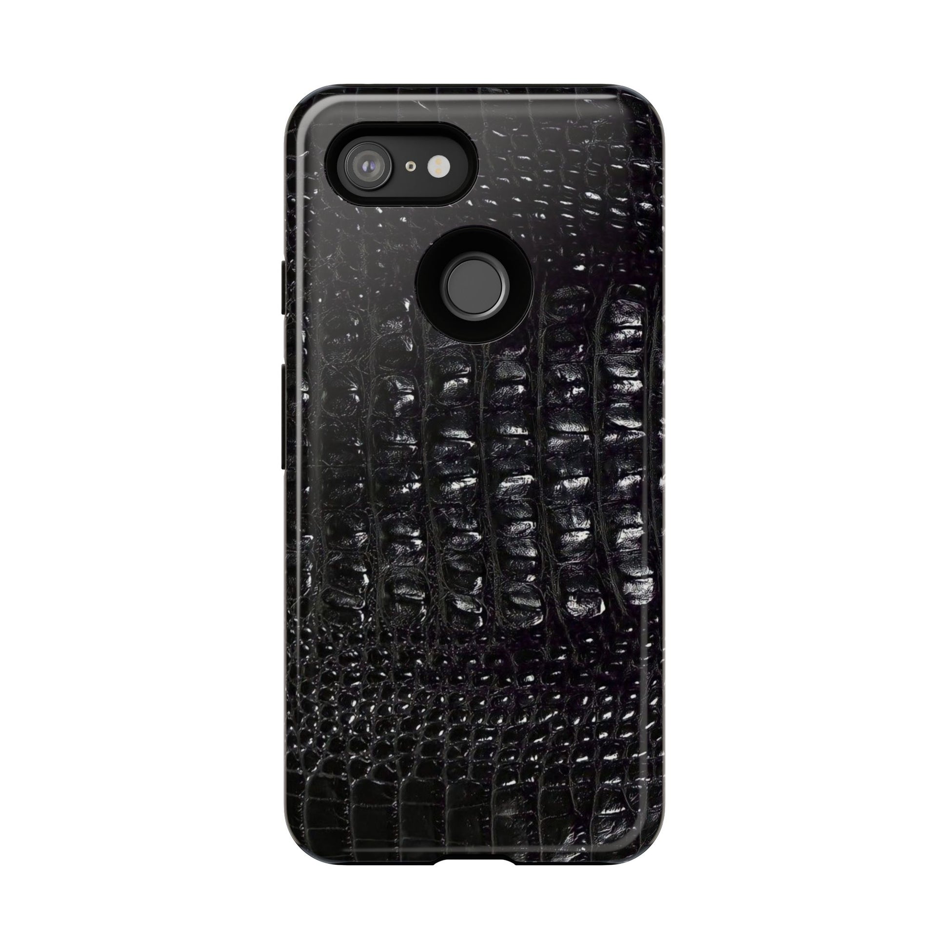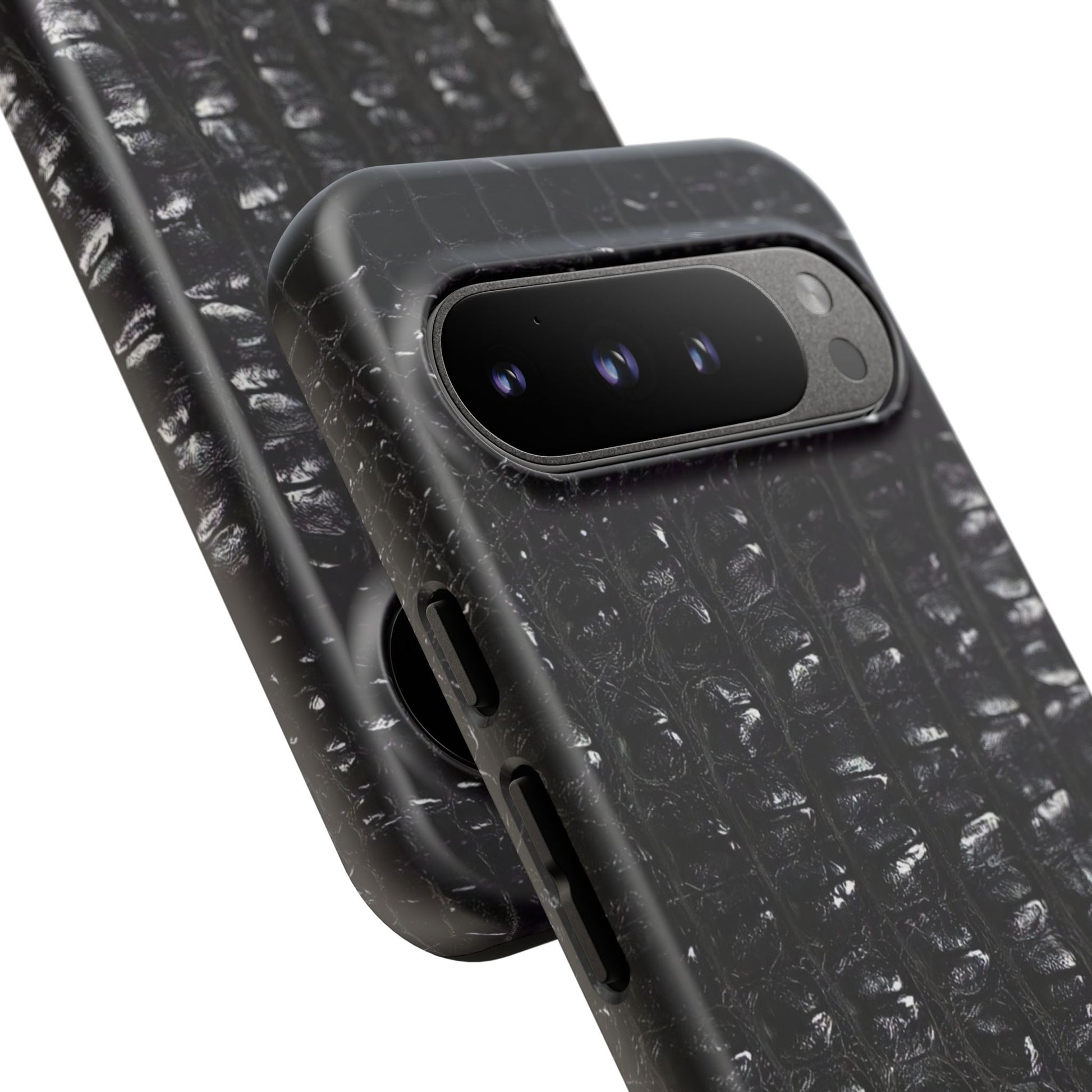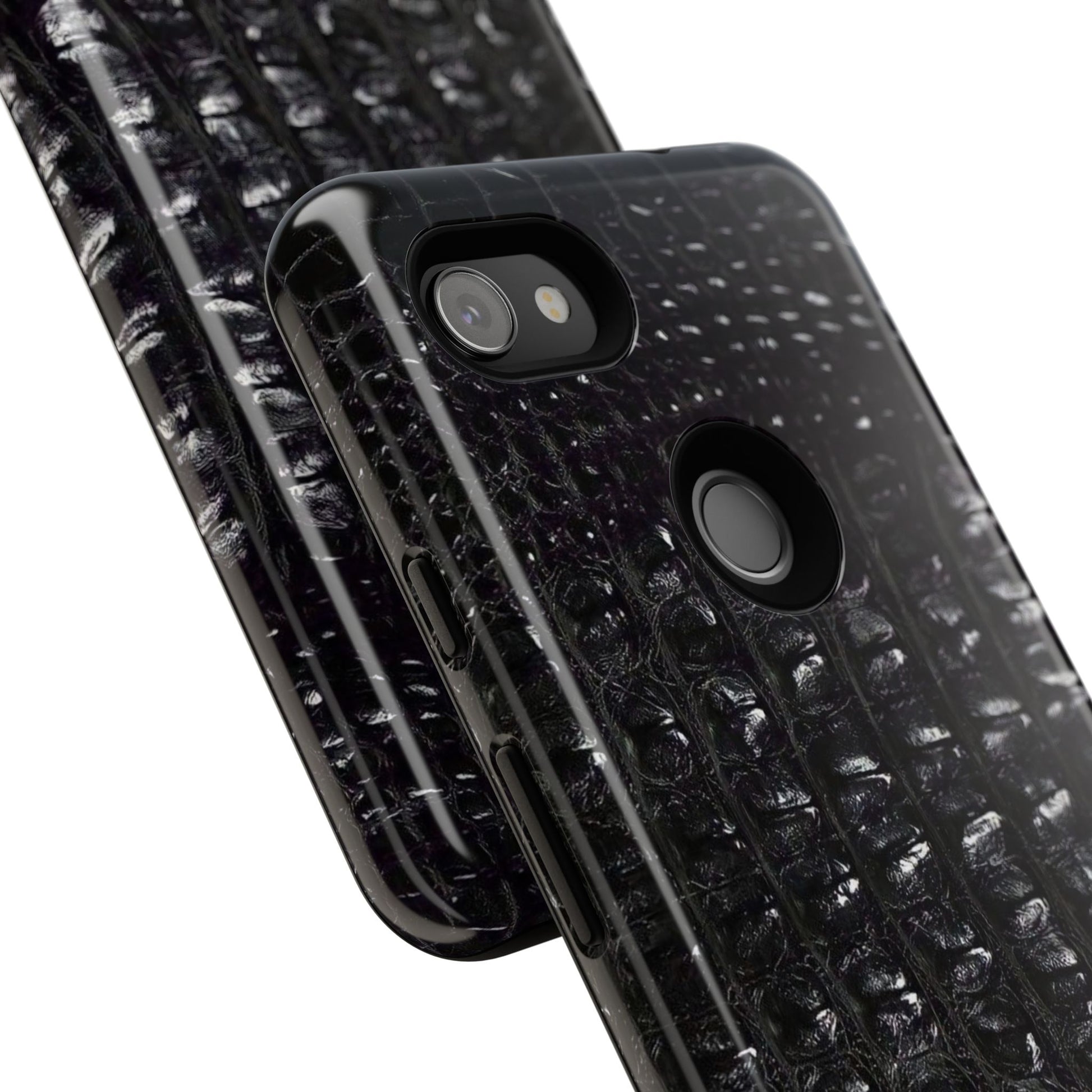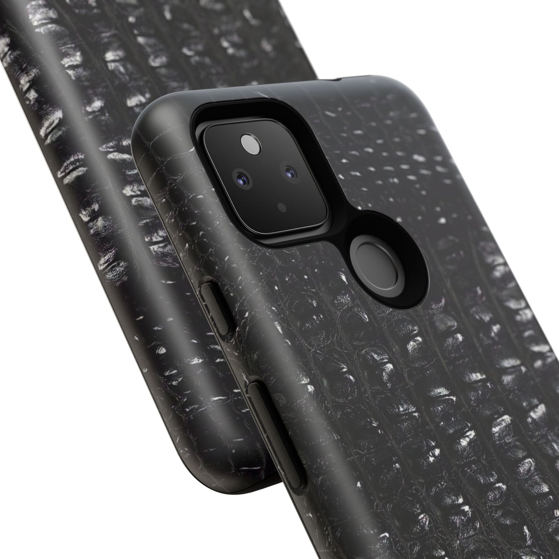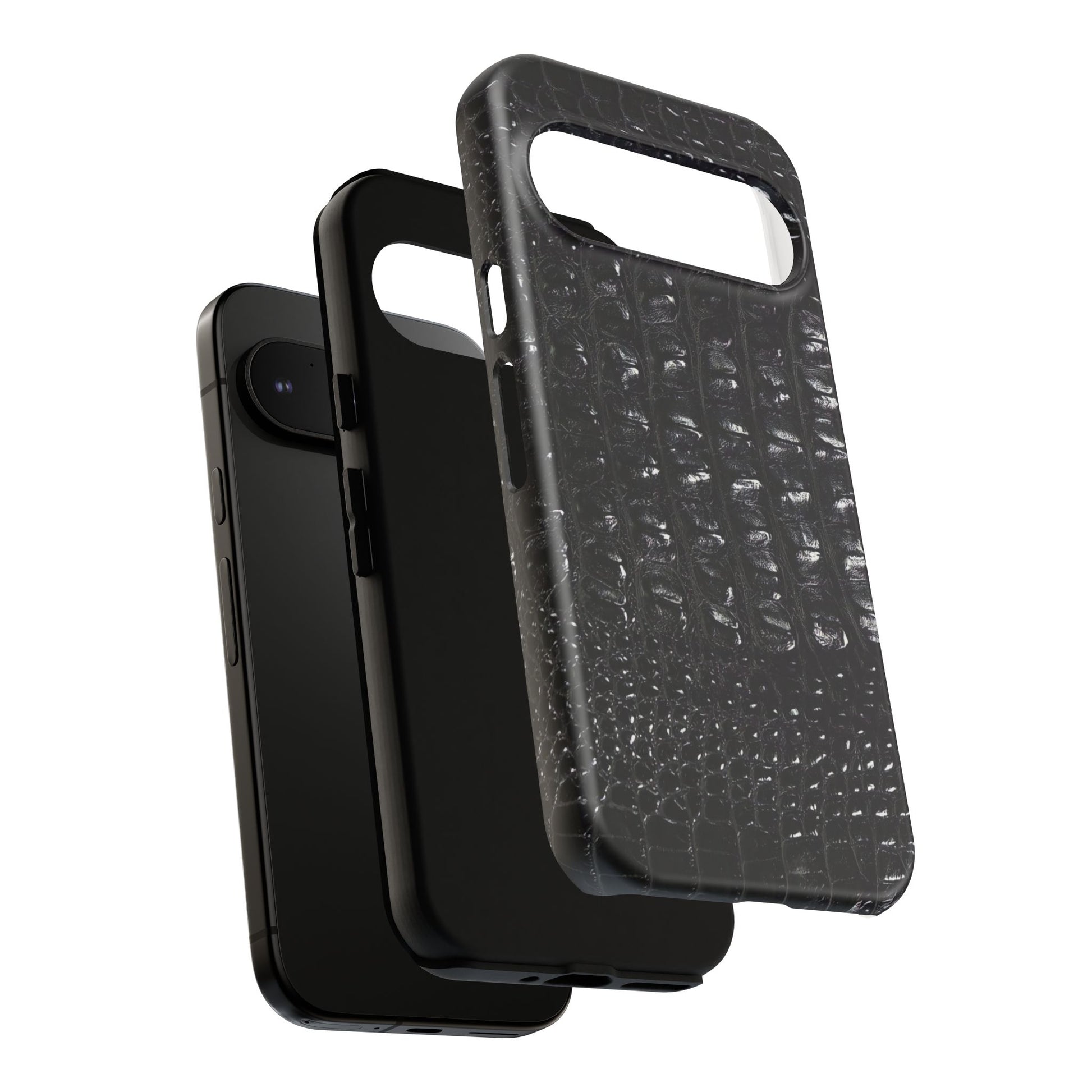Black Croc Texture Tough Phone Case — Rugged Protective iPhone Cover