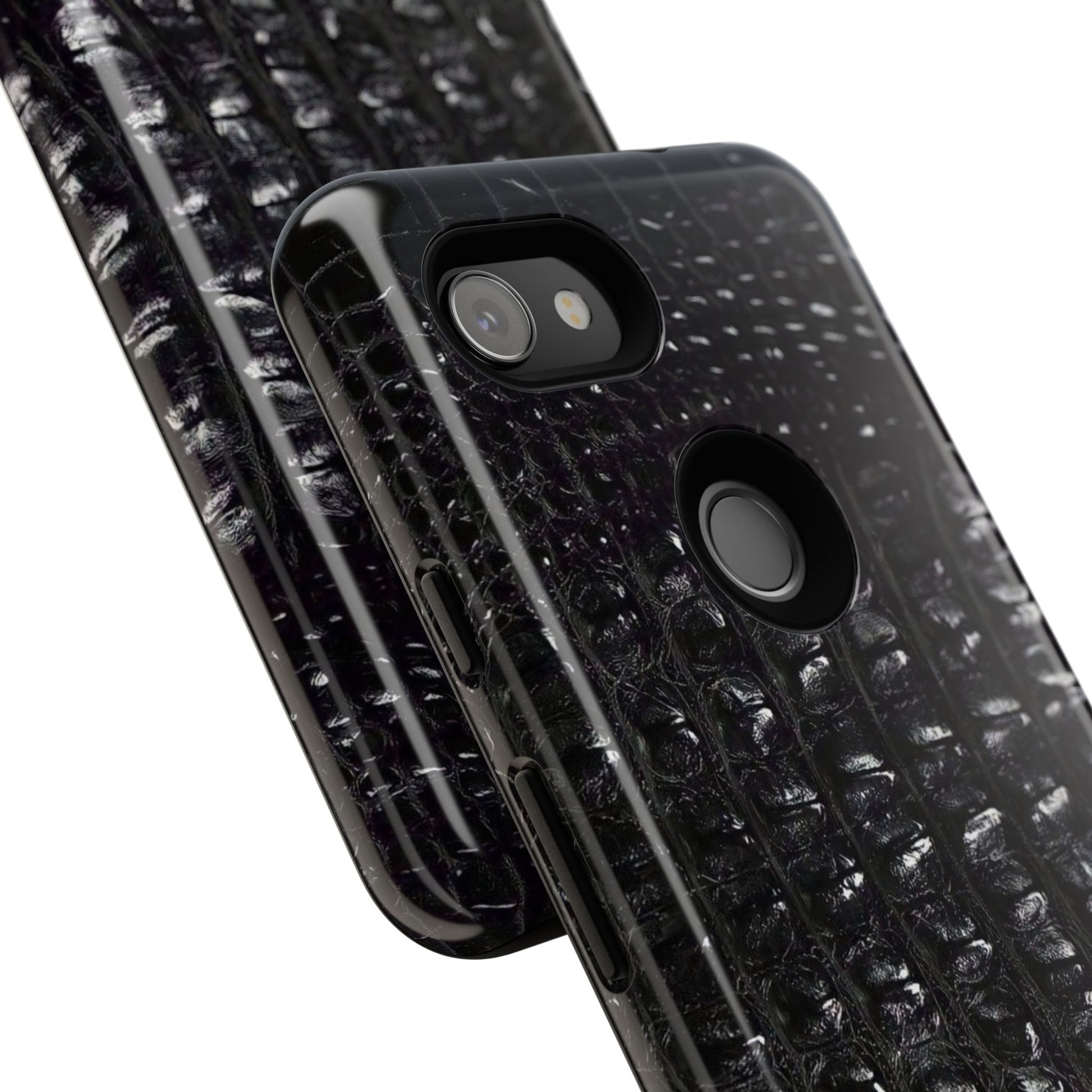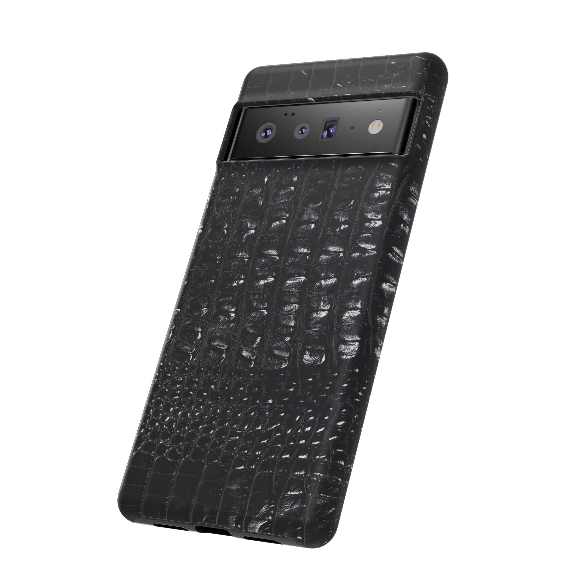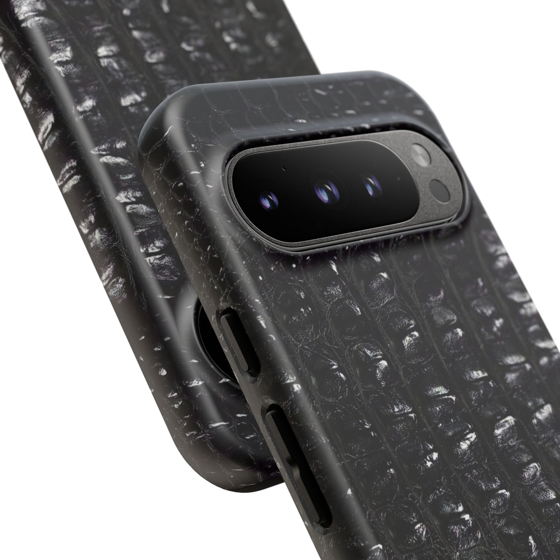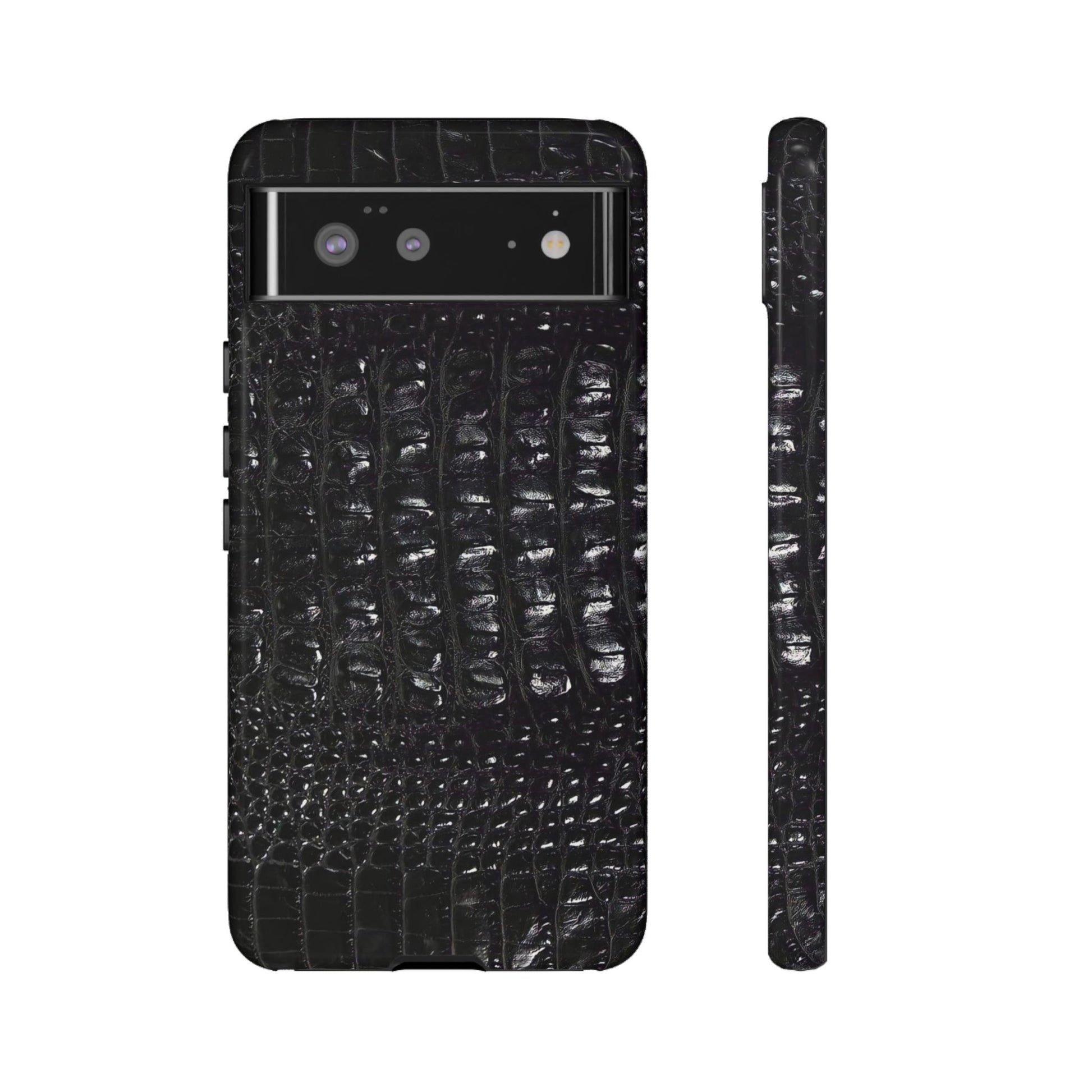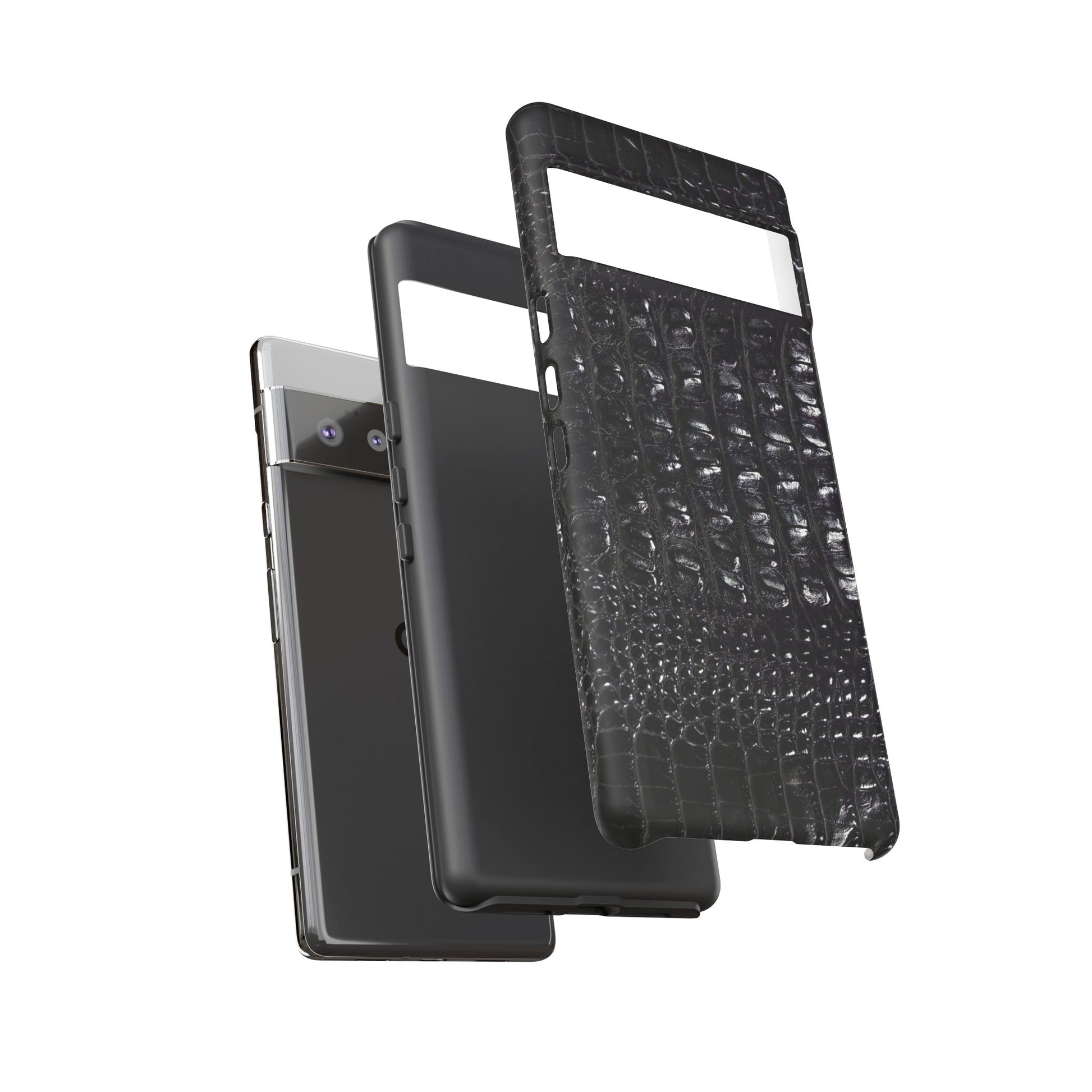 Black Croc Texture Tough Phone Case — Rugged Protective iPhone Cover