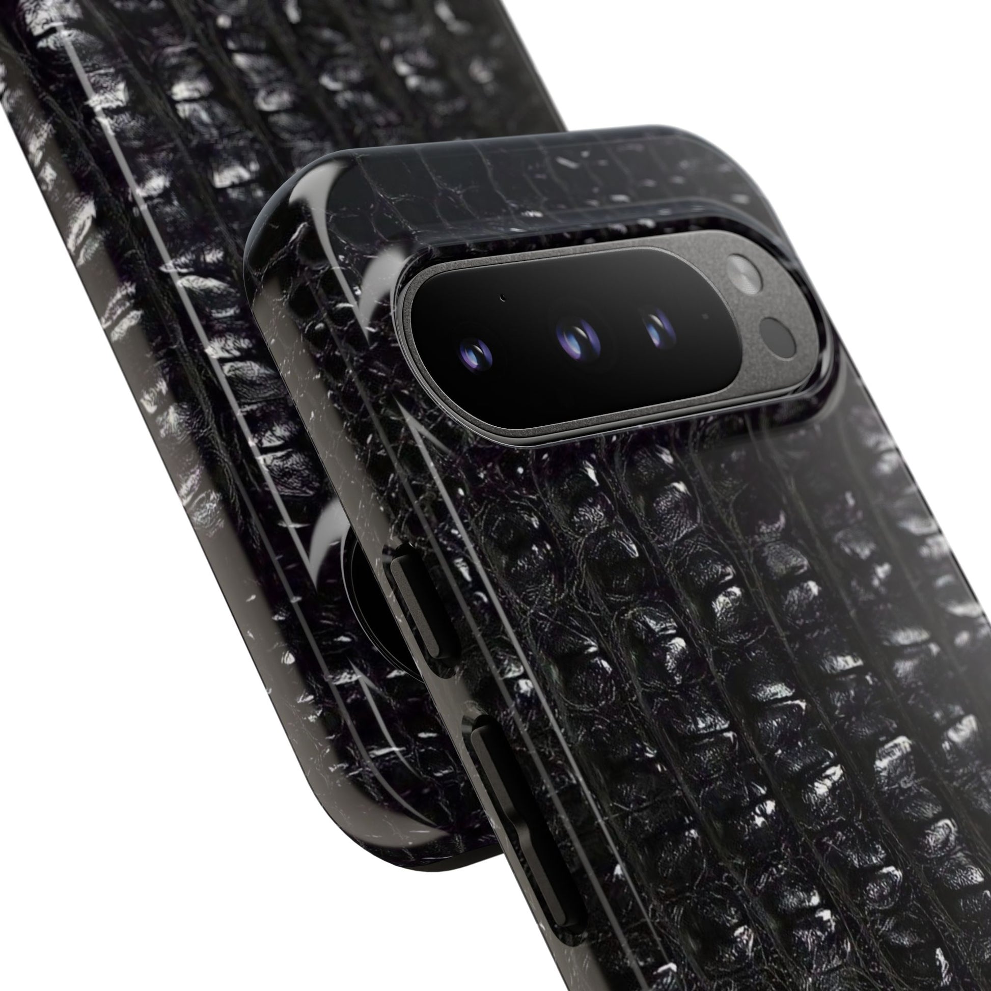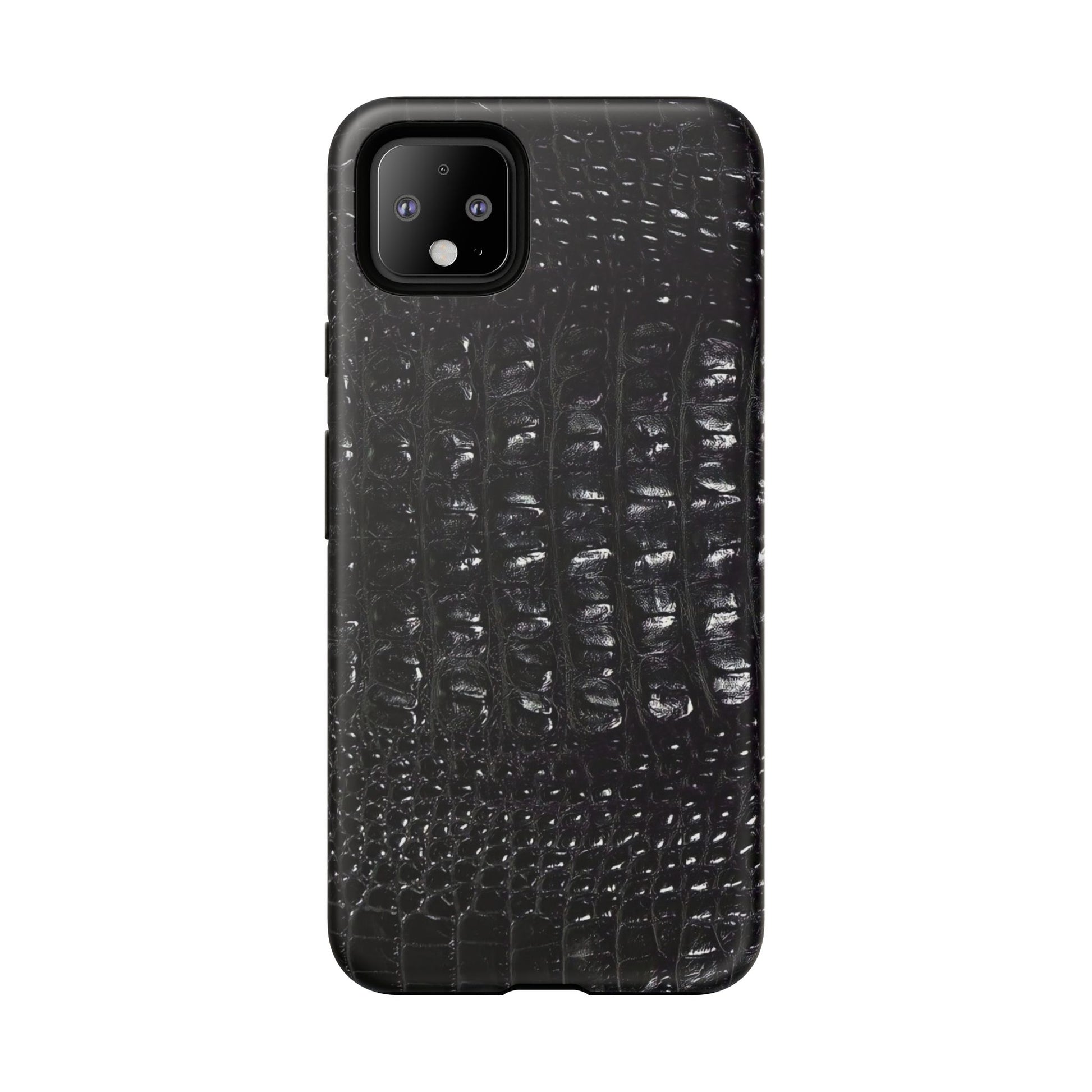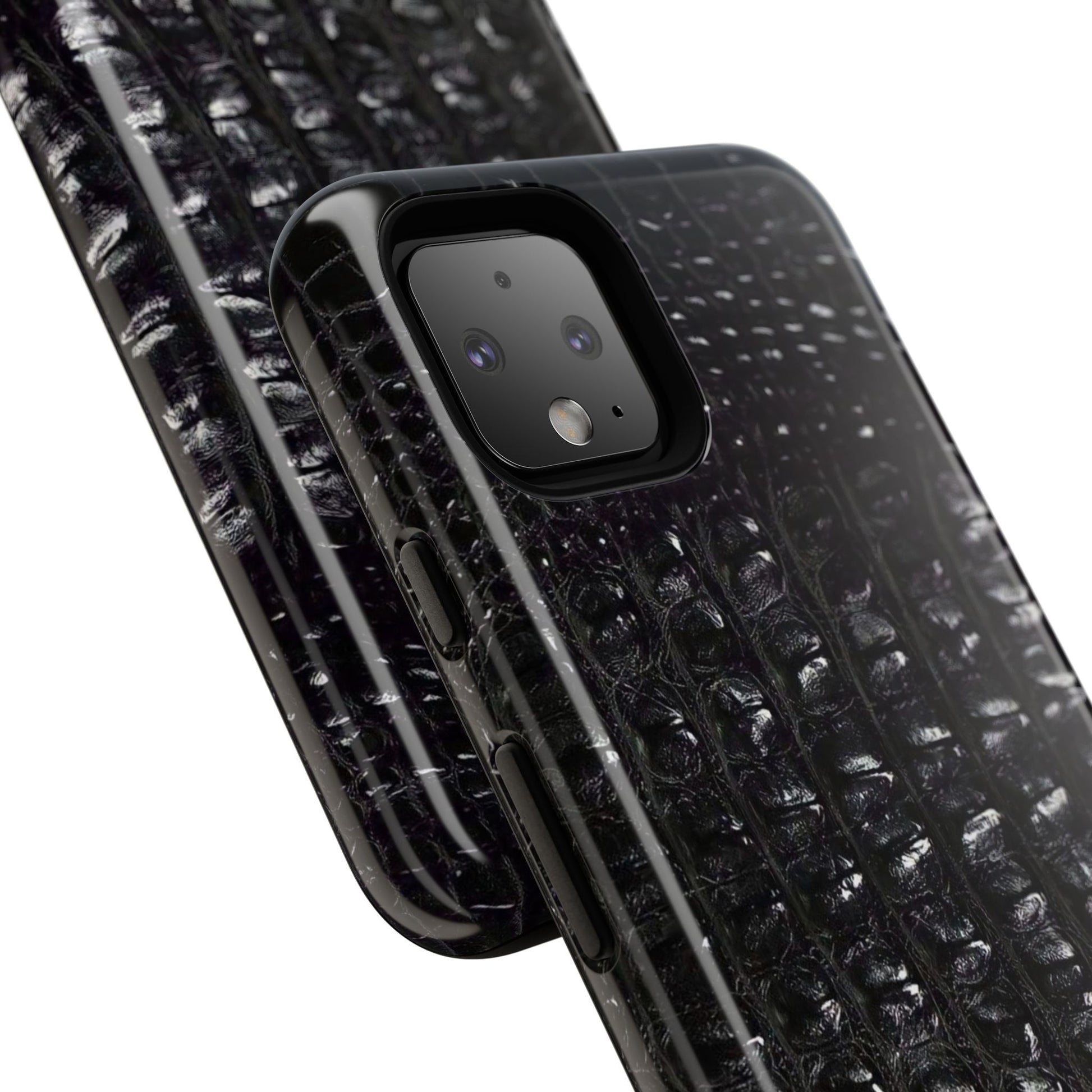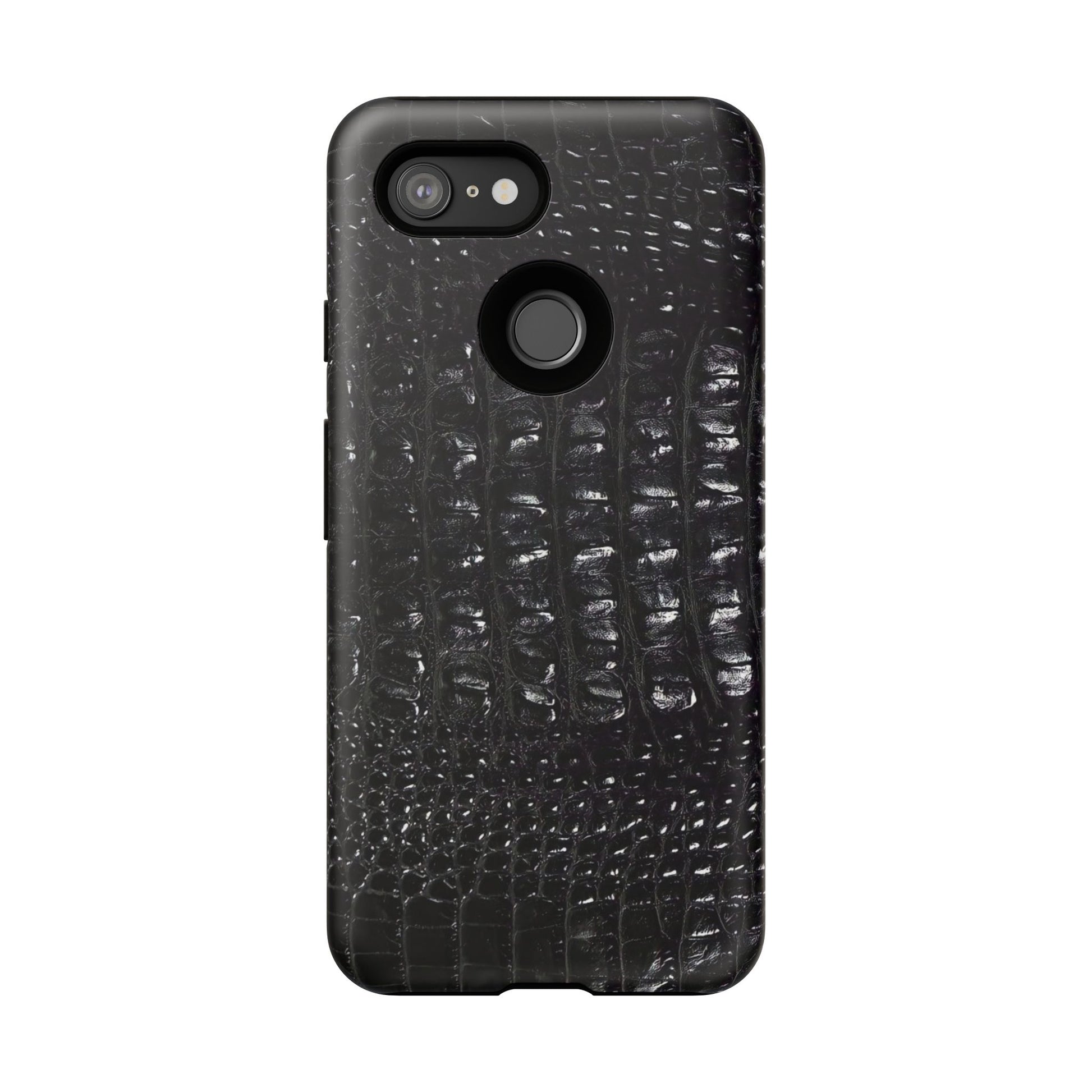 Black Croc Texture Tough Phone Case — Rugged Protective iPhone Cover