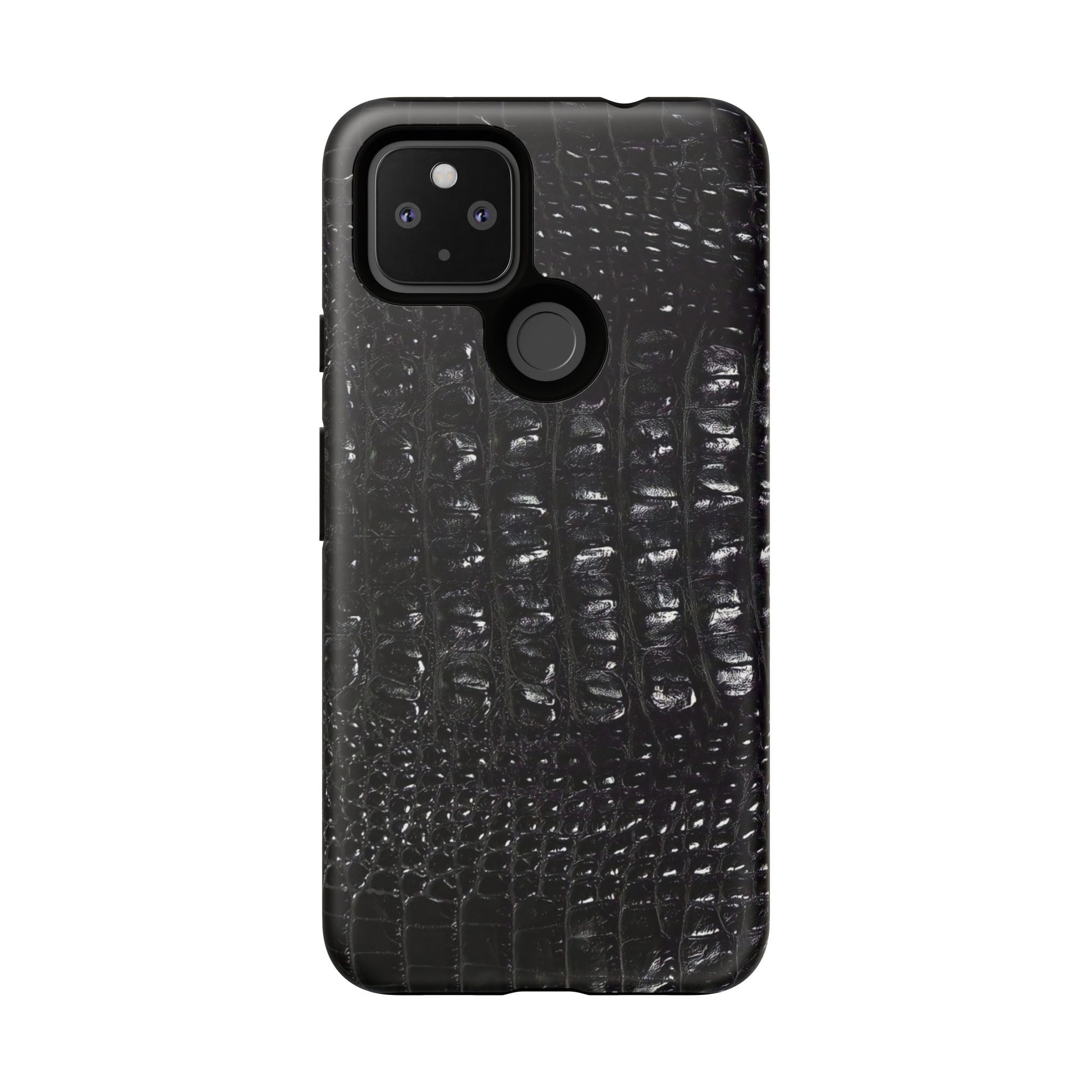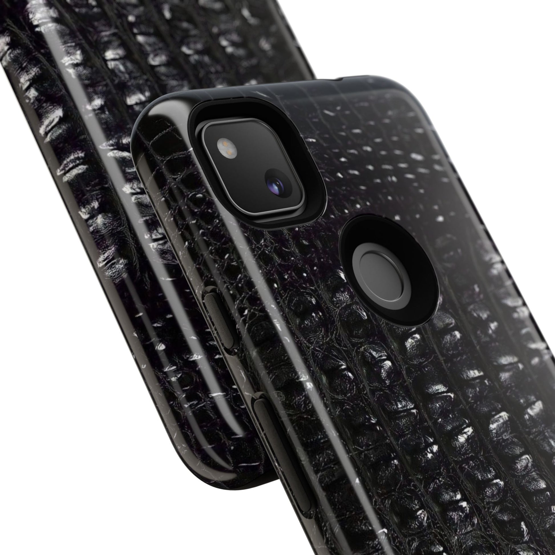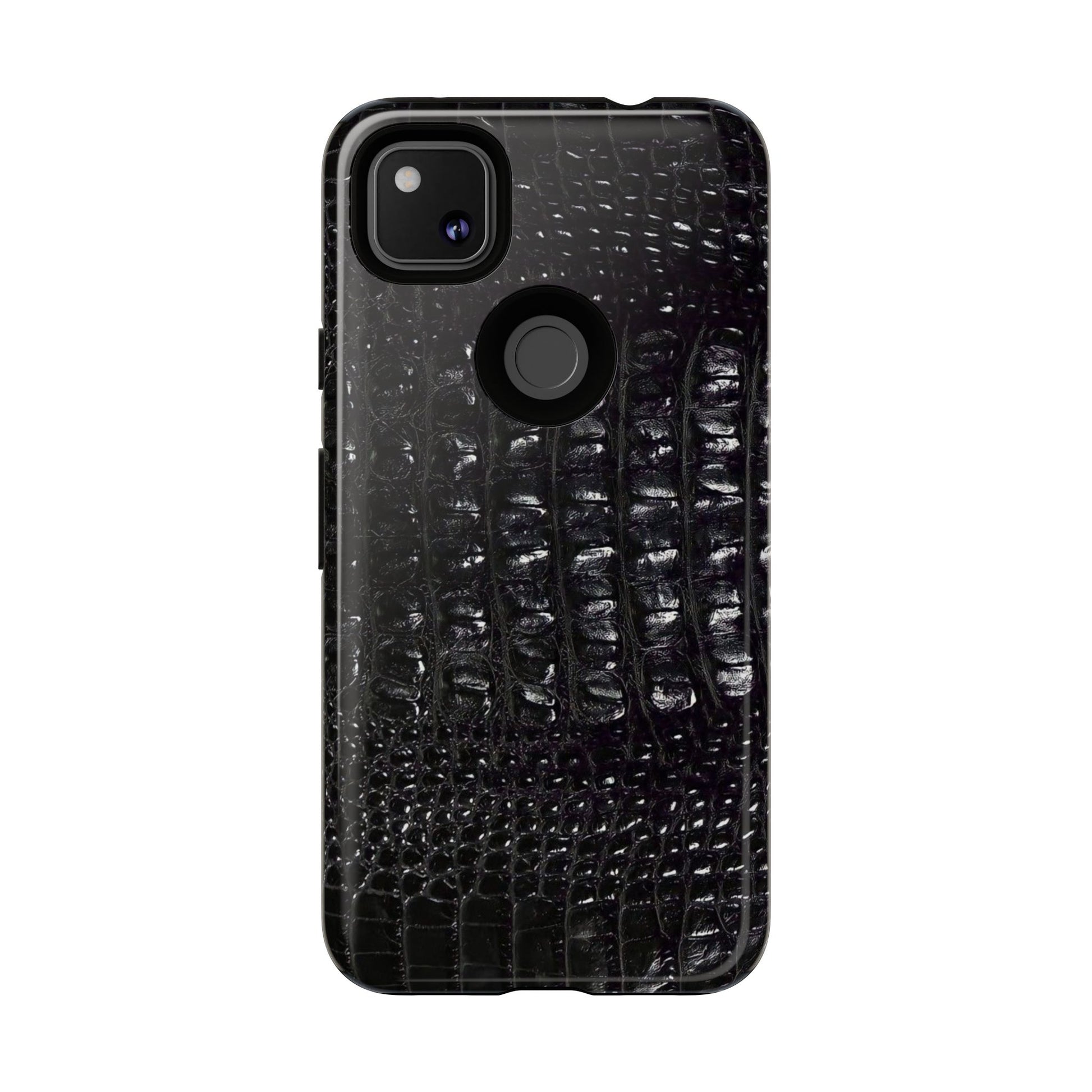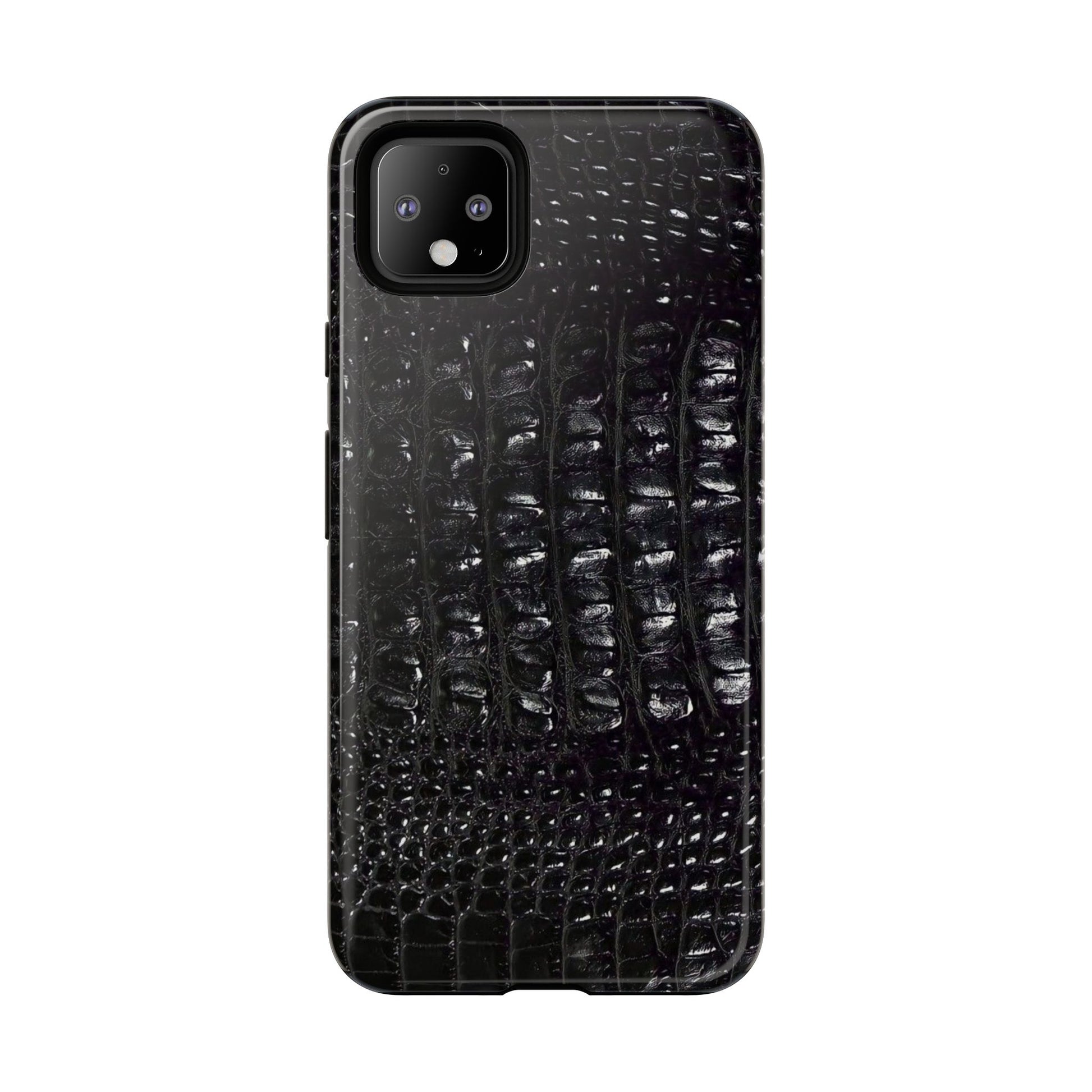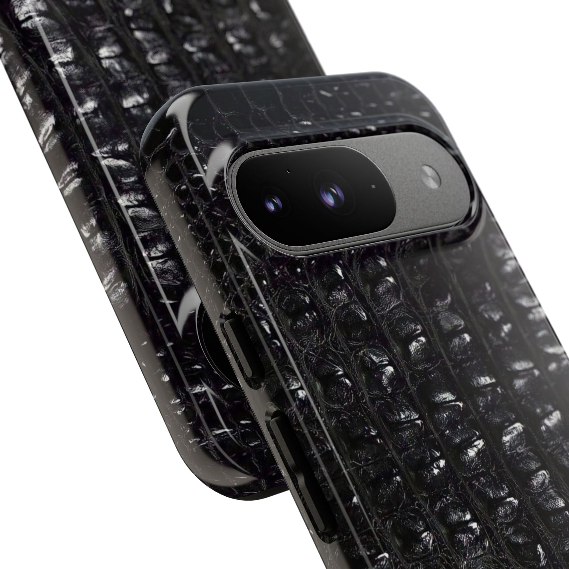 Black Croc Texture Tough Phone Case — Rugged Protective iPhone Cover