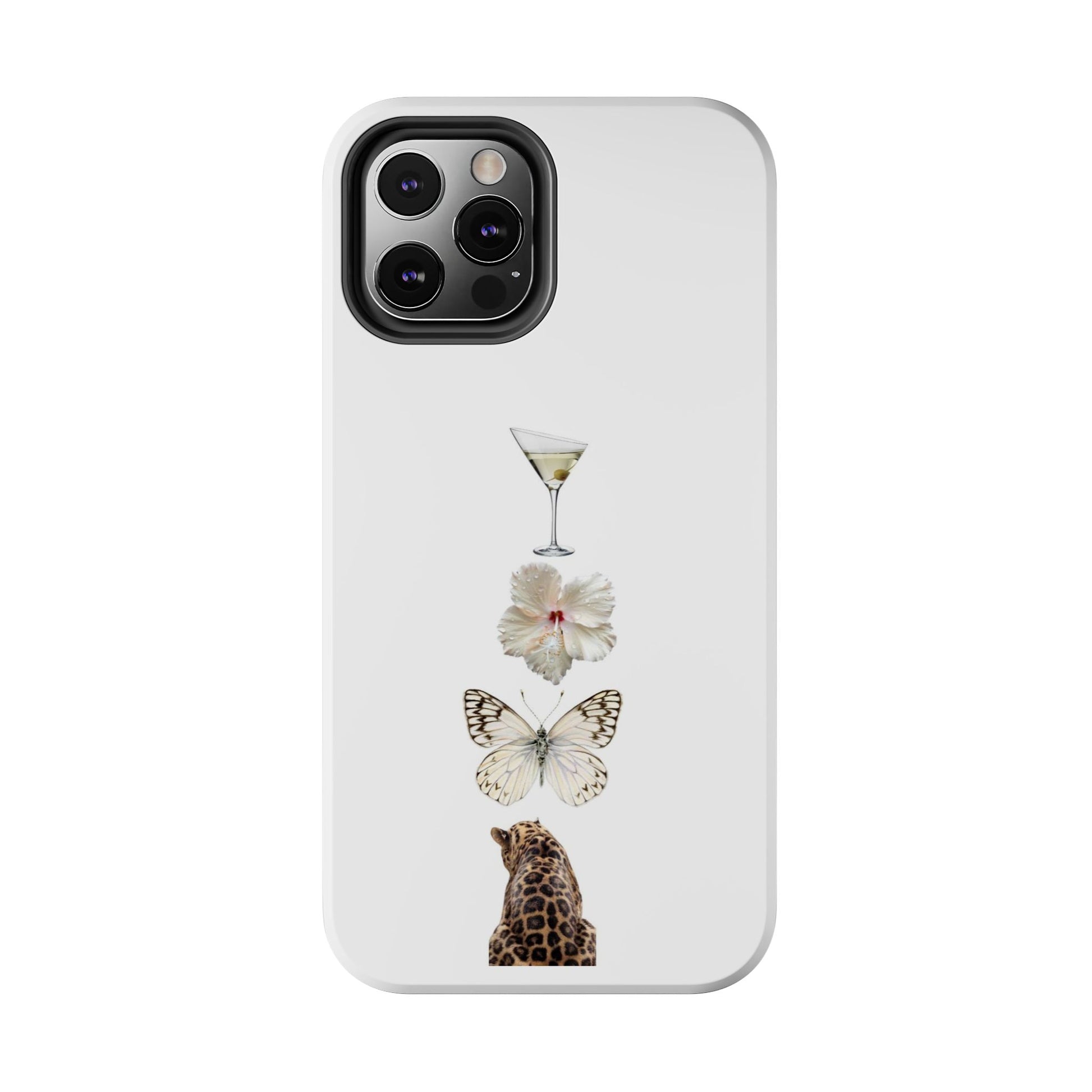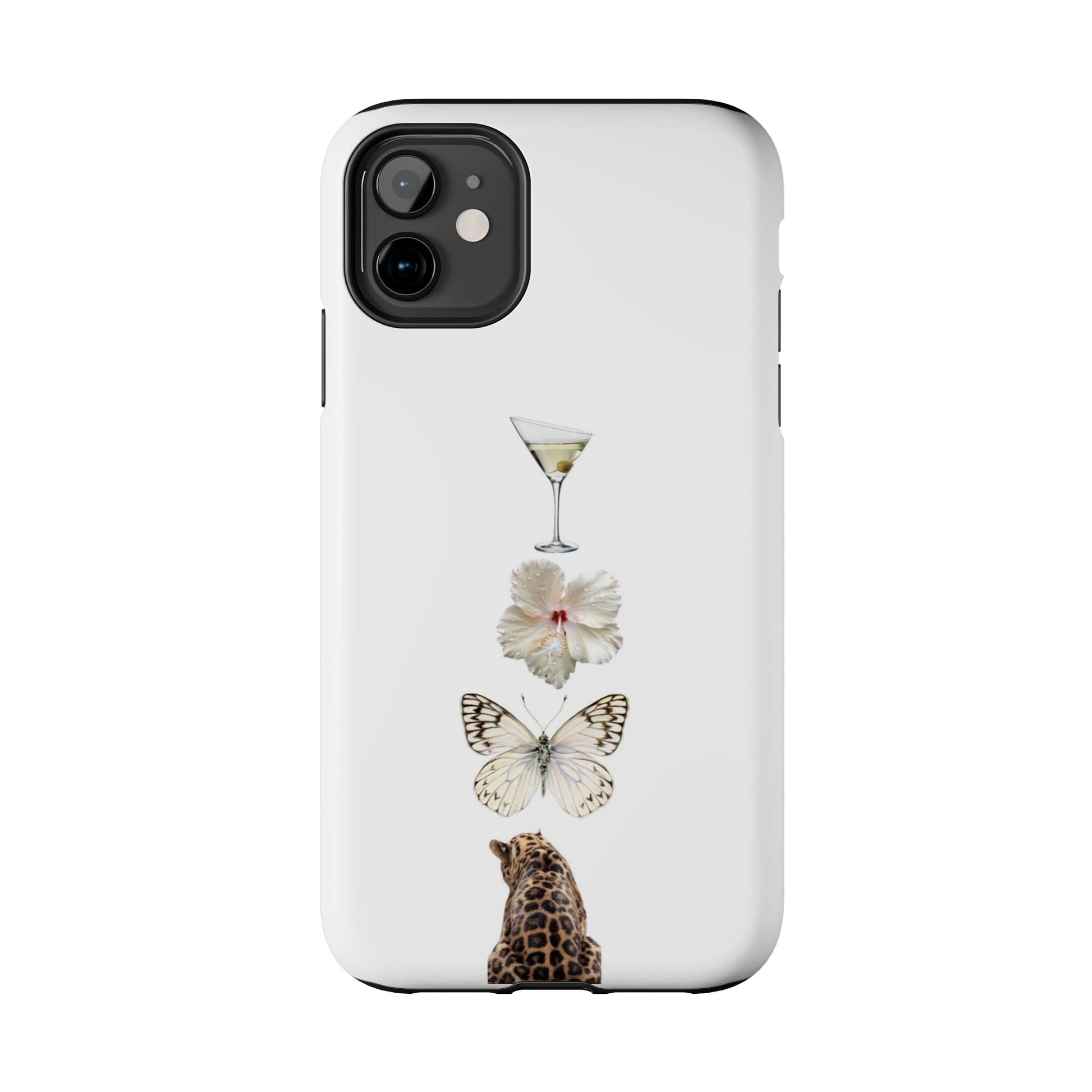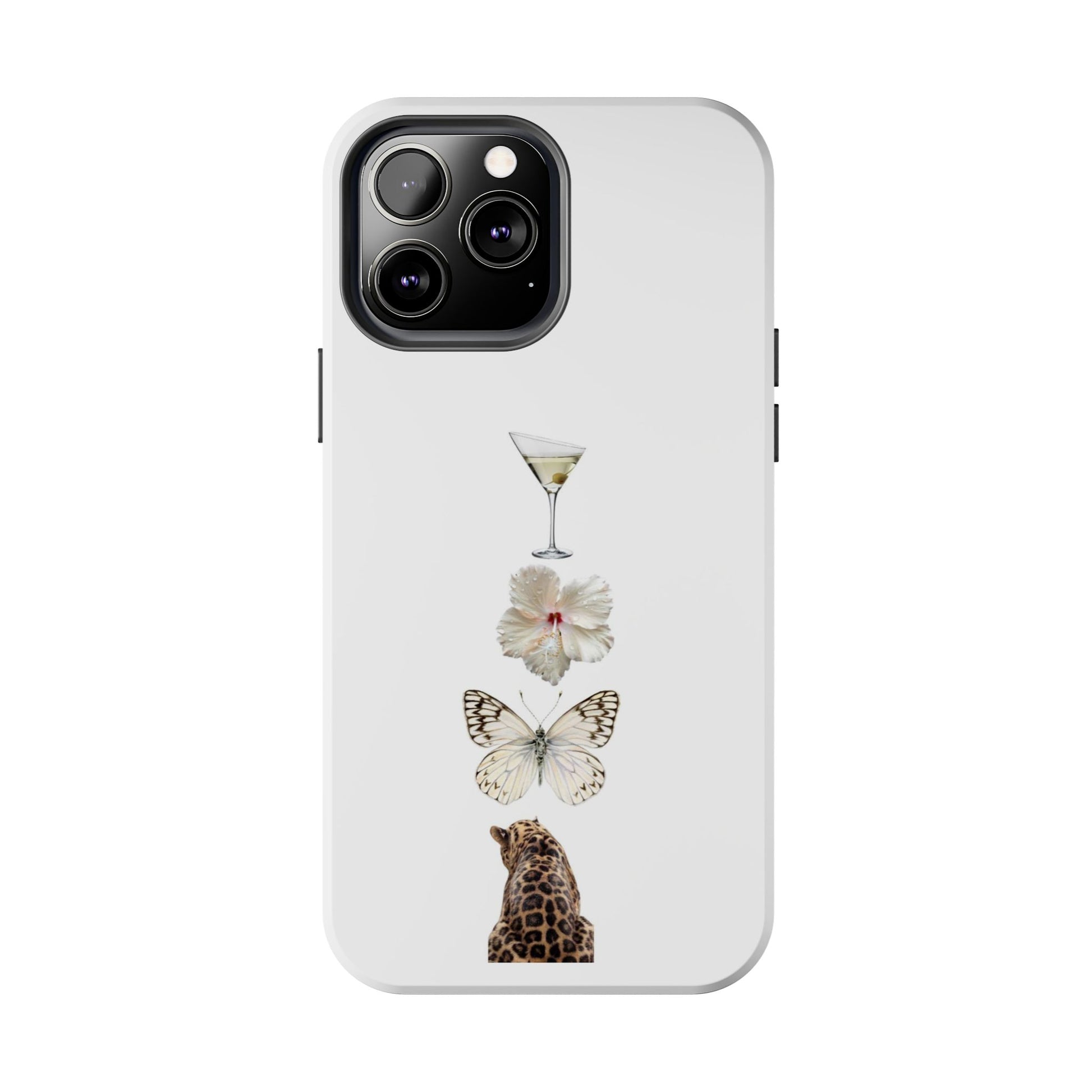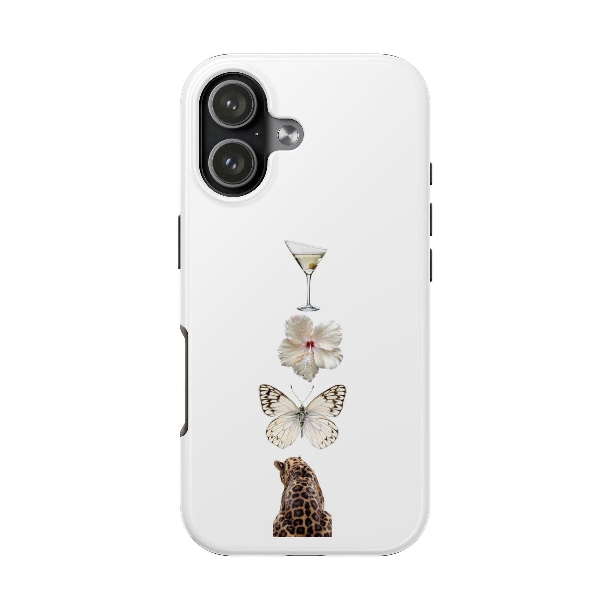 Elegant Nature-Inspired Tough Phone Case with Martini, Flower, Butterfly, and Leopard Design