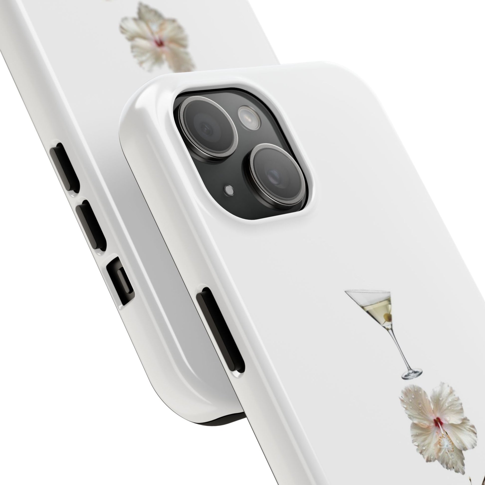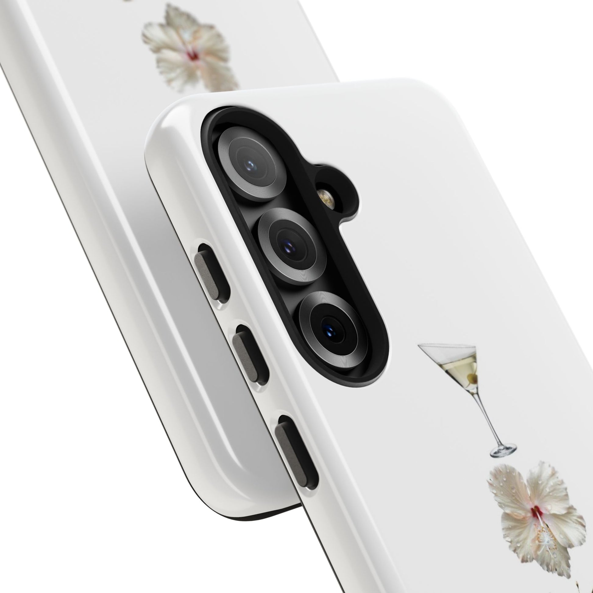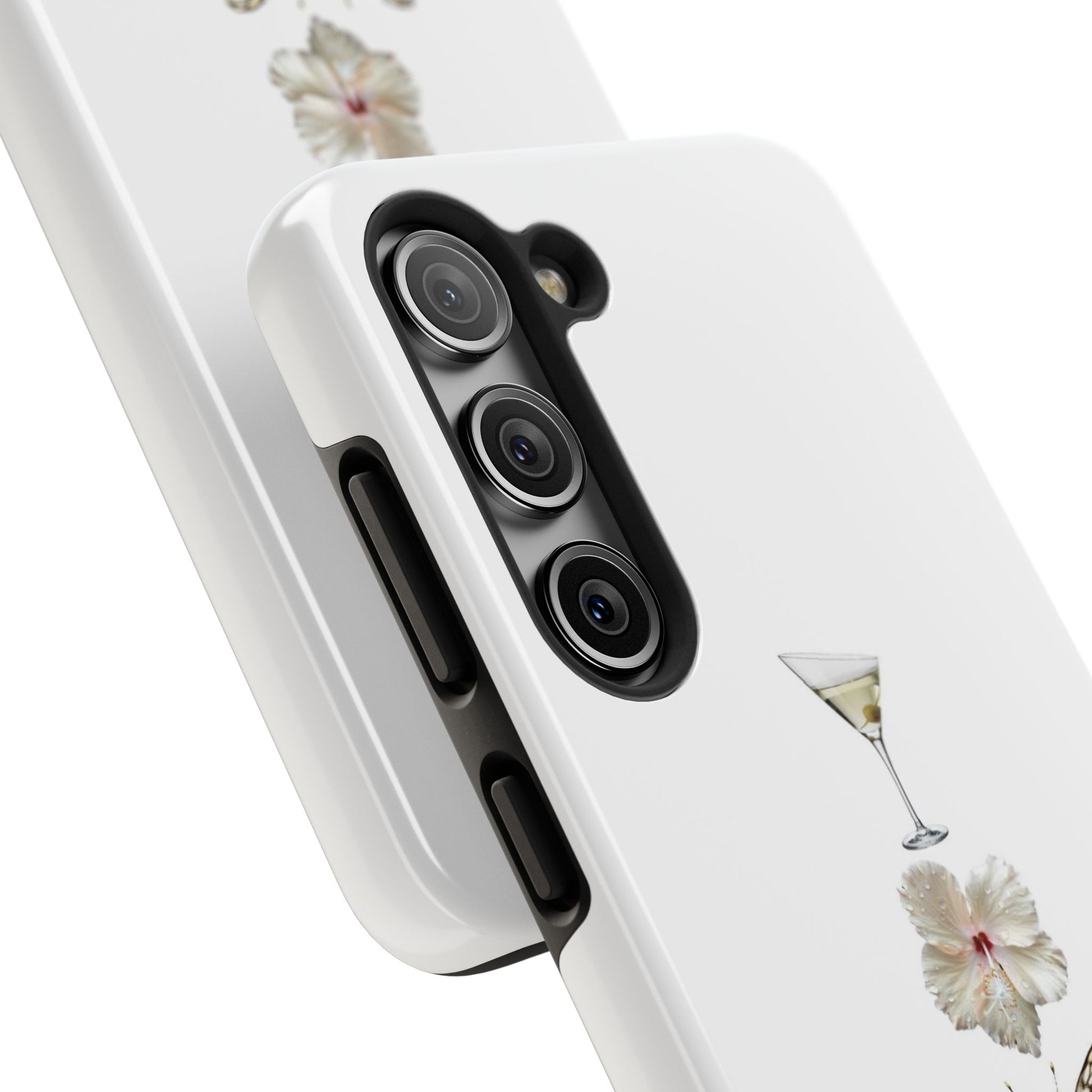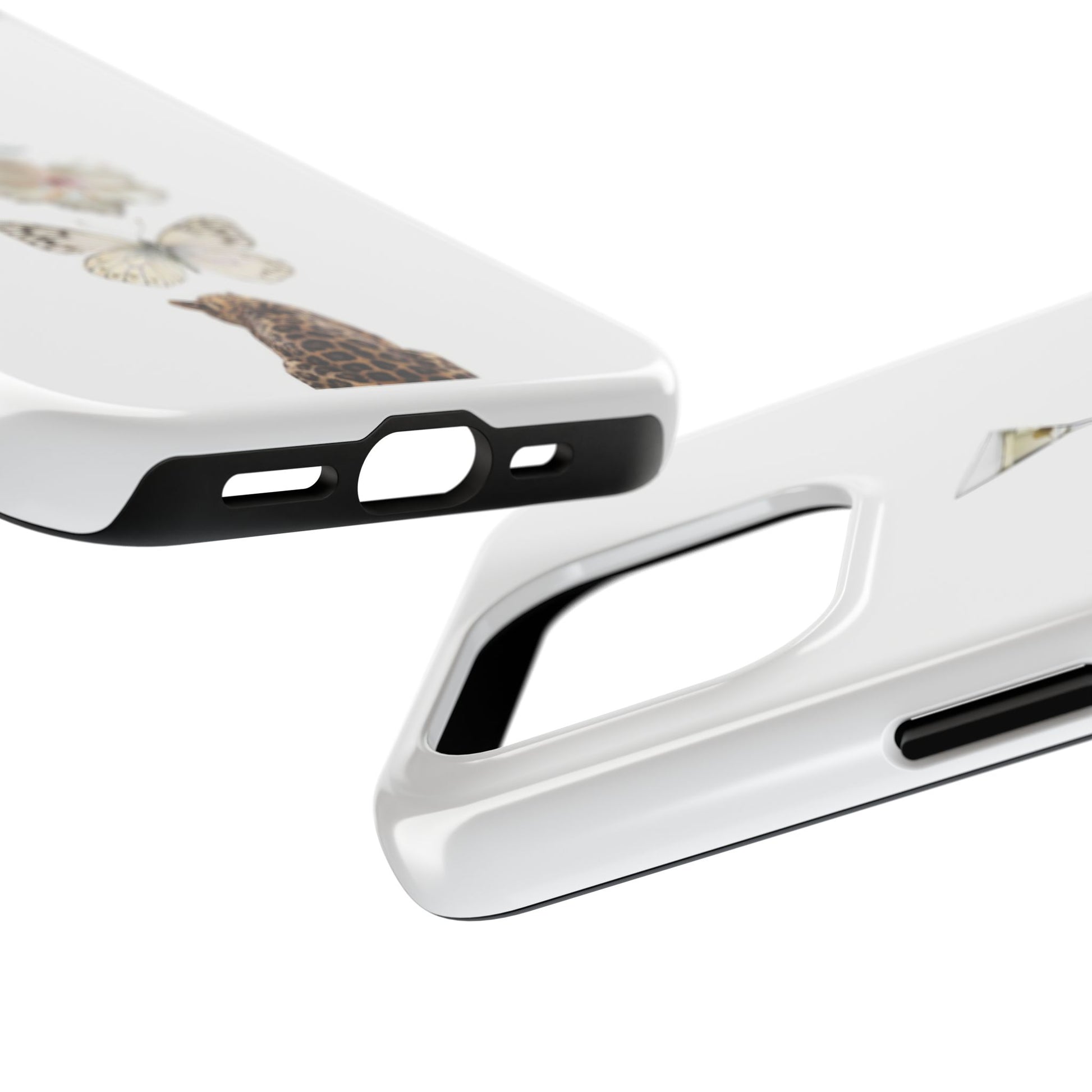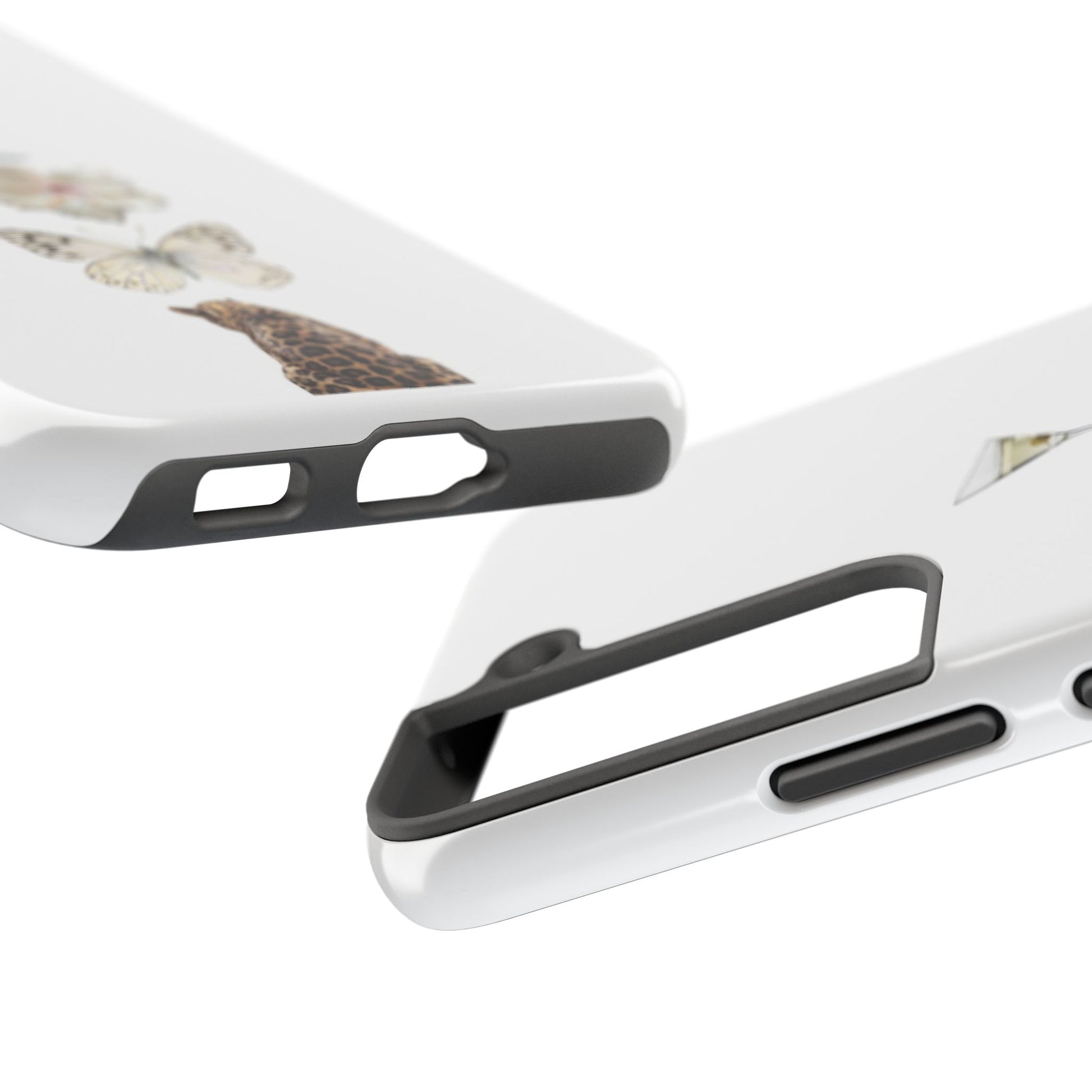 Elegant Nature-Inspired Tough Phone Case with Martini, Flower, Butterfly, and Leopard Design
