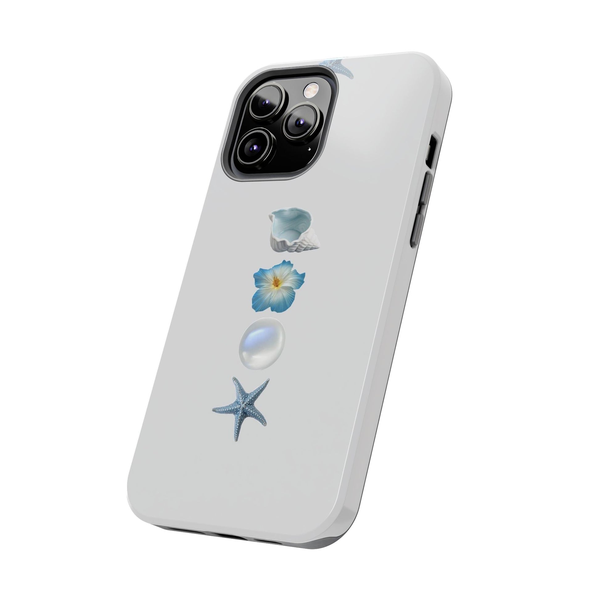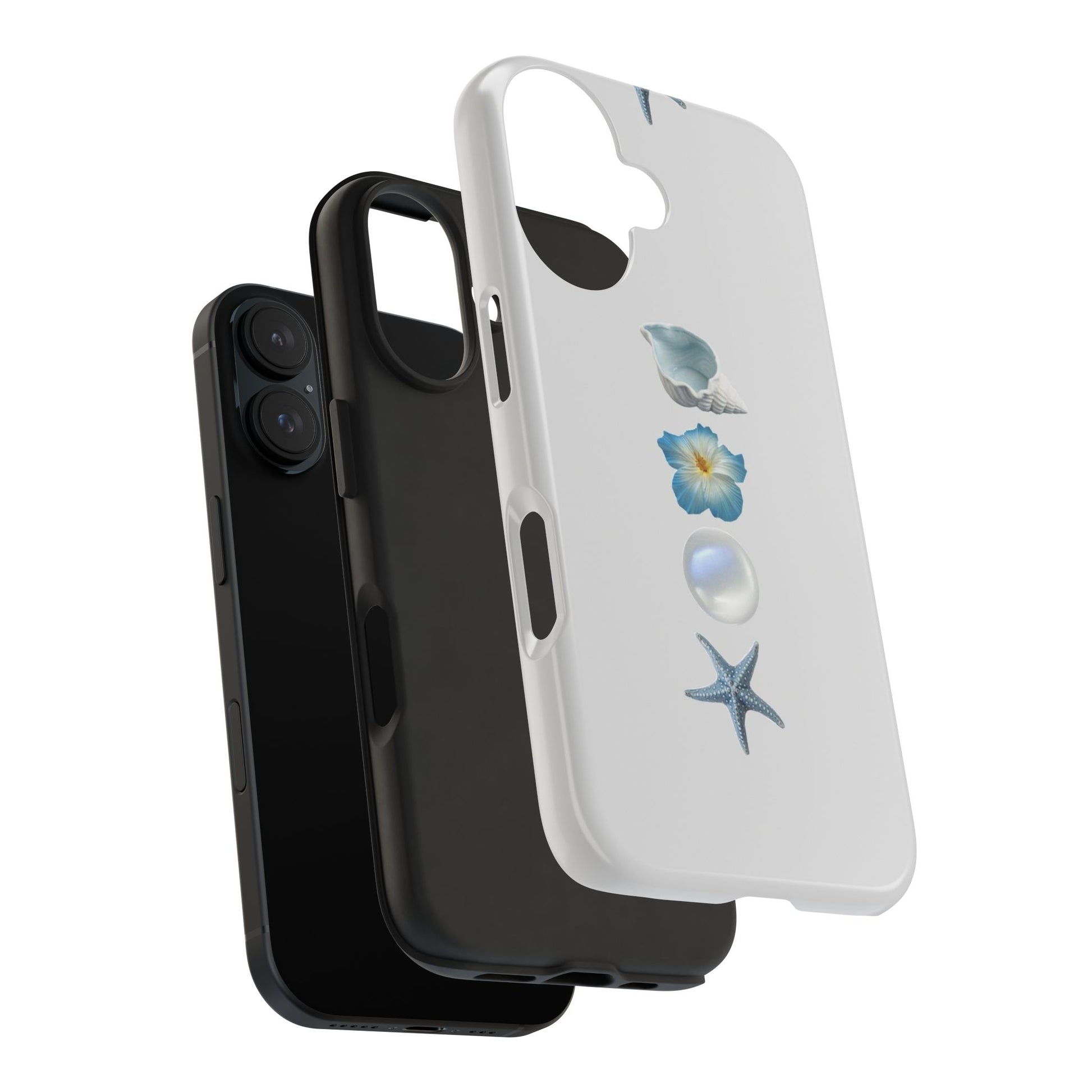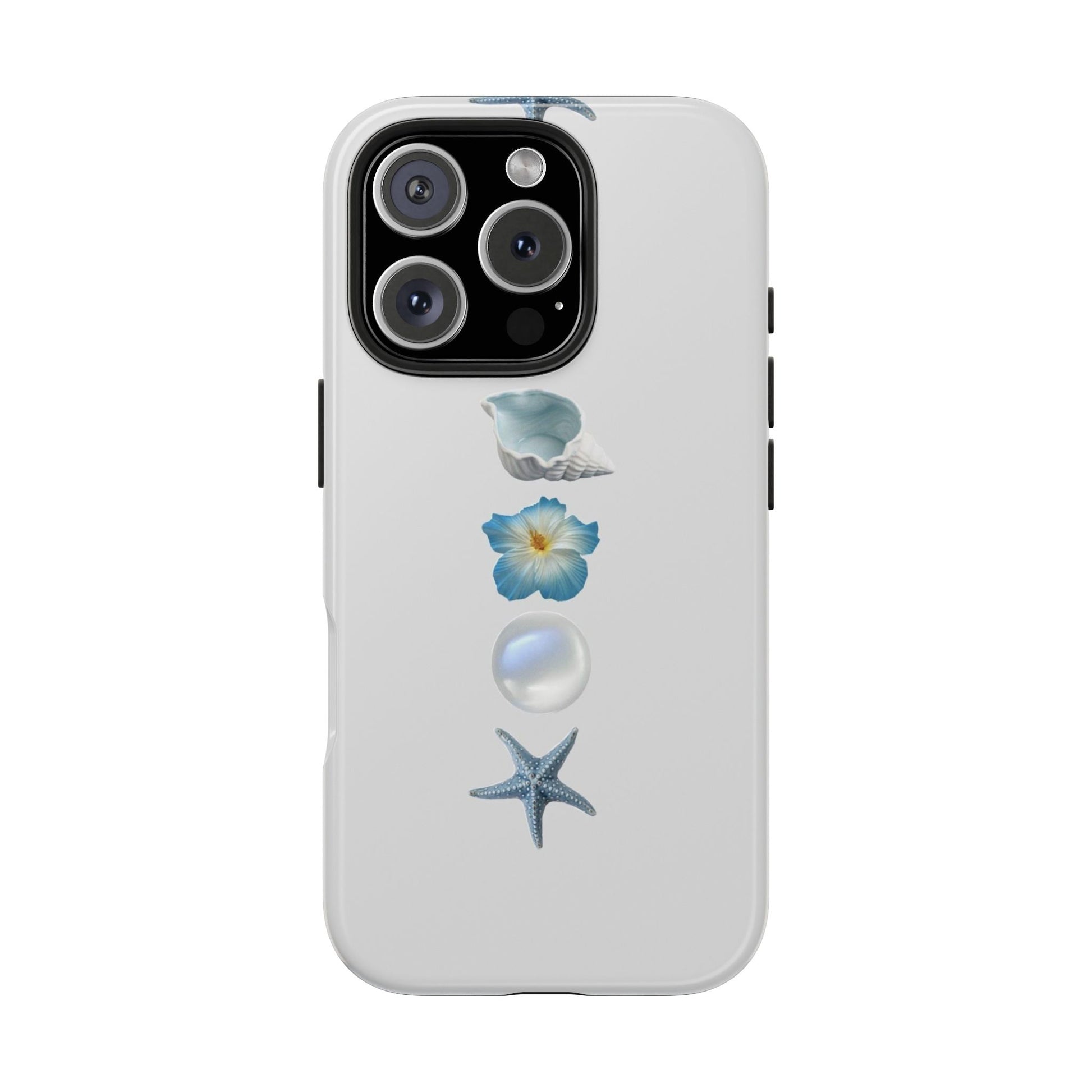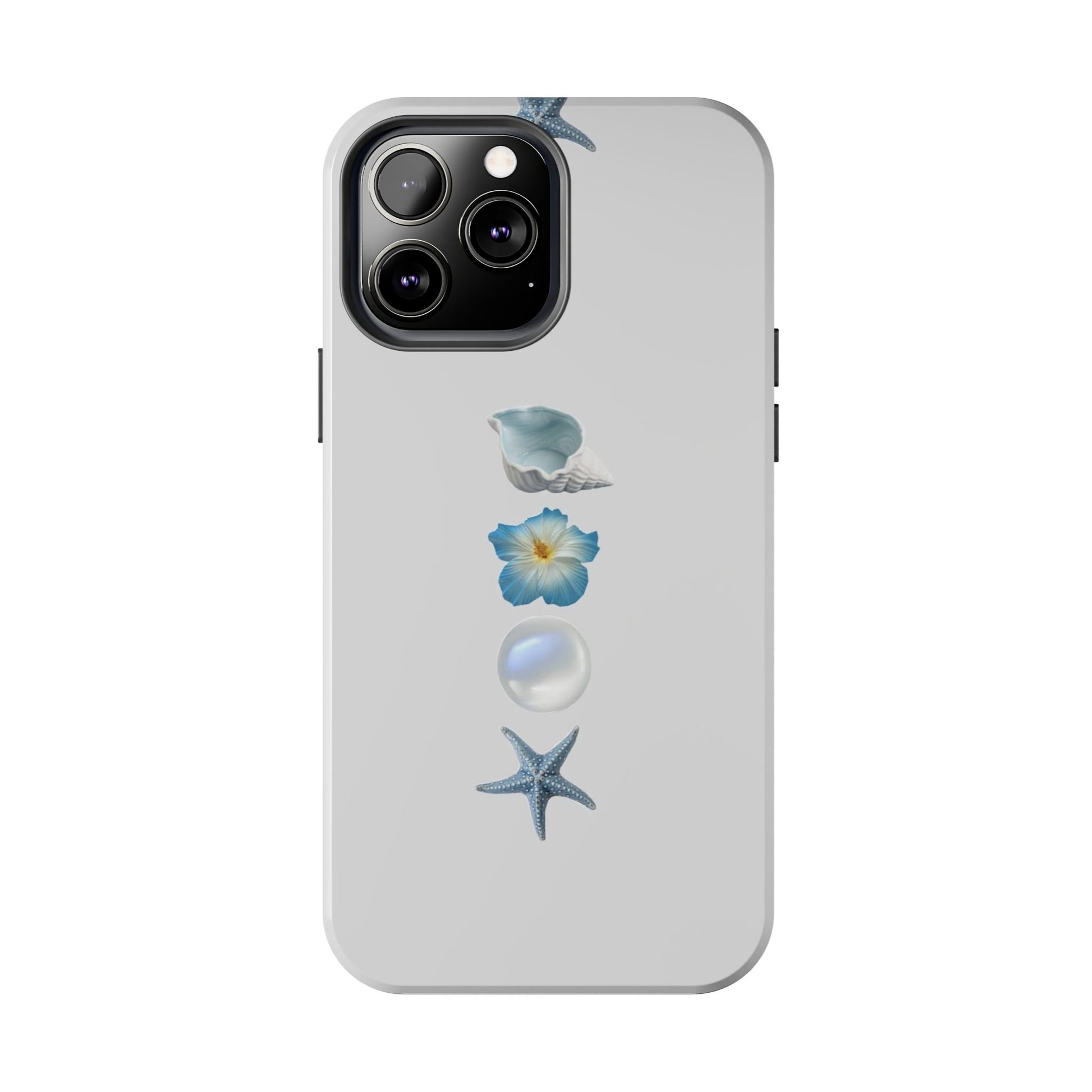 Ocean-Inspired Tough Phone Cases - Coastal Design with Shells and Pearls