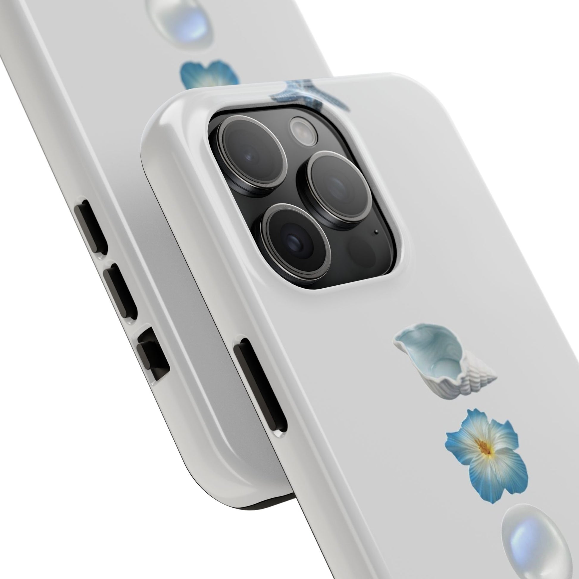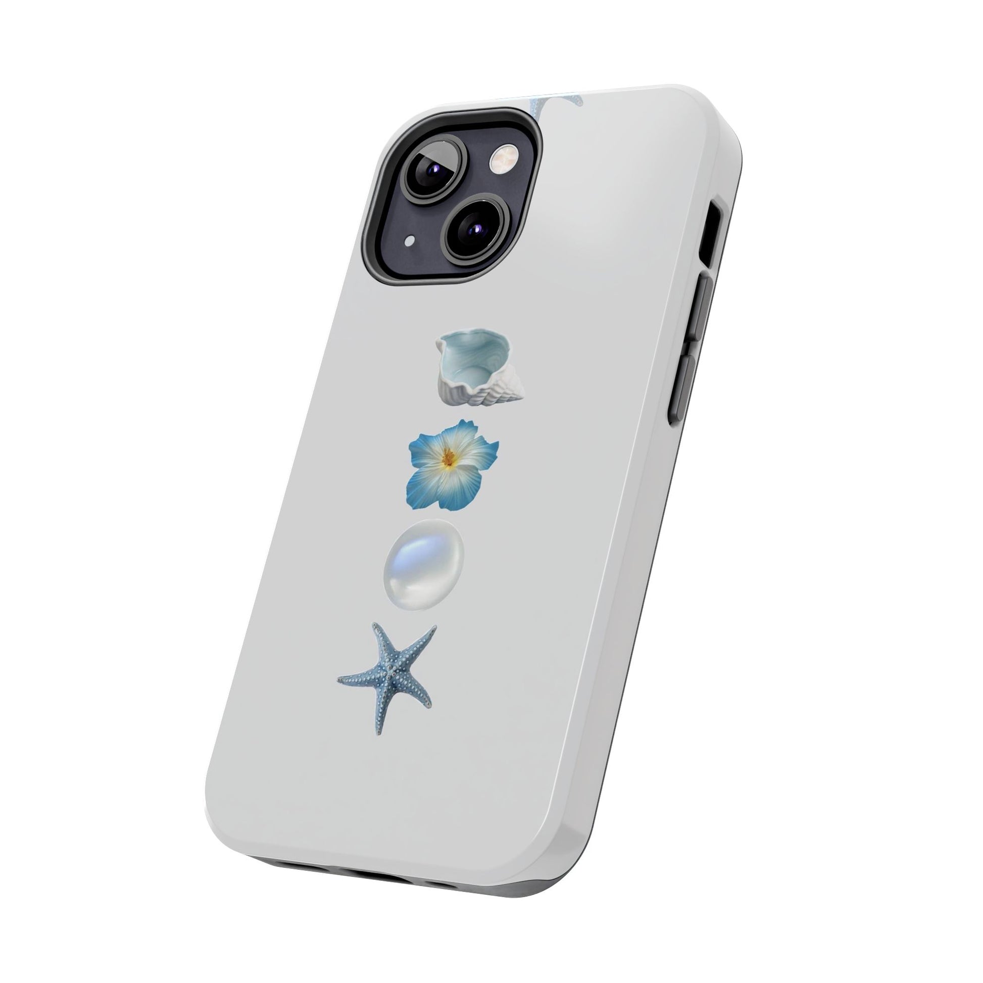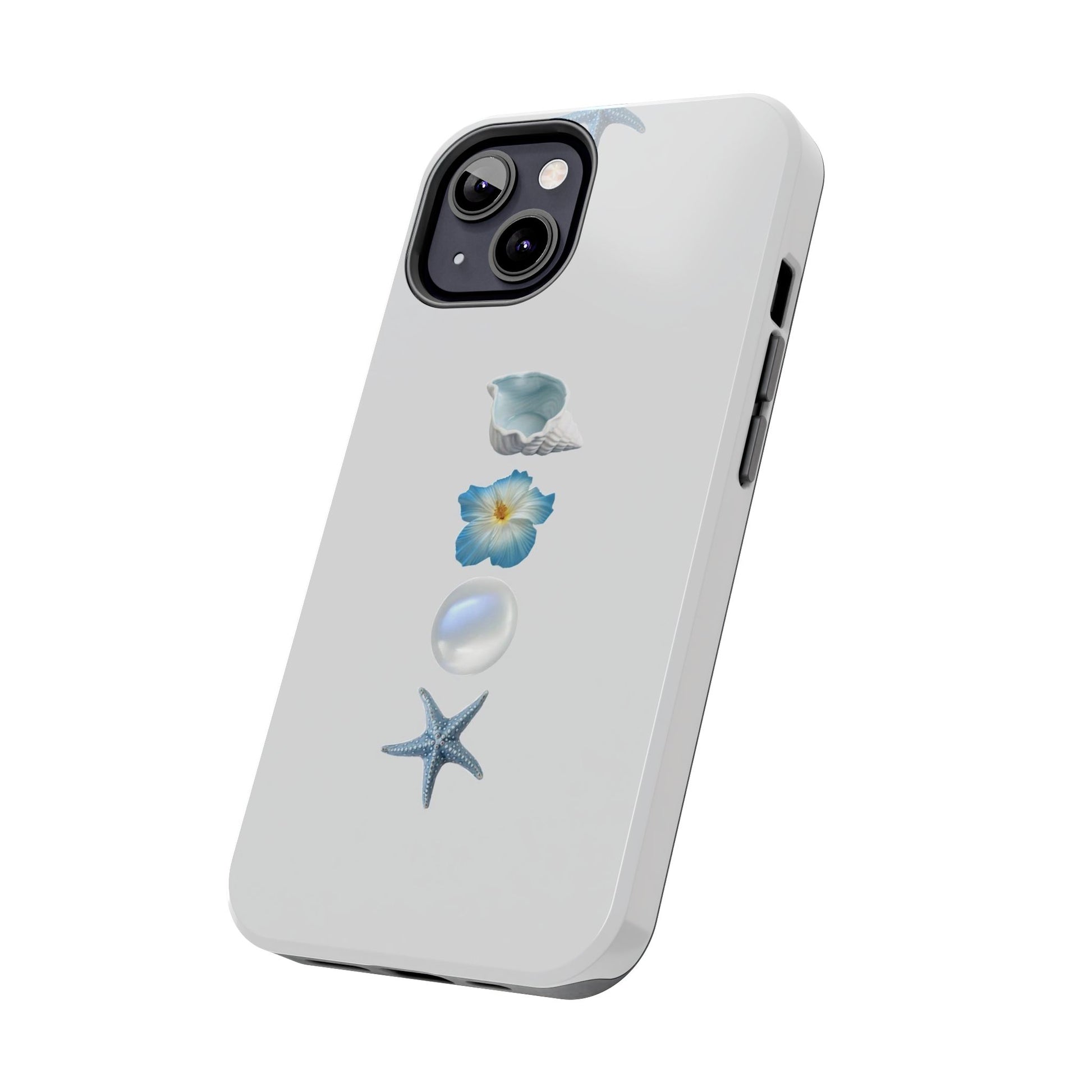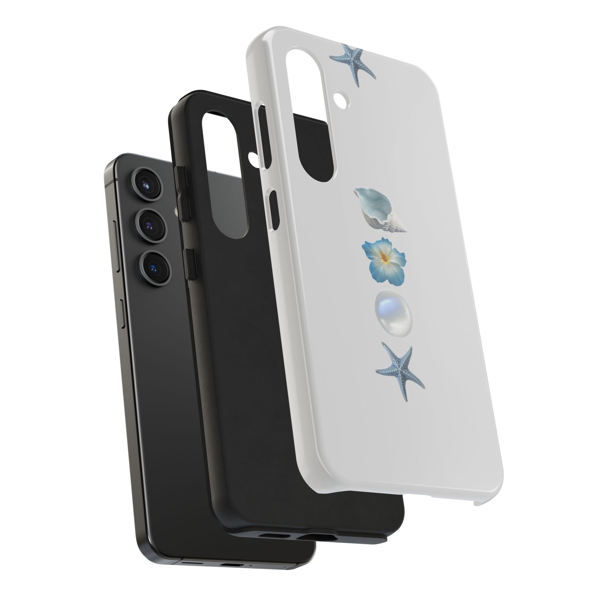 Ocean-Inspired Tough Phone Cases - Coastal Design with Shells and Pearls