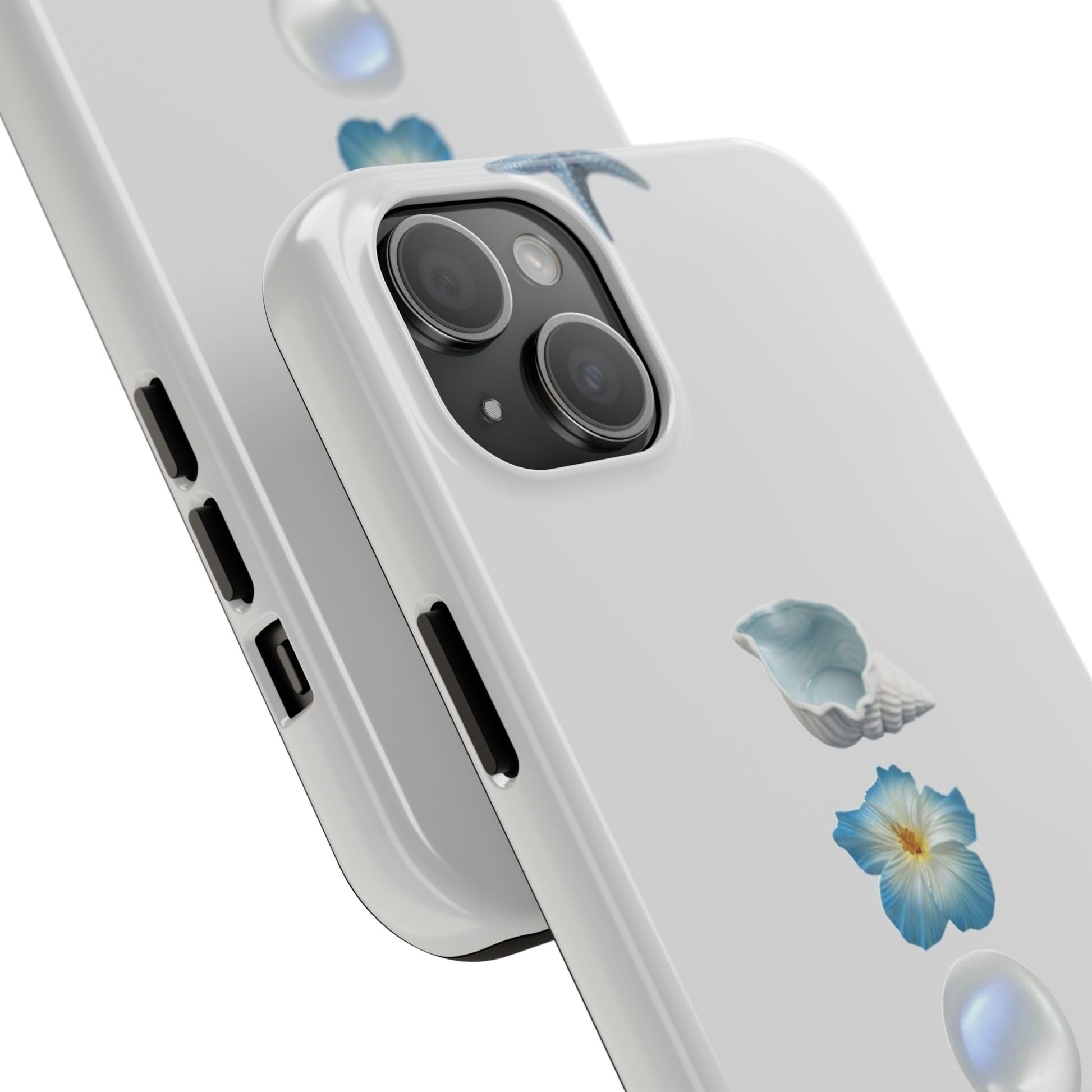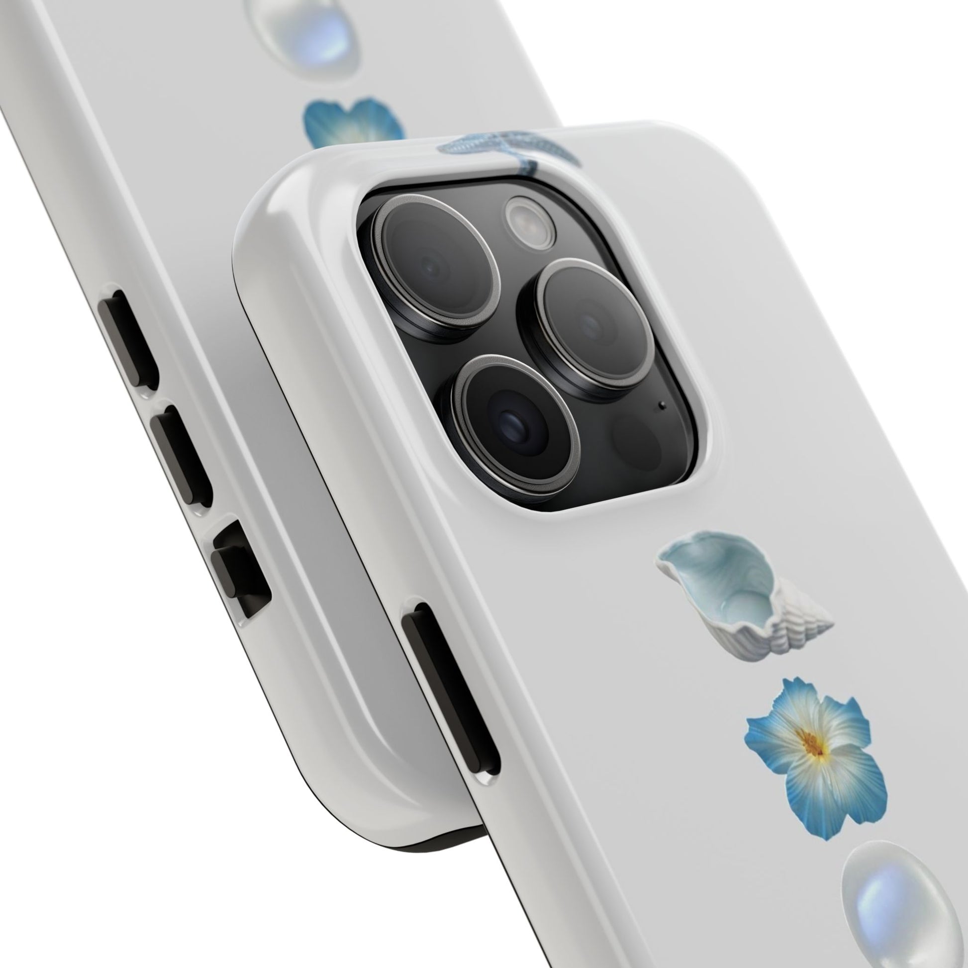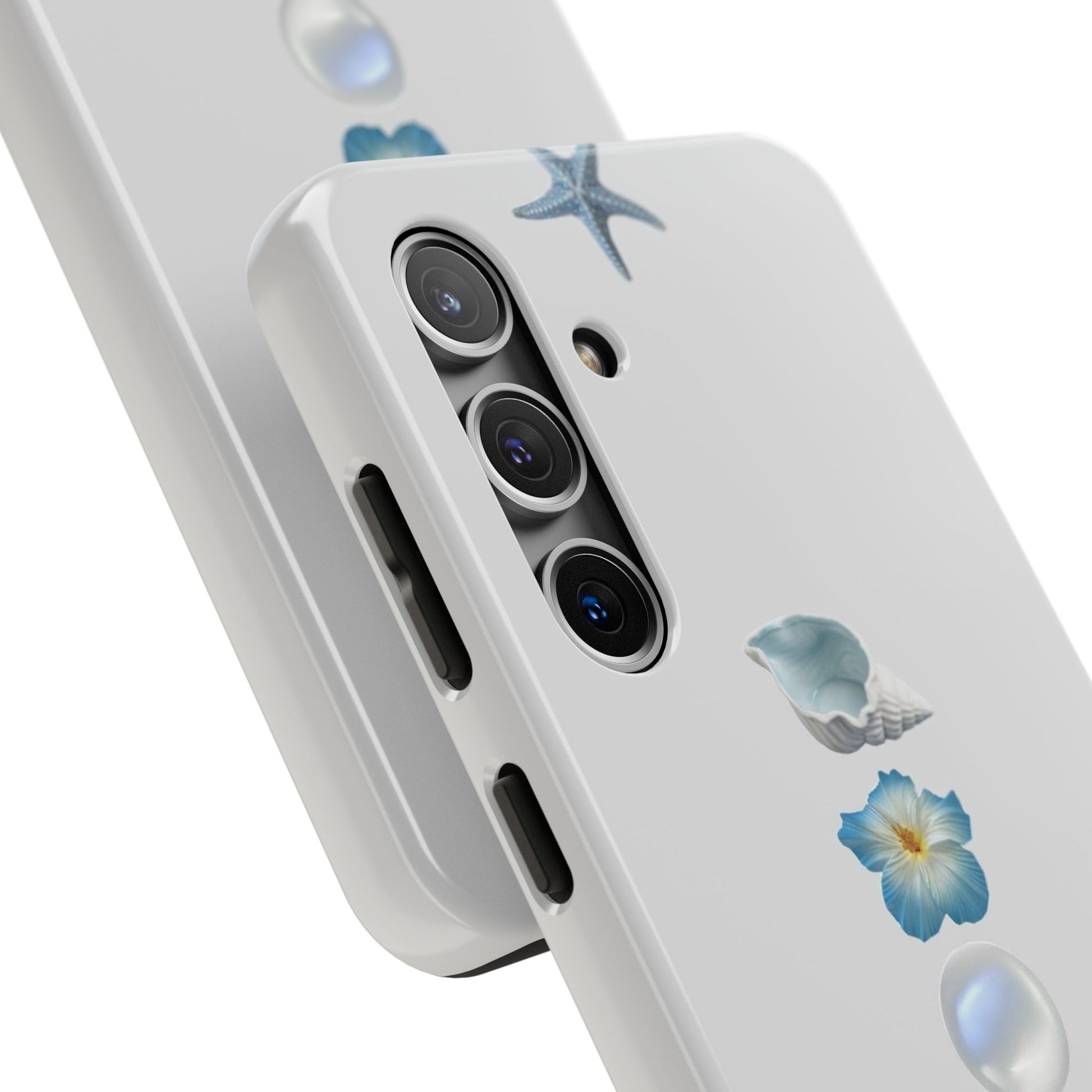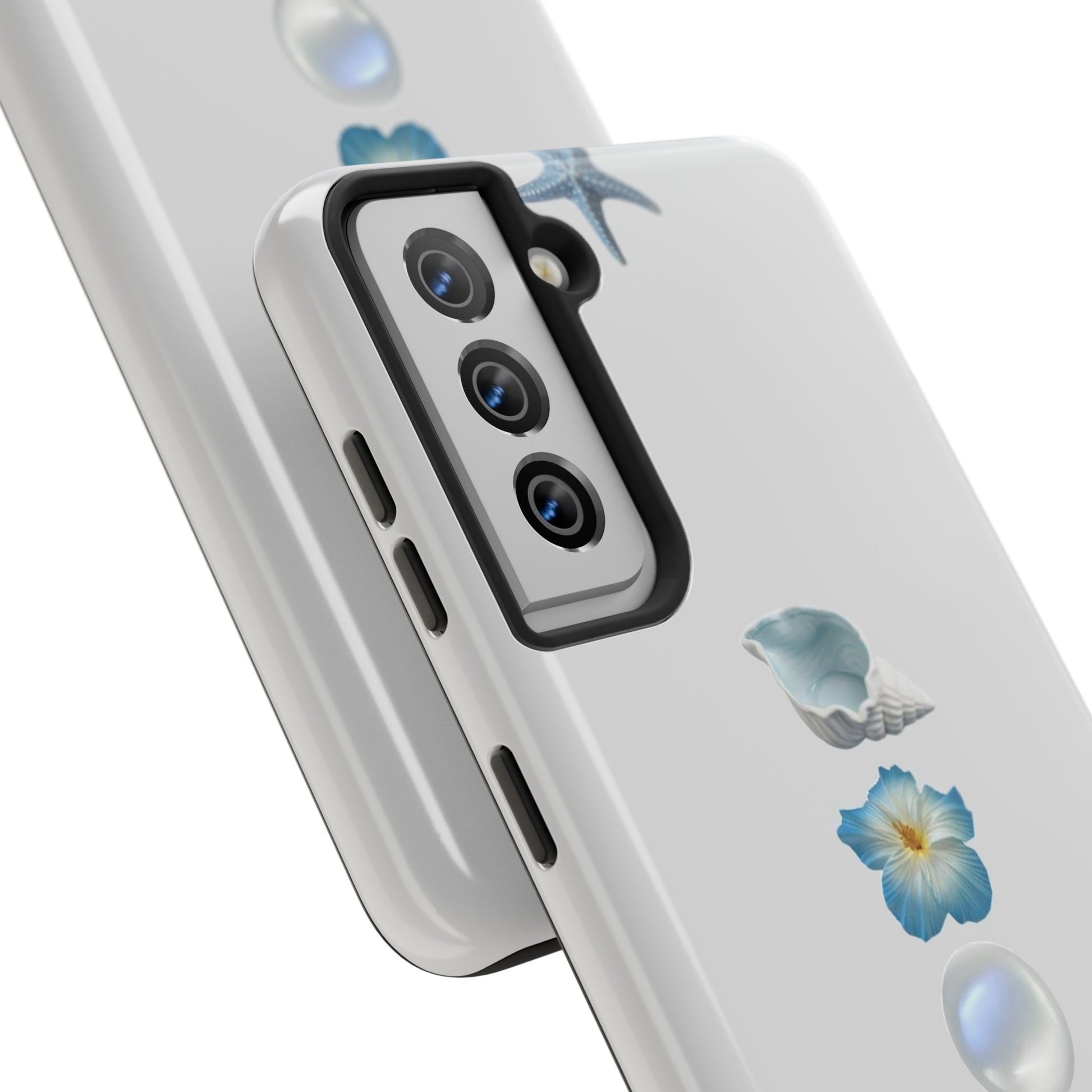 Ocean-Inspired Tough Phone Cases - Coastal Design with Shells and Pearls