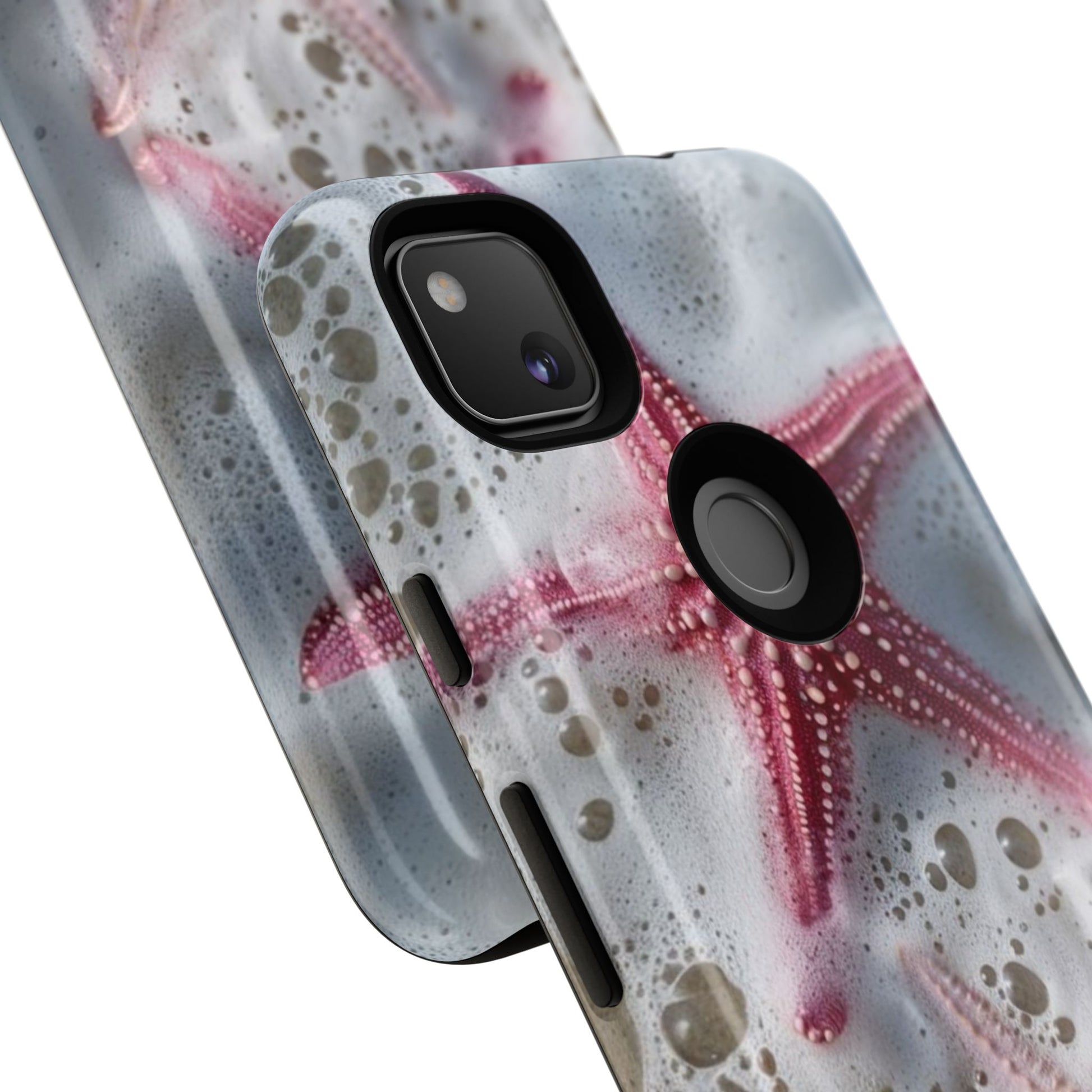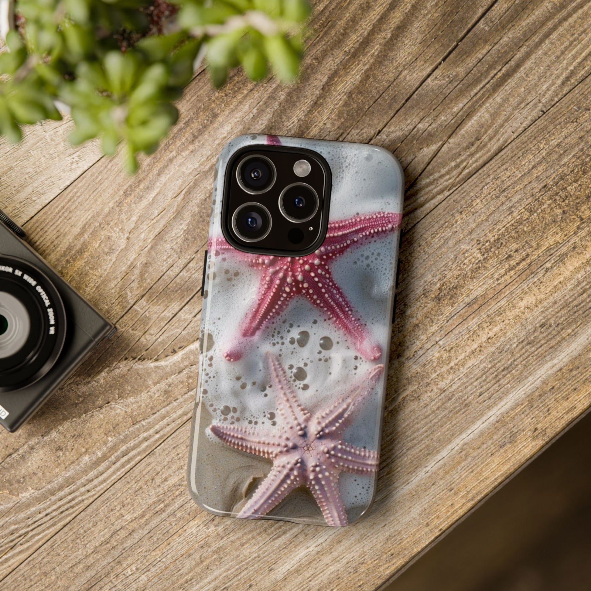 This ocean-inspired tough phone case features a stunning starfish design in a combination of matte and glossy finishes. It offers excellent durability and impact resistance, making it perfect for those who need extra protection for their phone. Ideal for adults looking to add a touch of the sea to their everyday life or as a unique gift for beach lovers. Perfect for summer, beach vacations, or anyone who appreciates marine life.