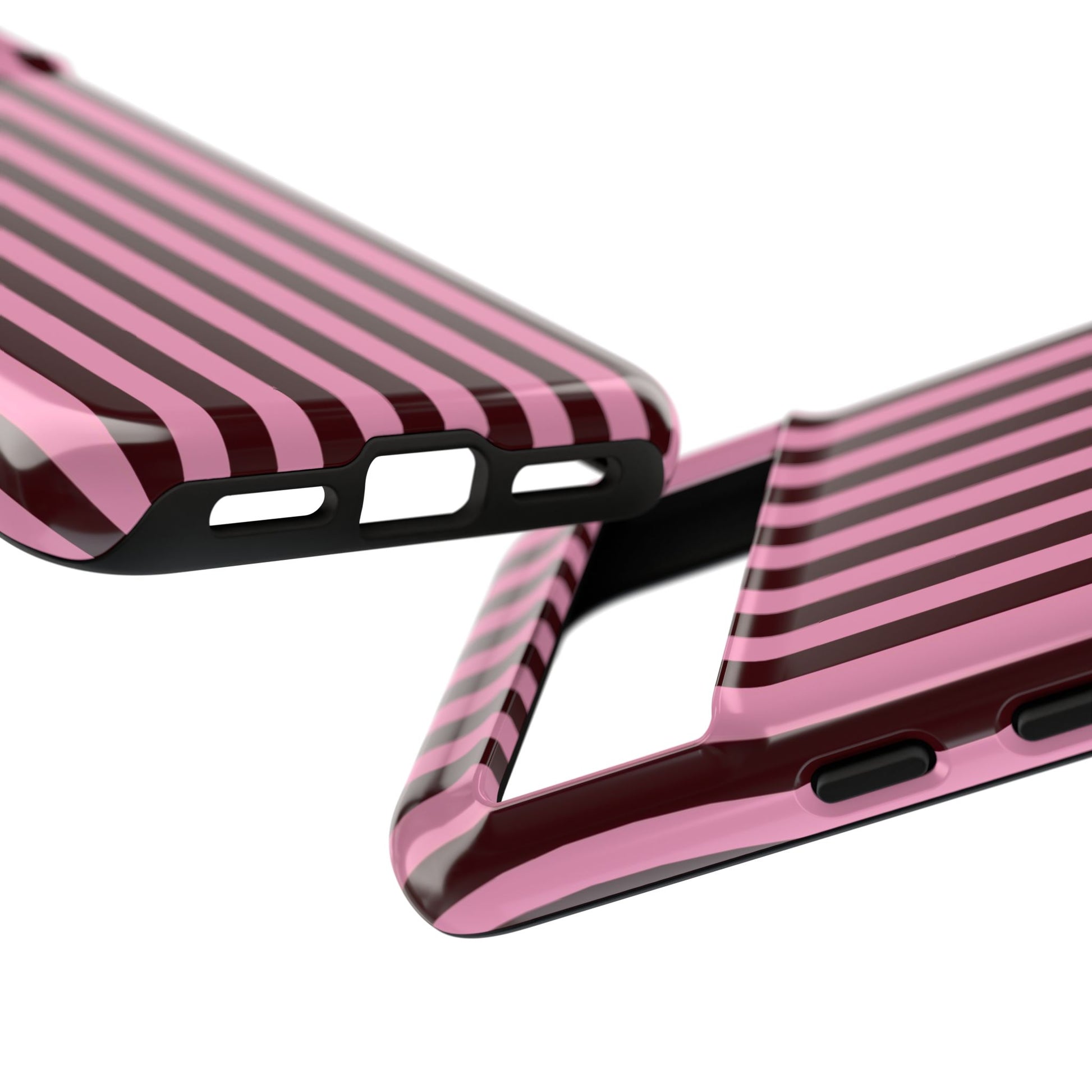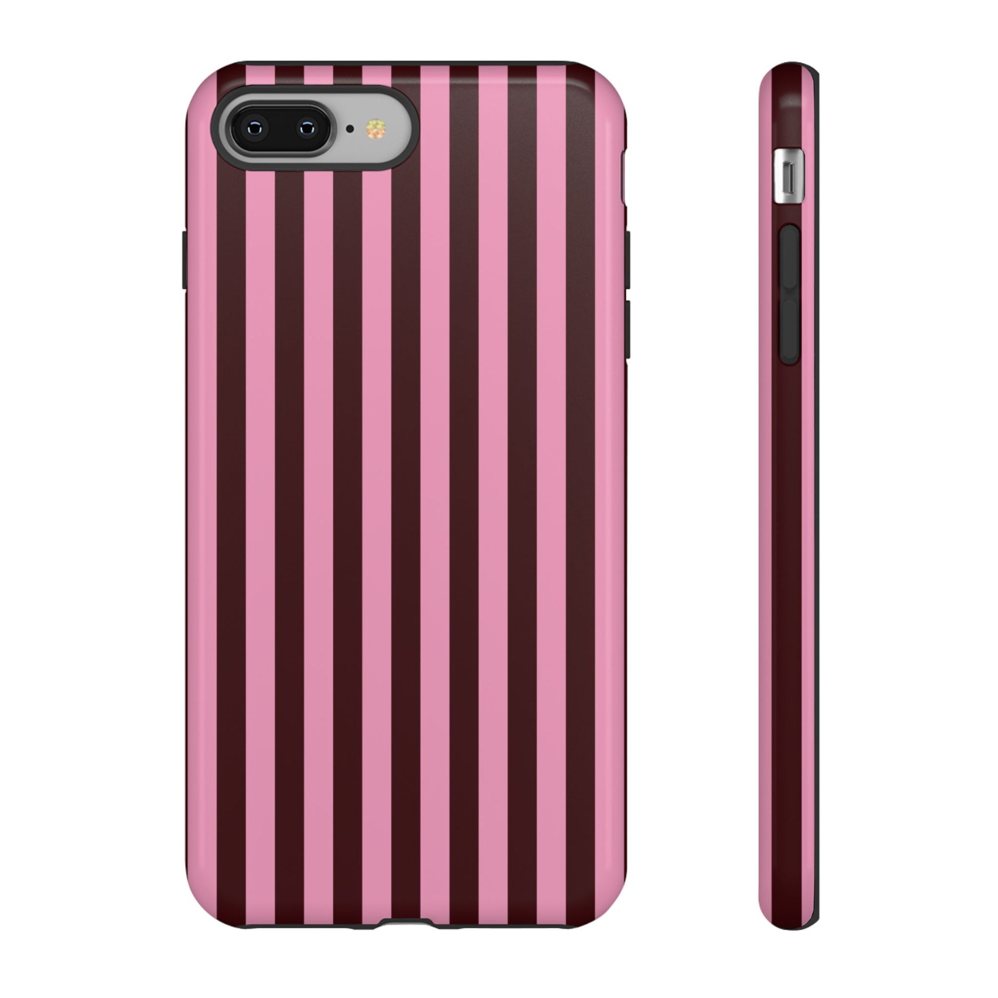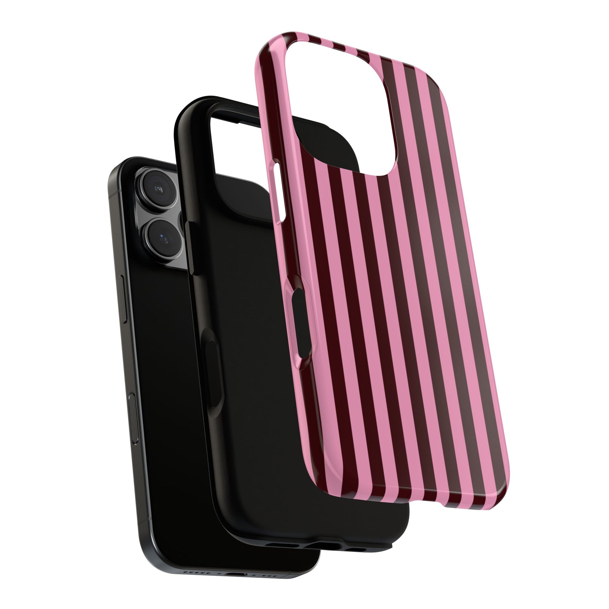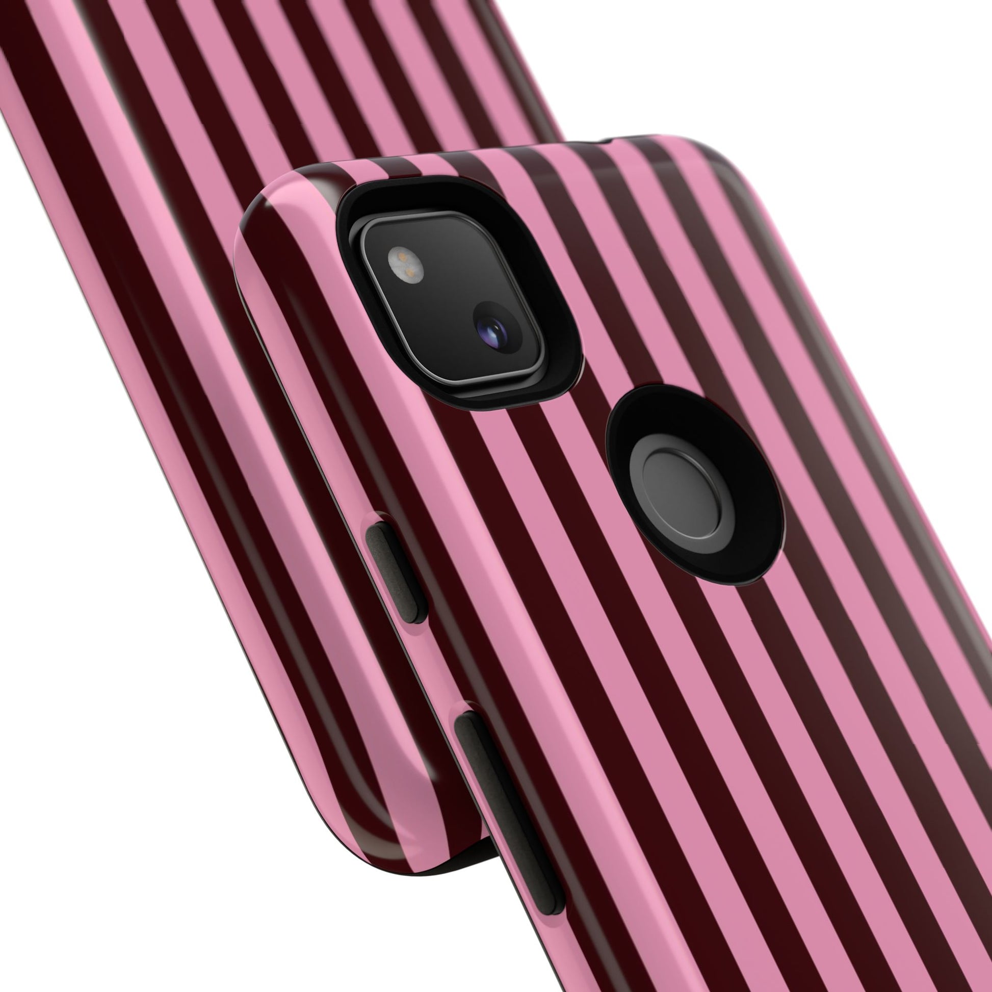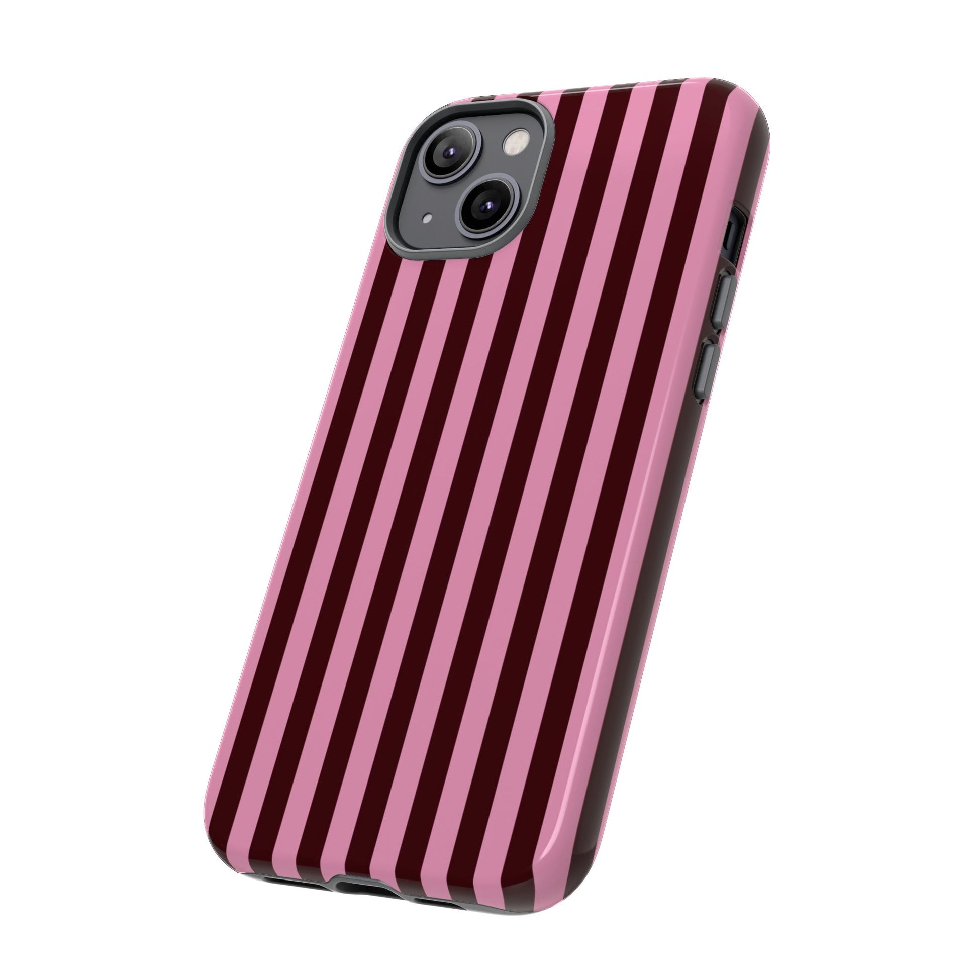 Striped Pink & Burgundy Tough Phone Case — Durable Vertical Stripe Protection