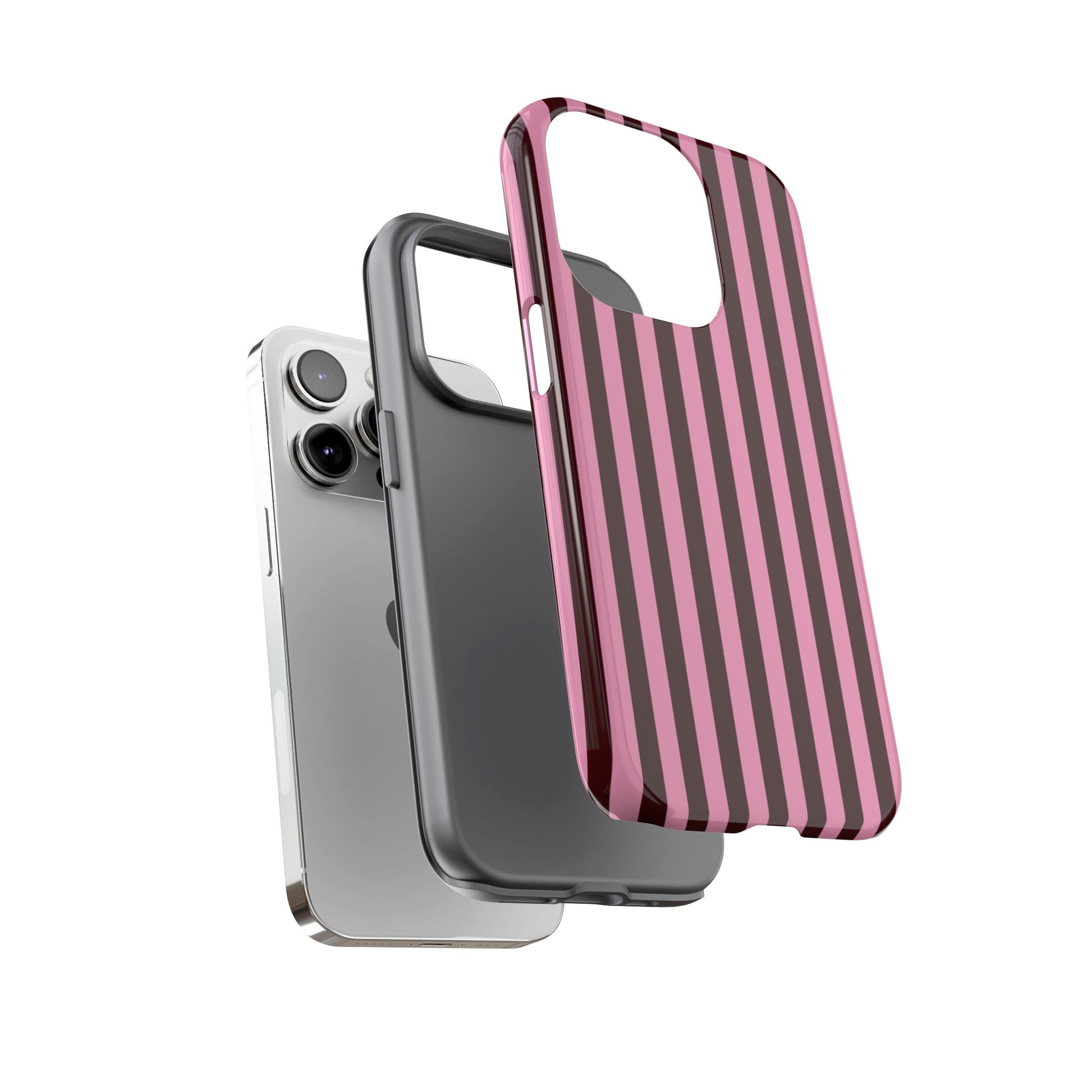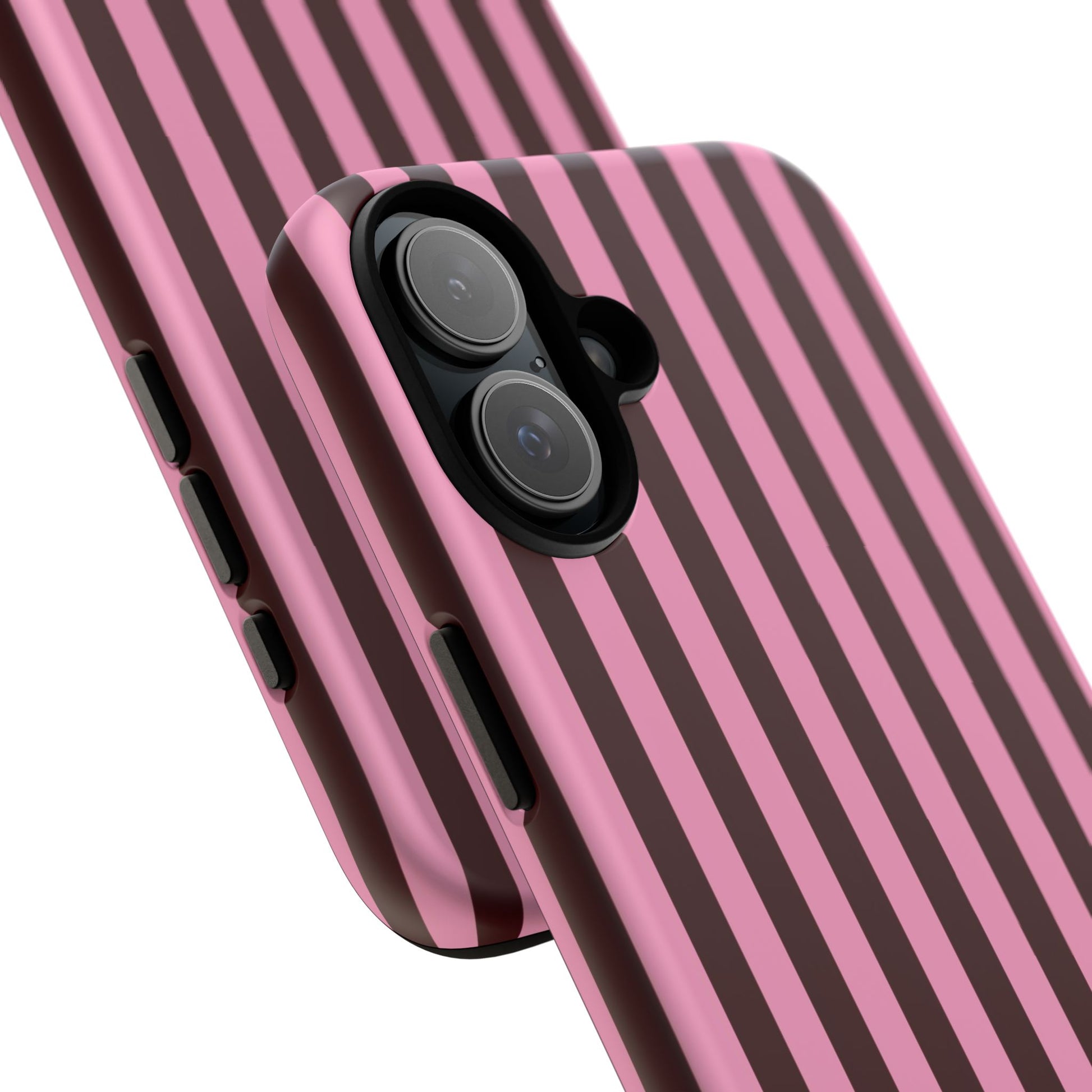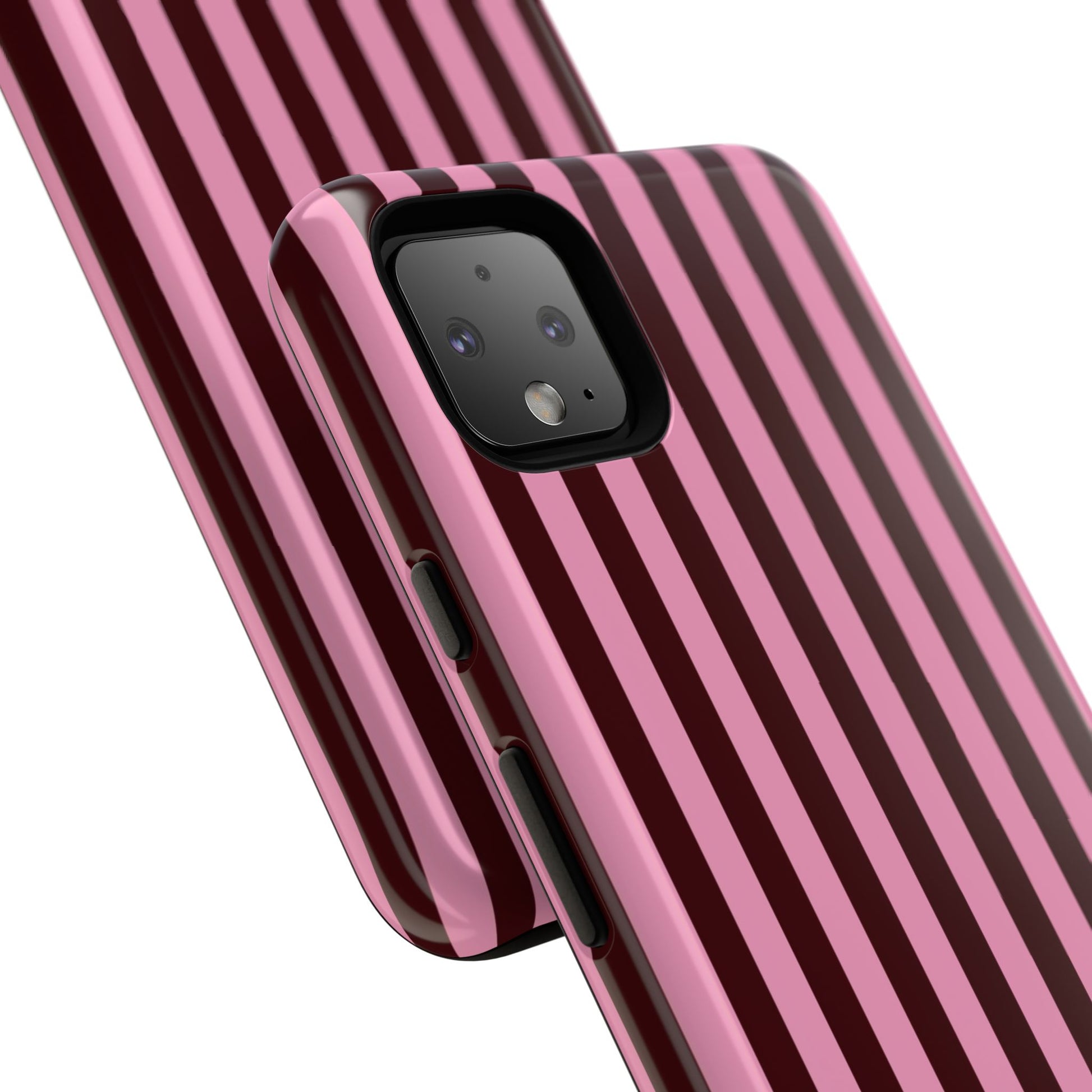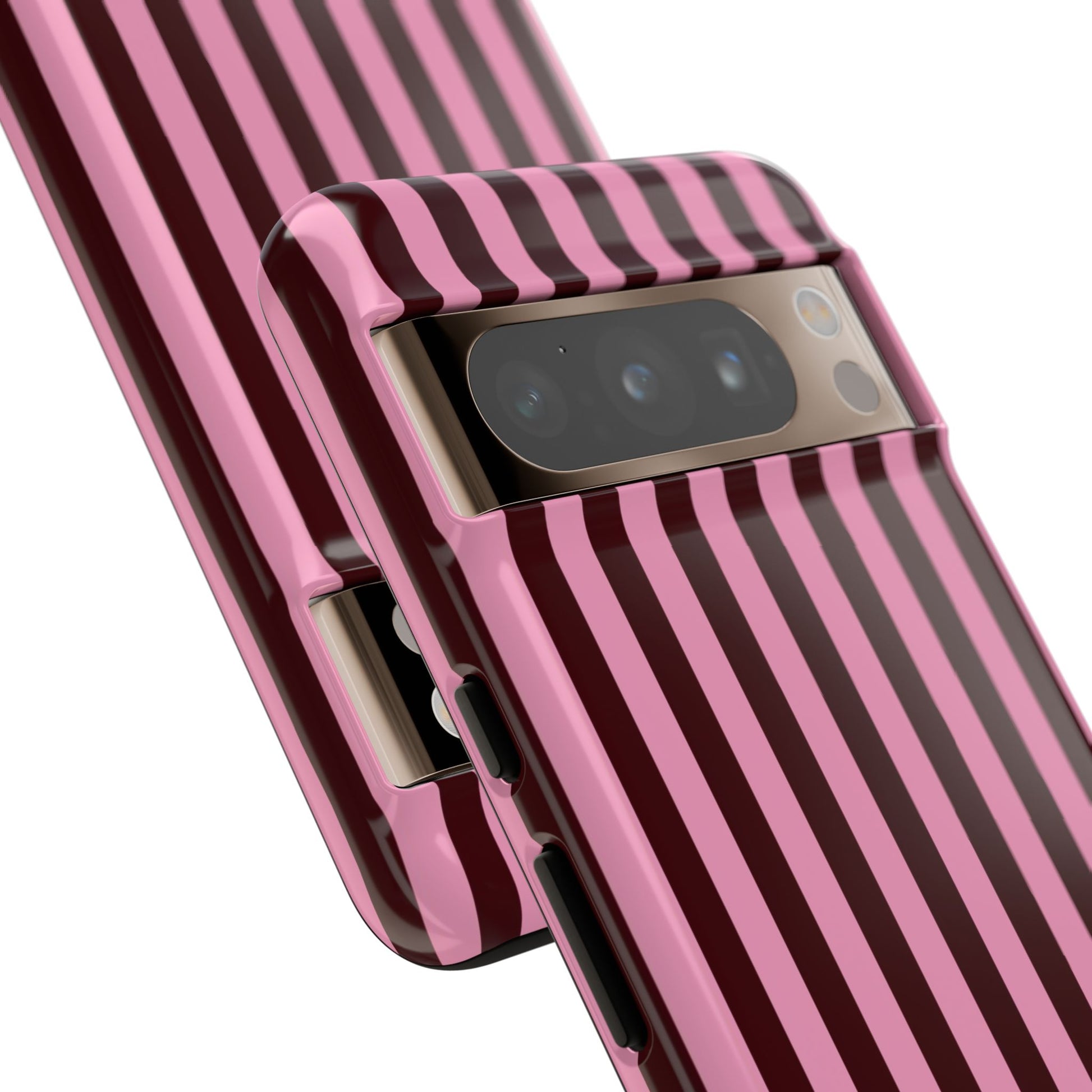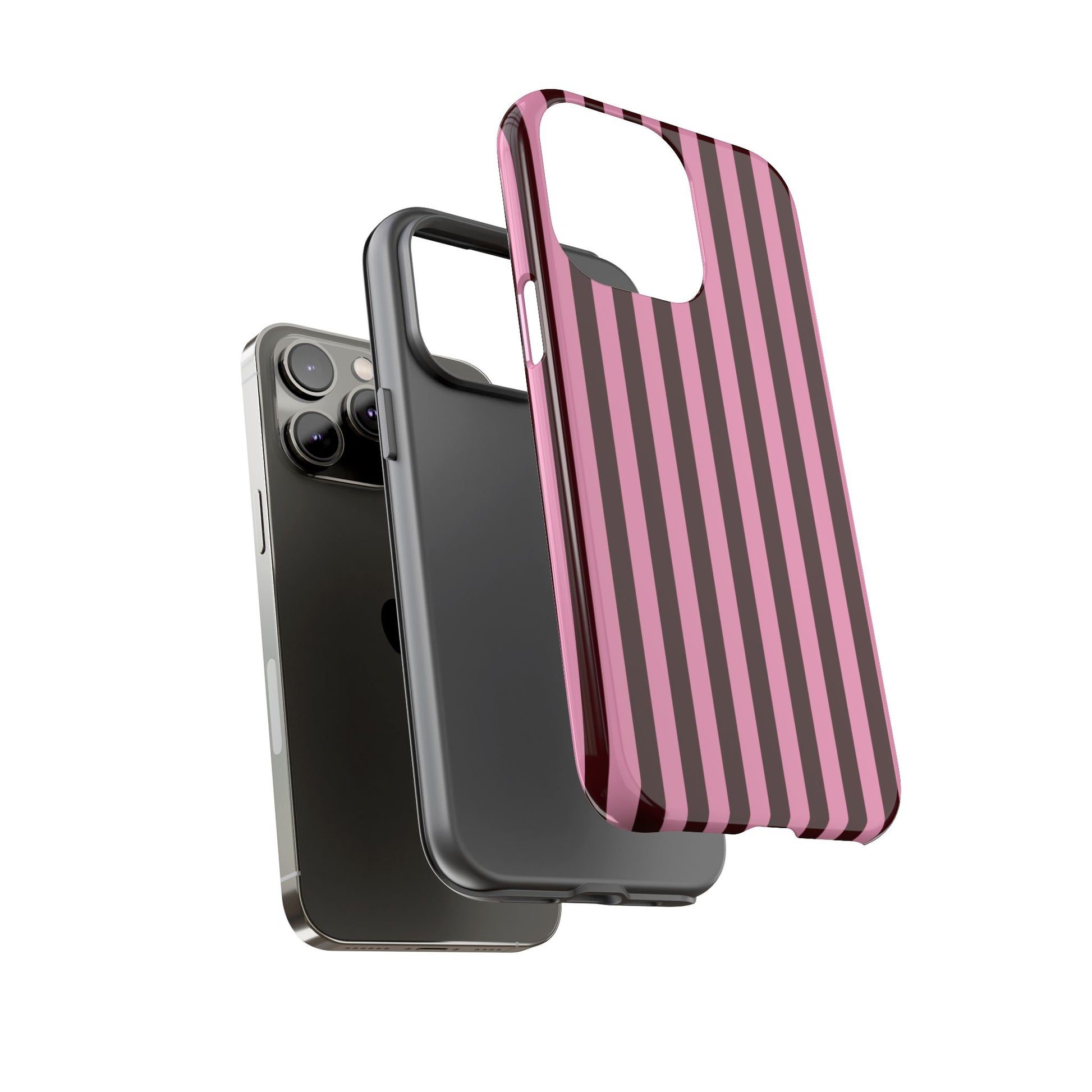 Striped Pink & Burgundy Tough Phone Case — Durable Vertical Stripe Protection