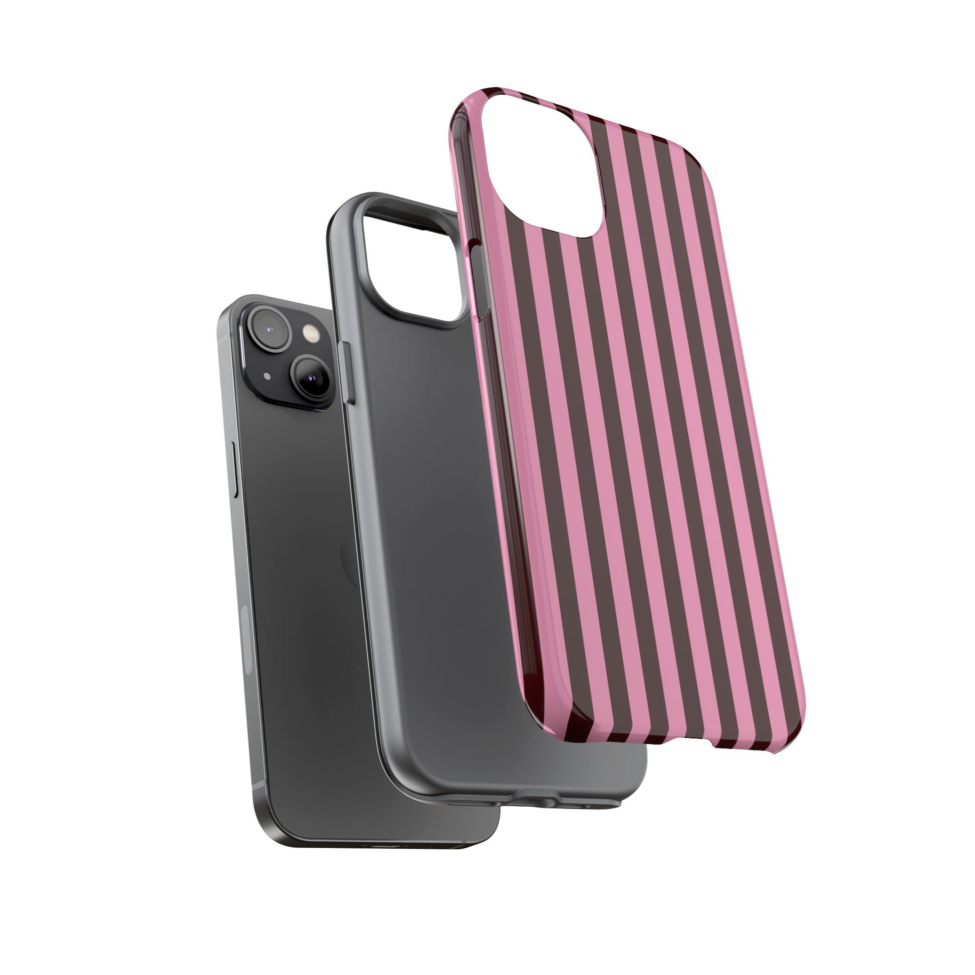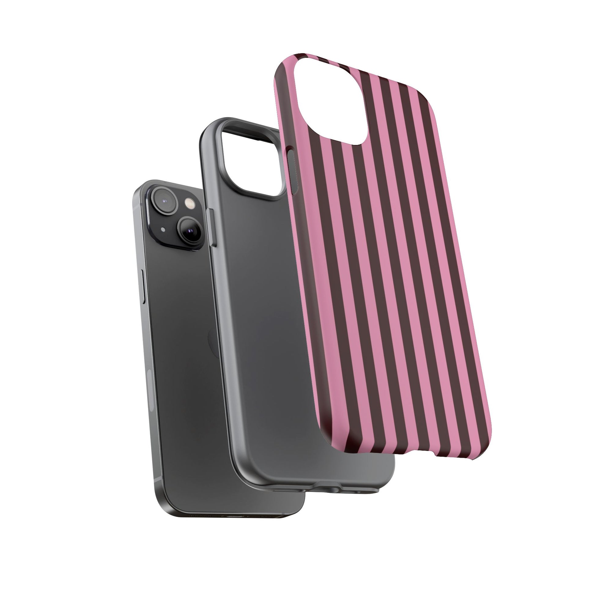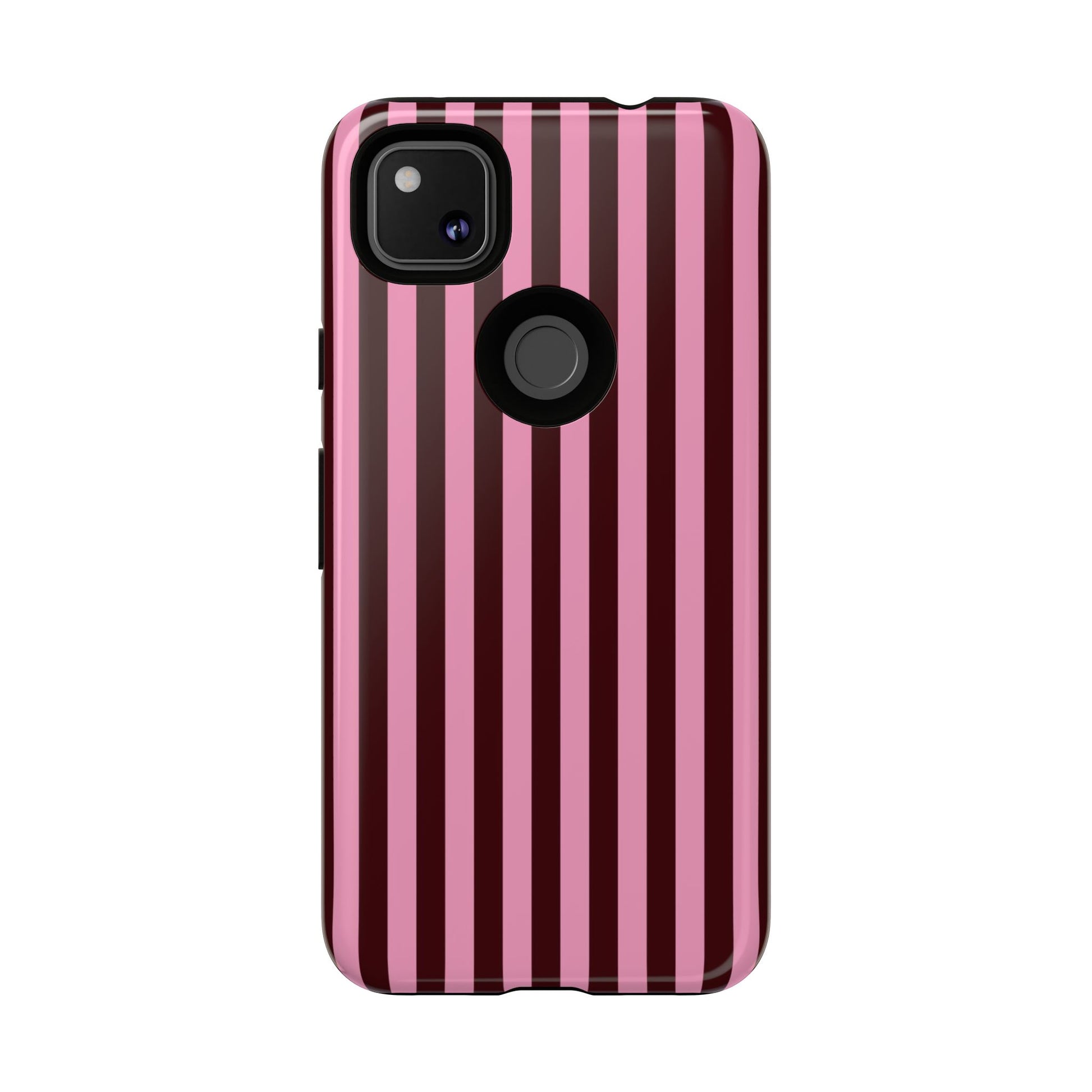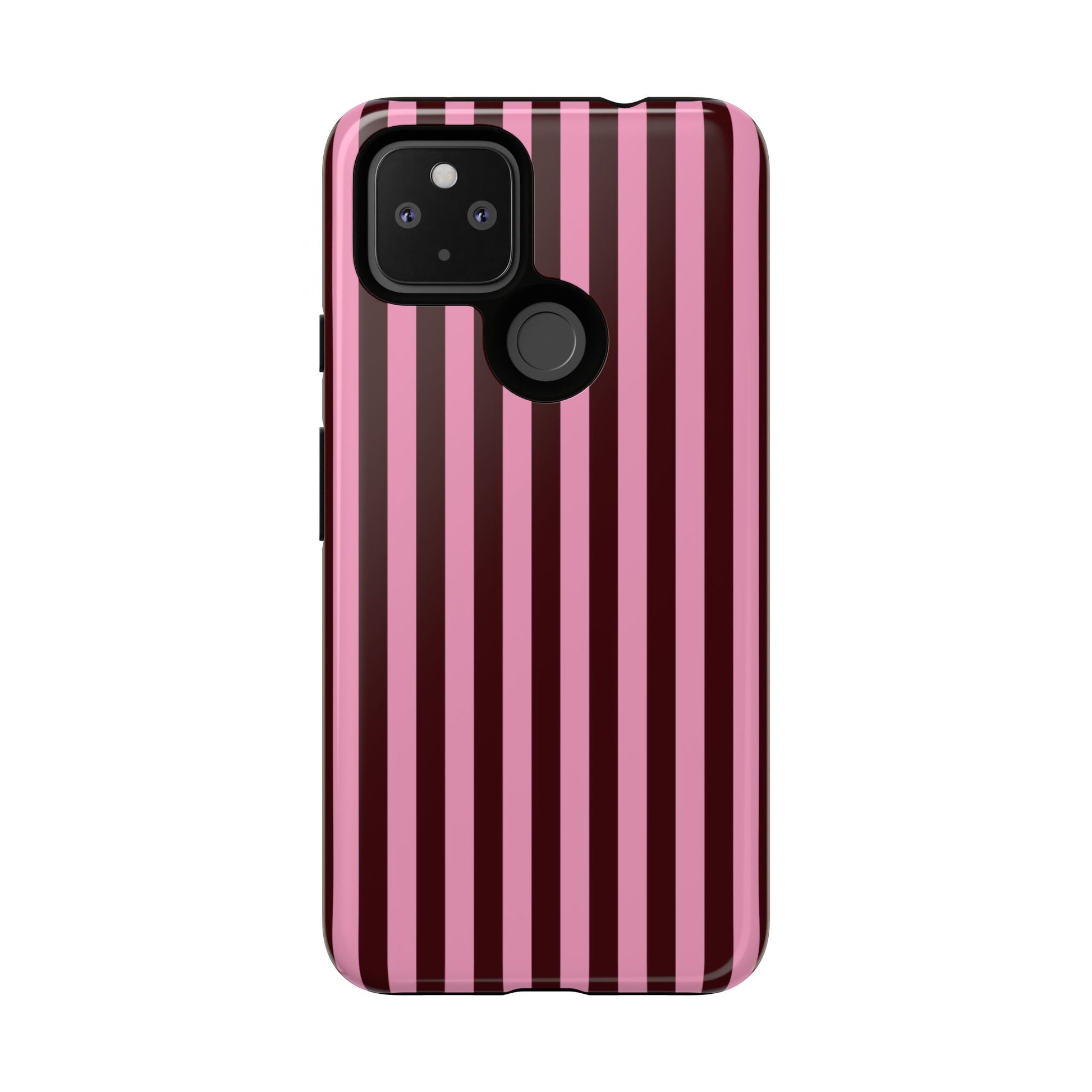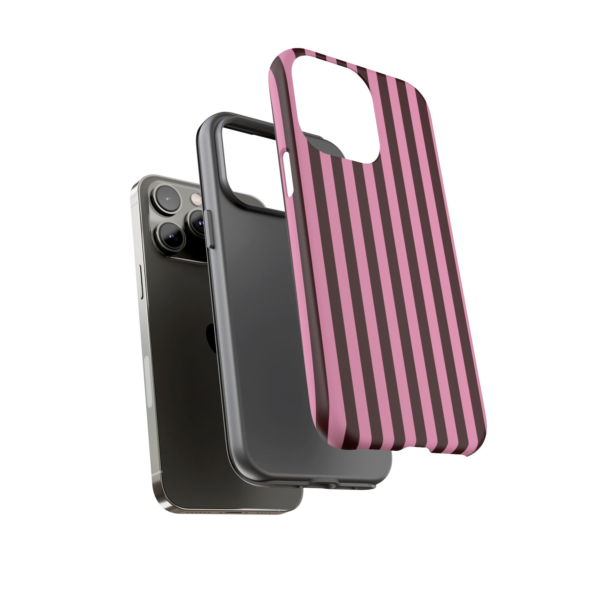 Striped Pink & Burgundy Tough Phone Case — Durable Vertical Stripe Protection