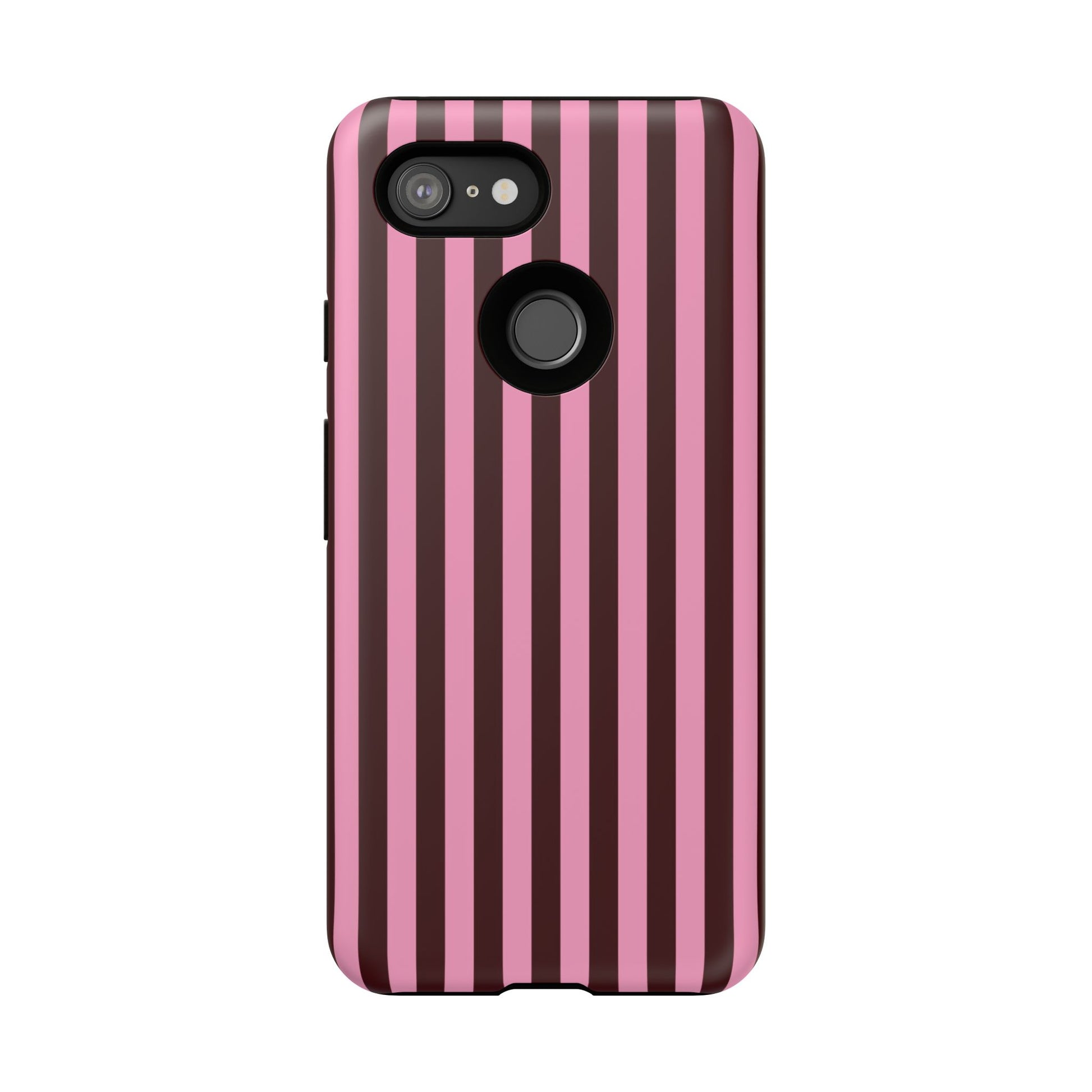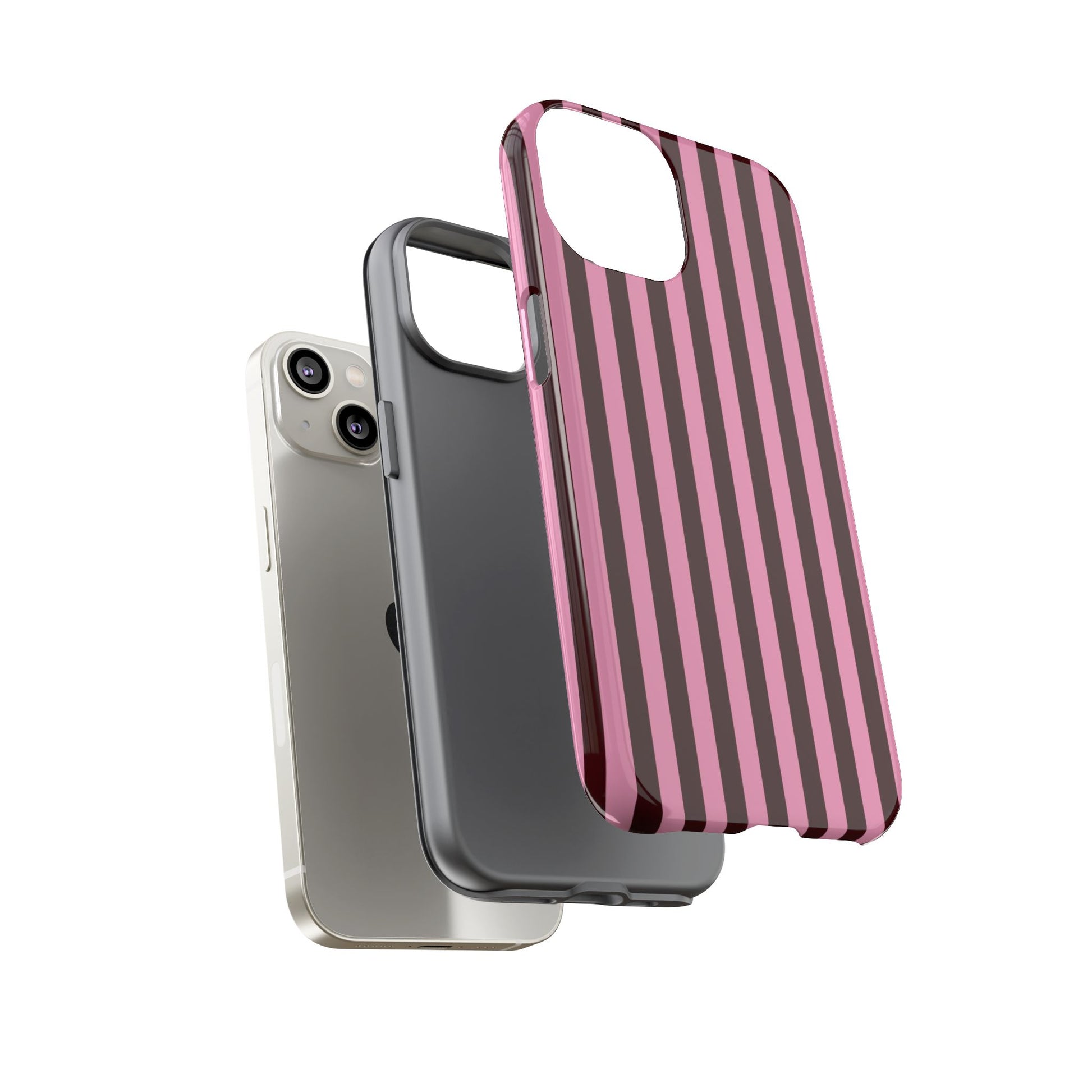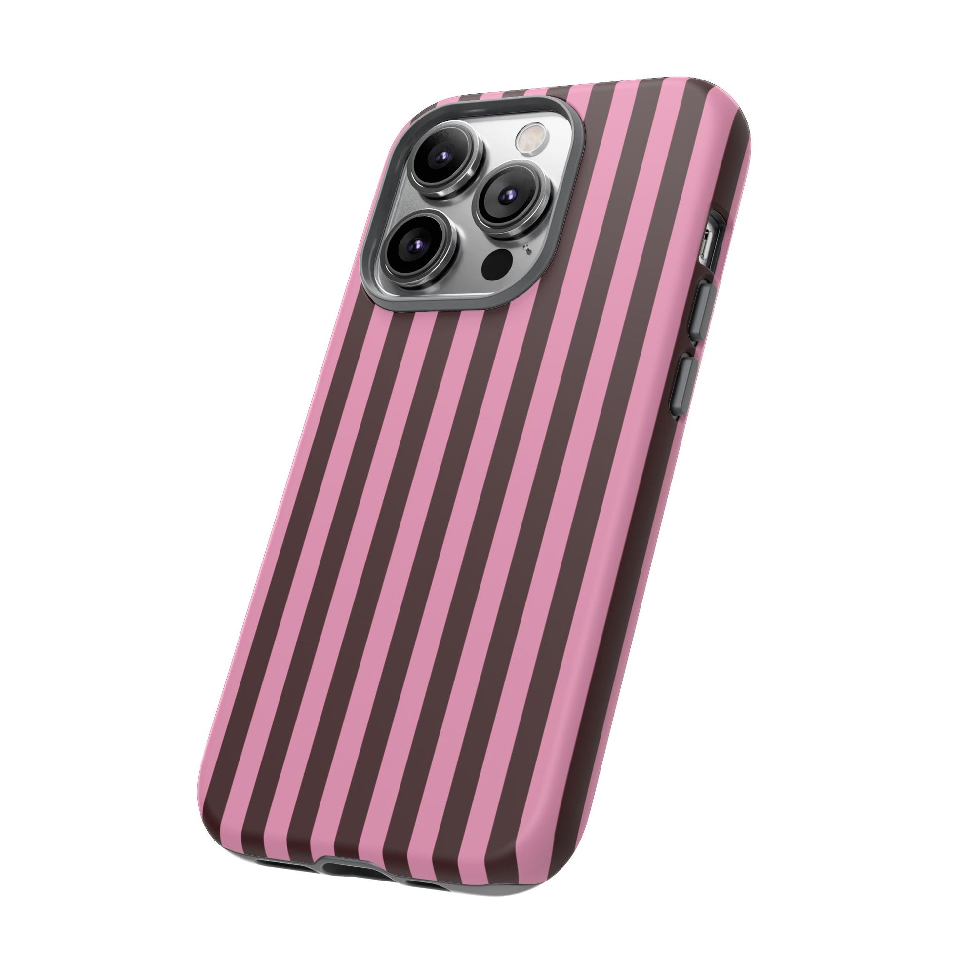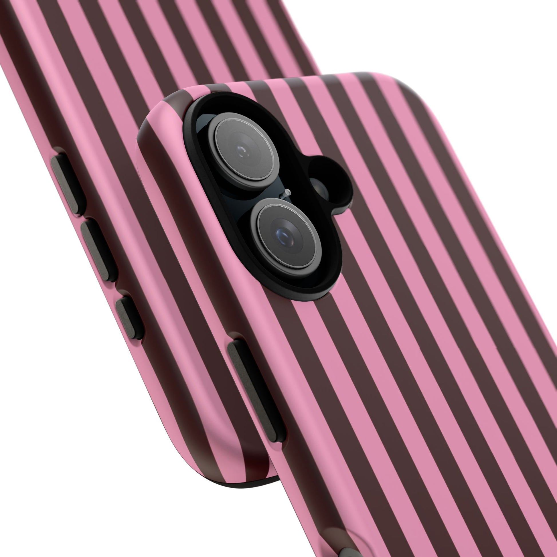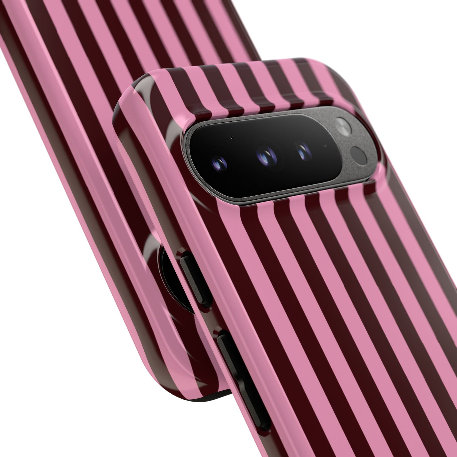 Striped Pink & Burgundy Tough Phone Case — Durable Vertical Stripe Protection