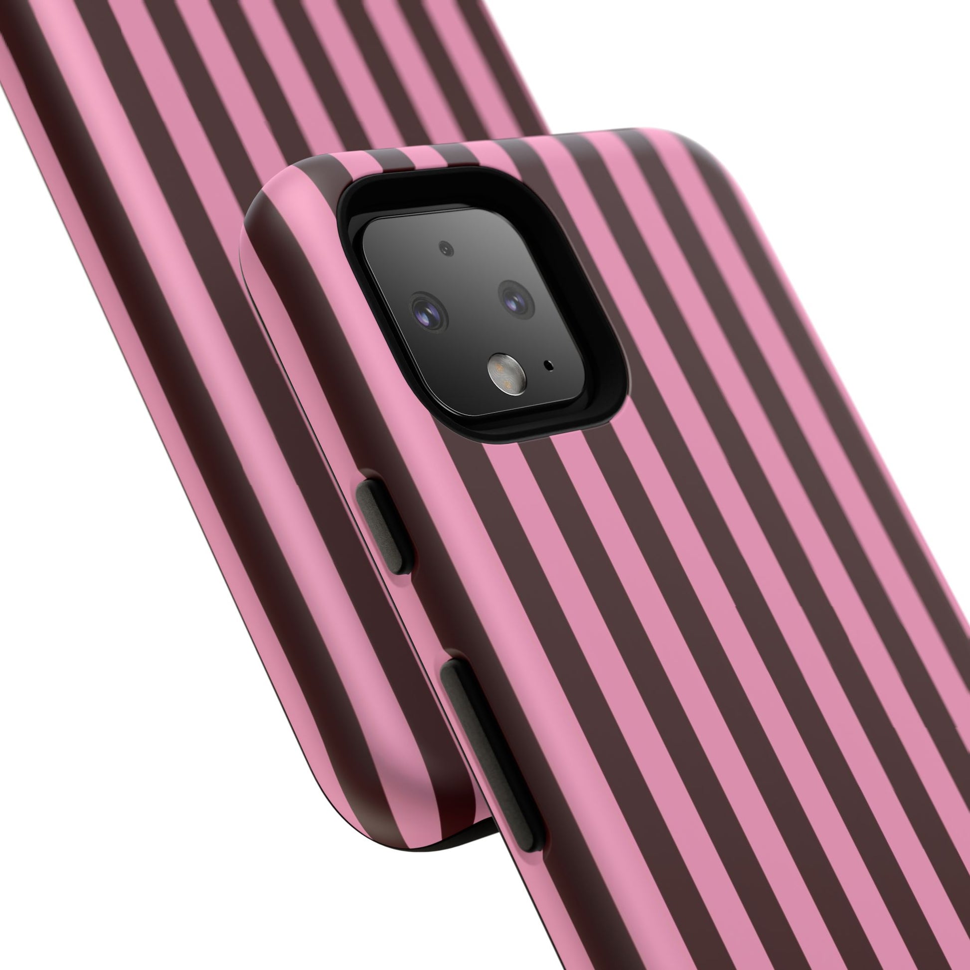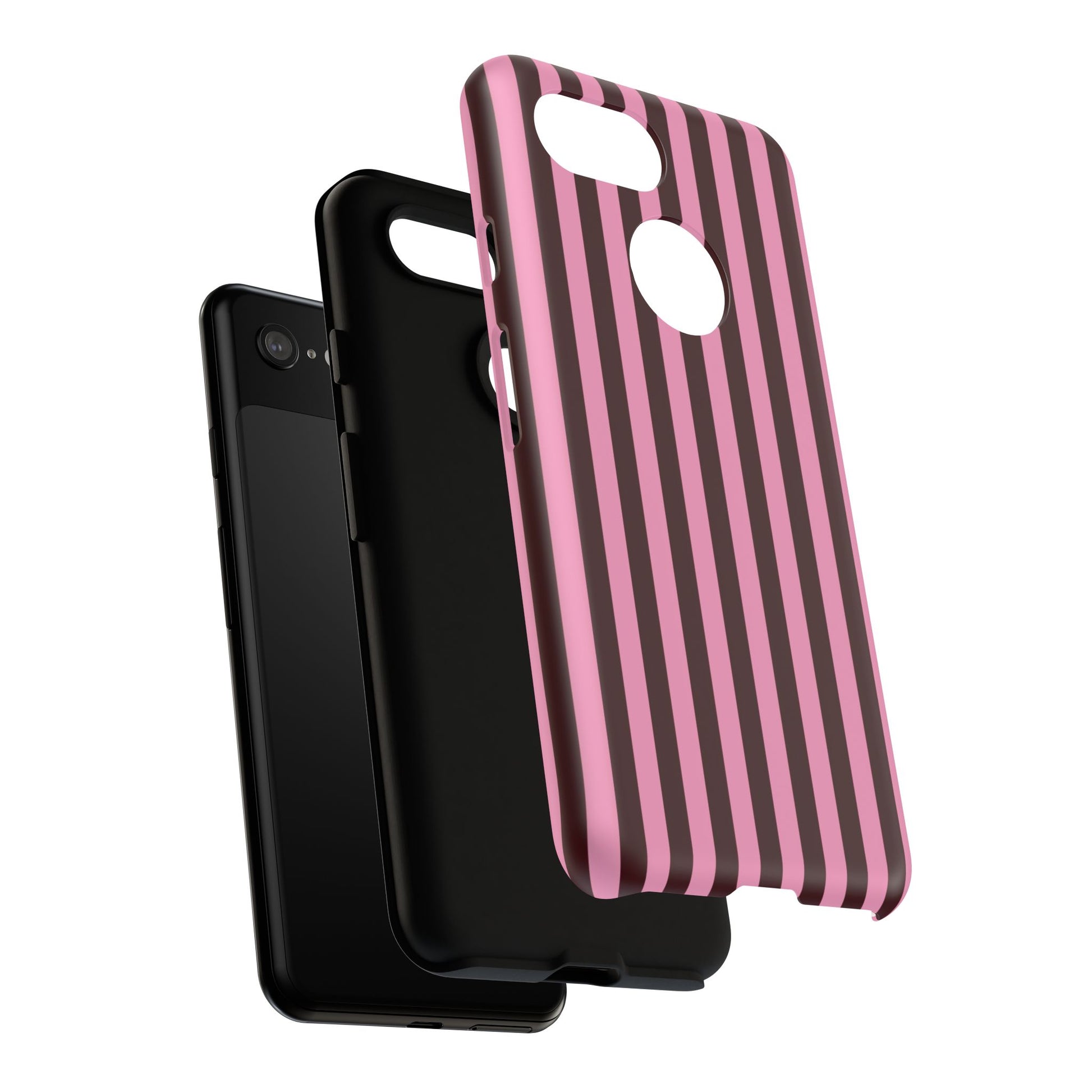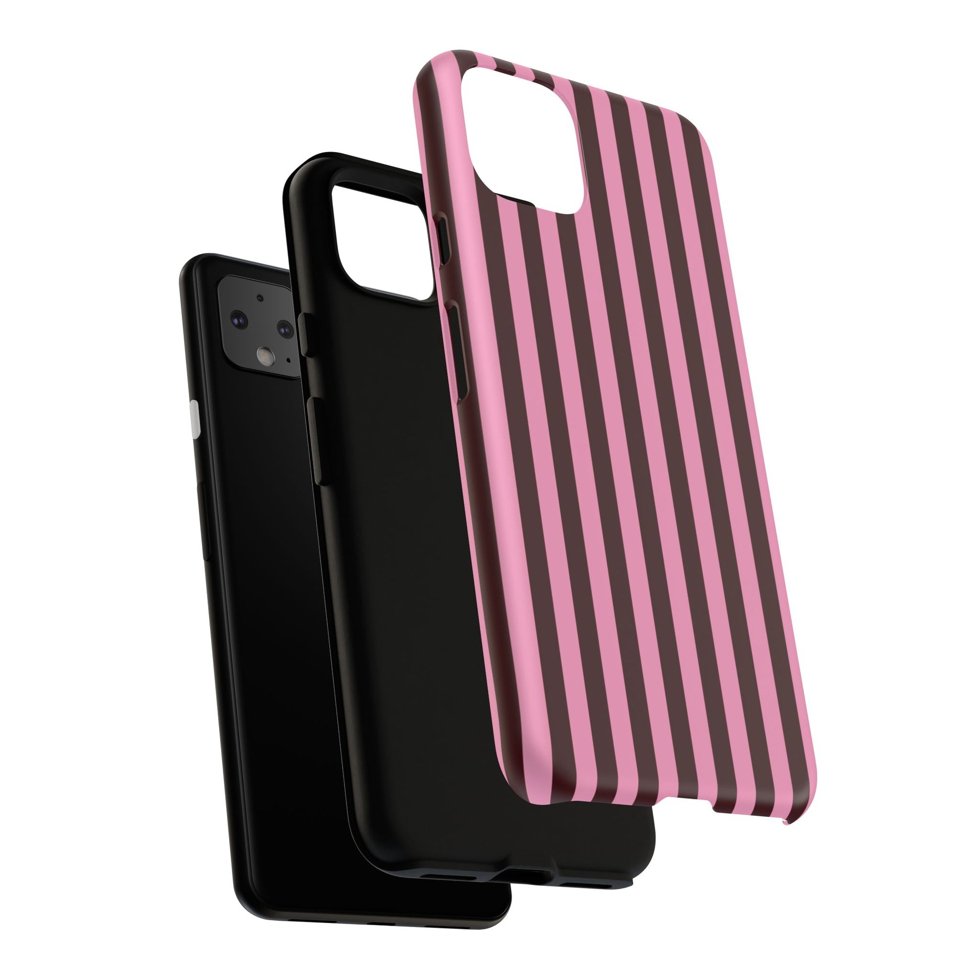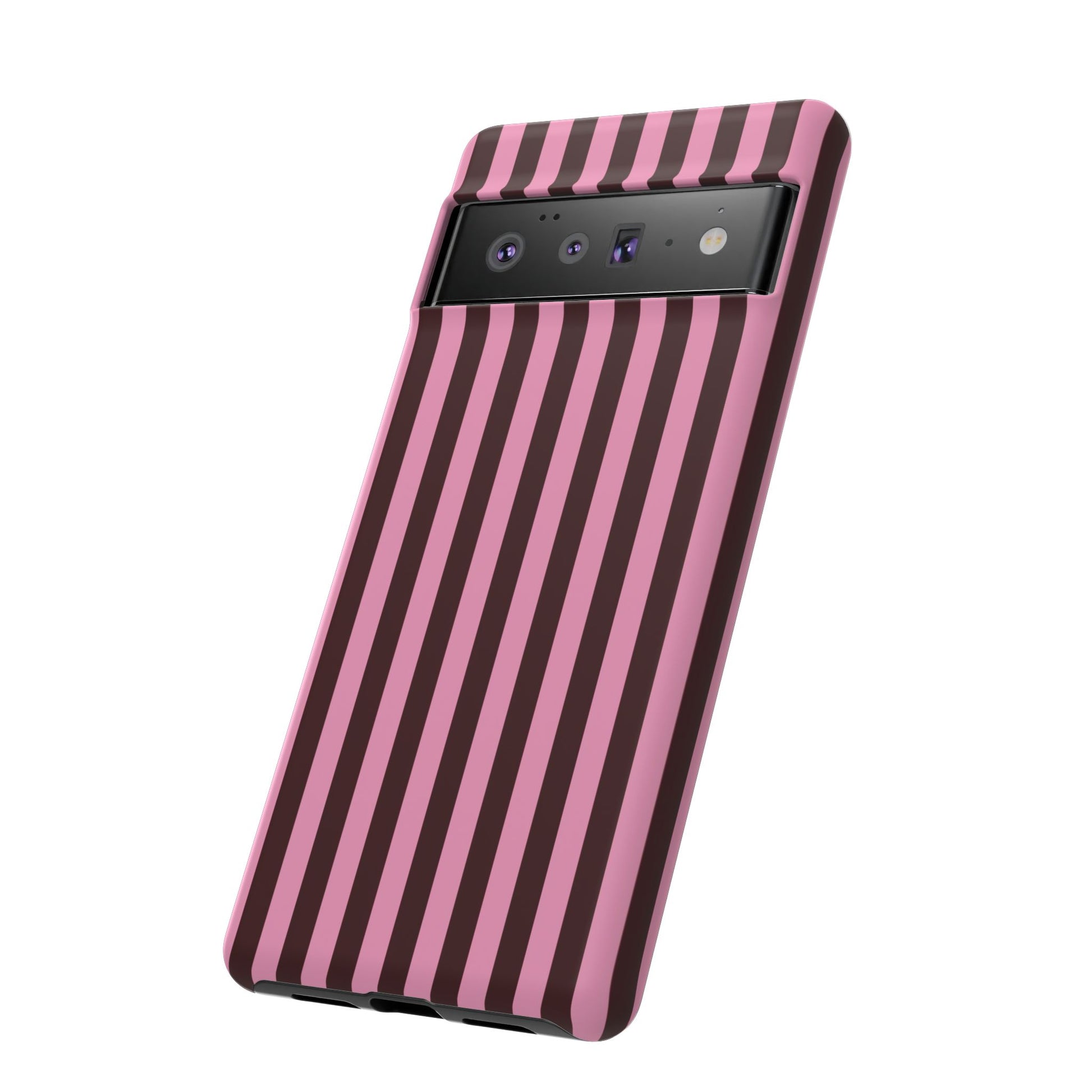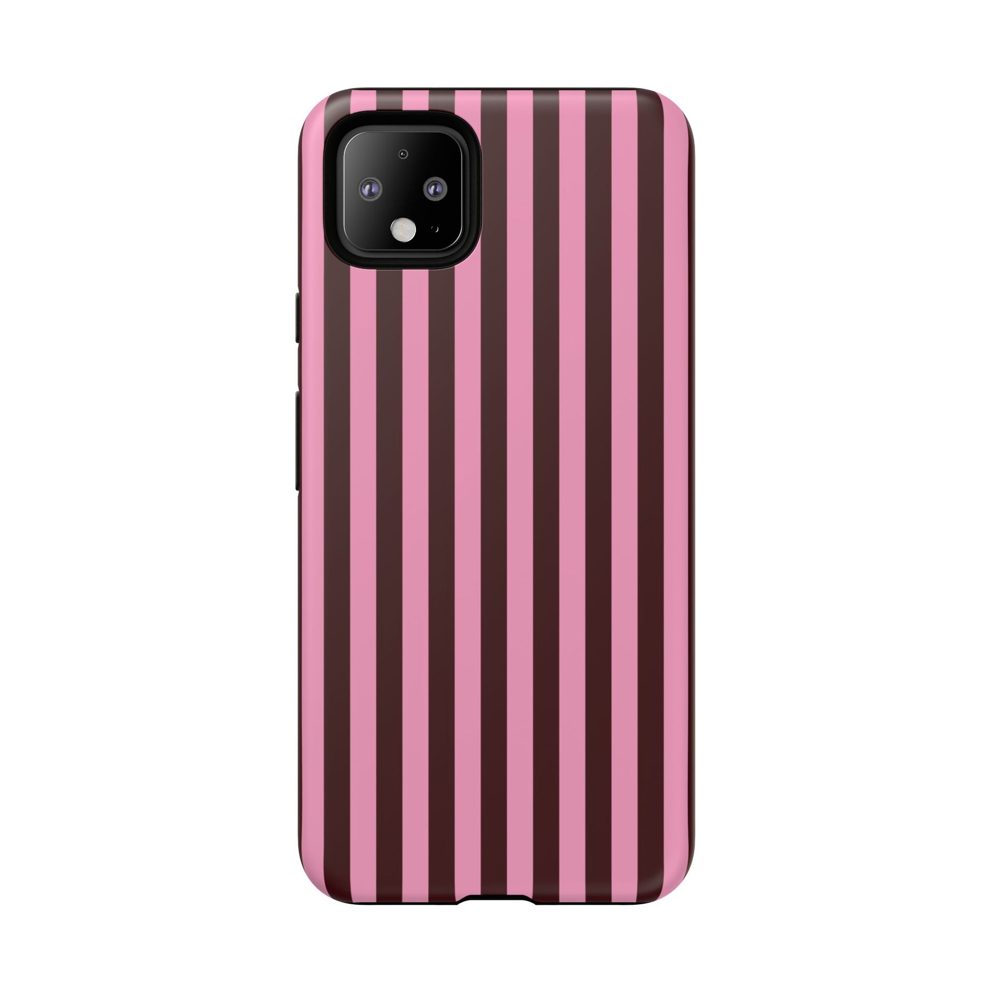 Striped Pink & Burgundy Tough Phone Case — Durable Vertical Stripe Protection