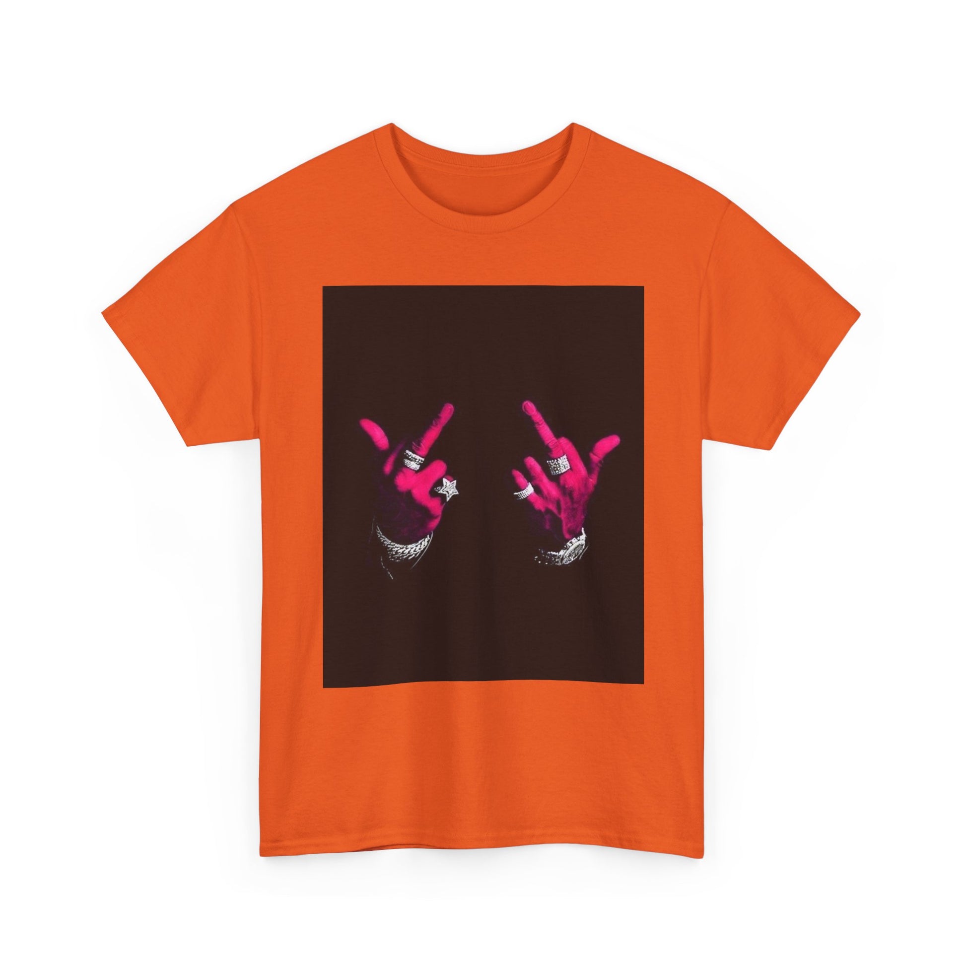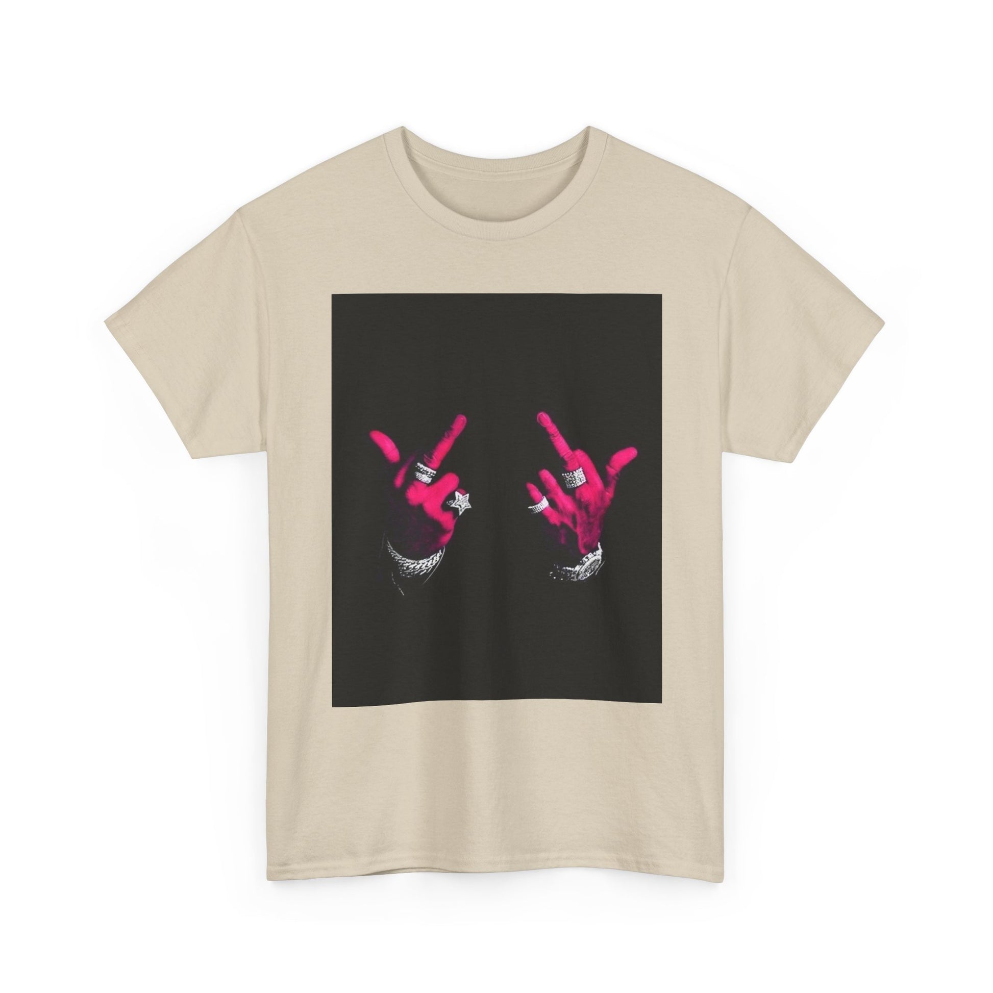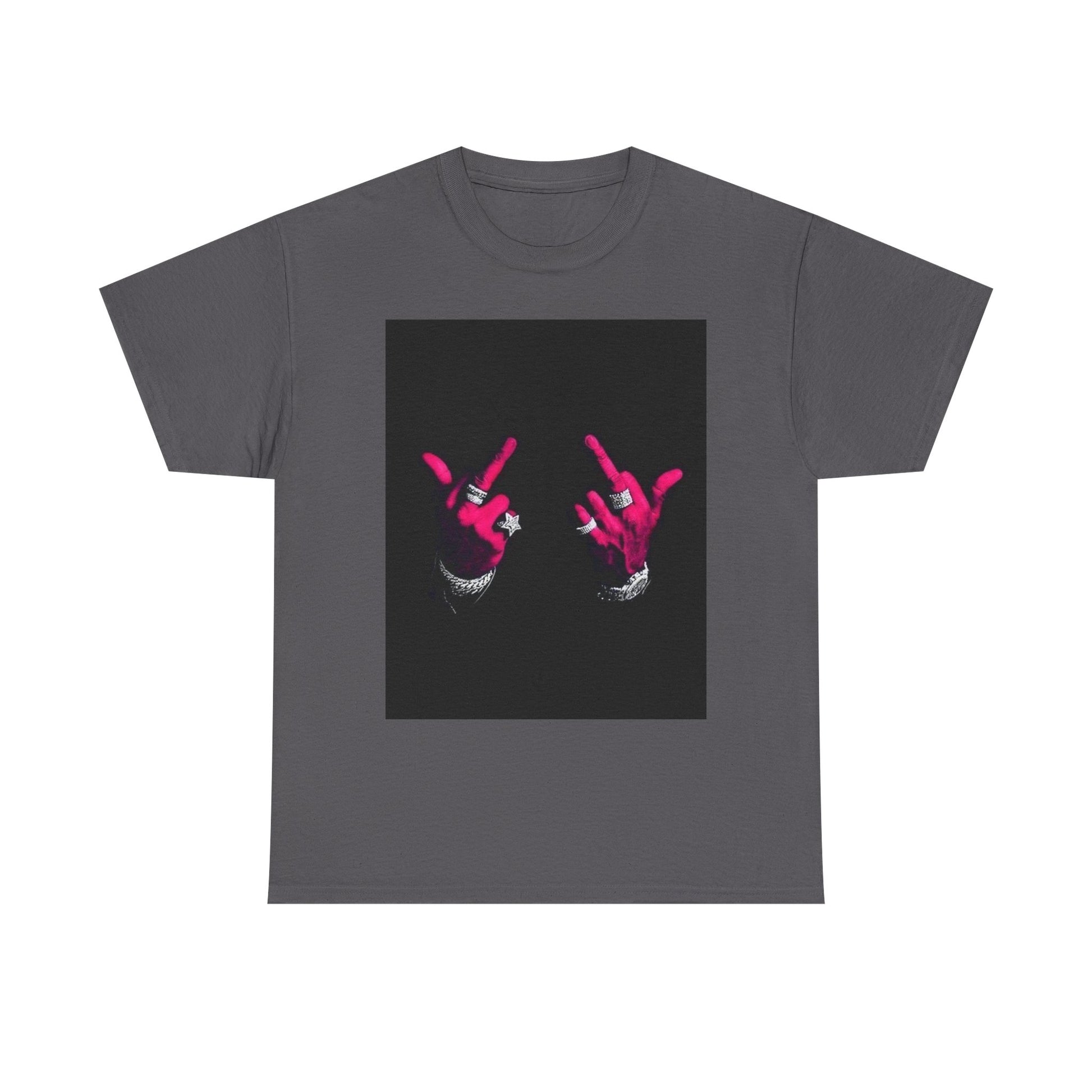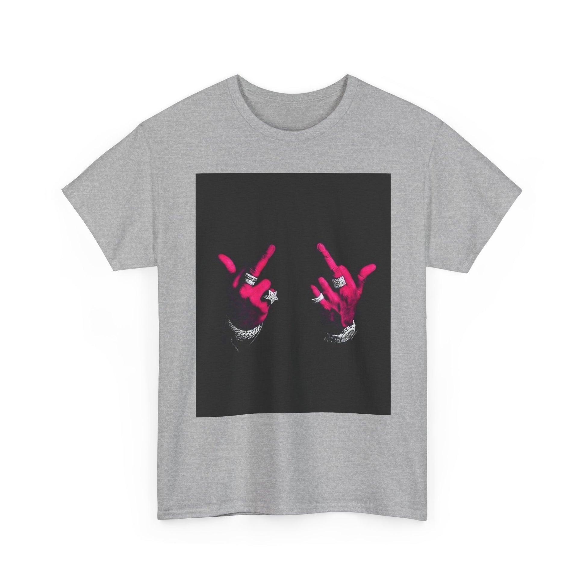 Unisex Heavy Cotton Tee with Bold Hand Gesture Graphic, Casual Wear, Unique Gift, Street Style, Everyday Fashion, Statement Tee