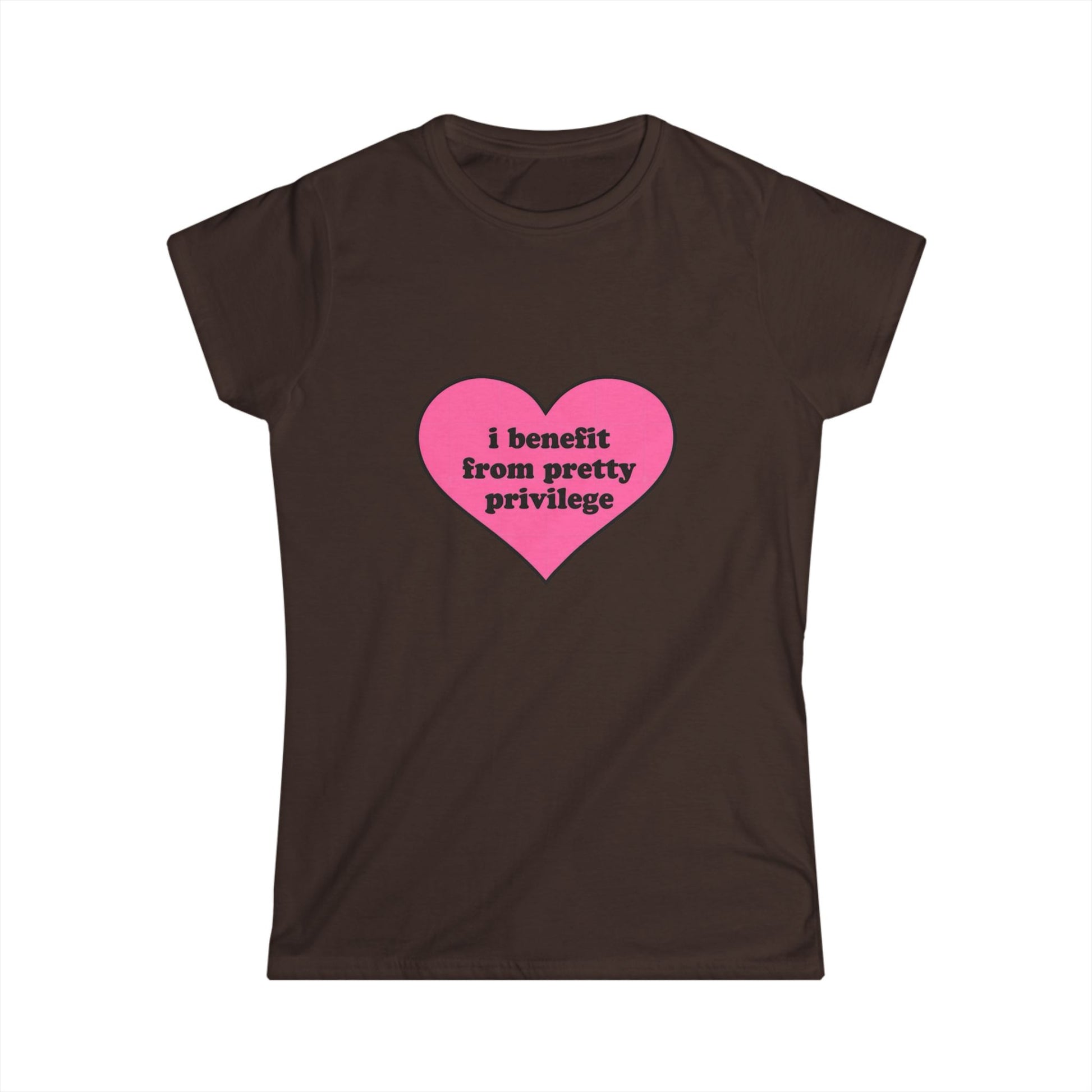Women's Tee — Pink Heart "I benefit from pretty privilege" Feminist Statement Shirt